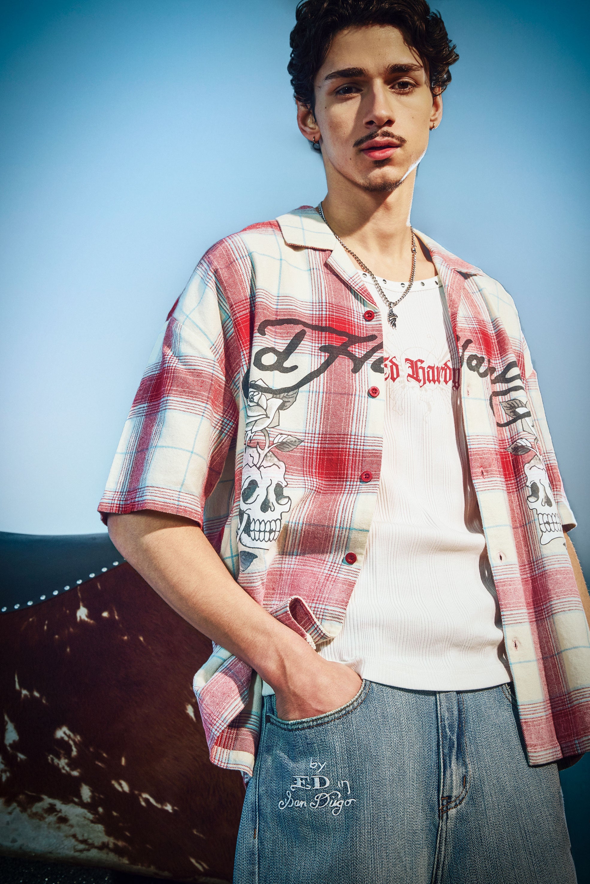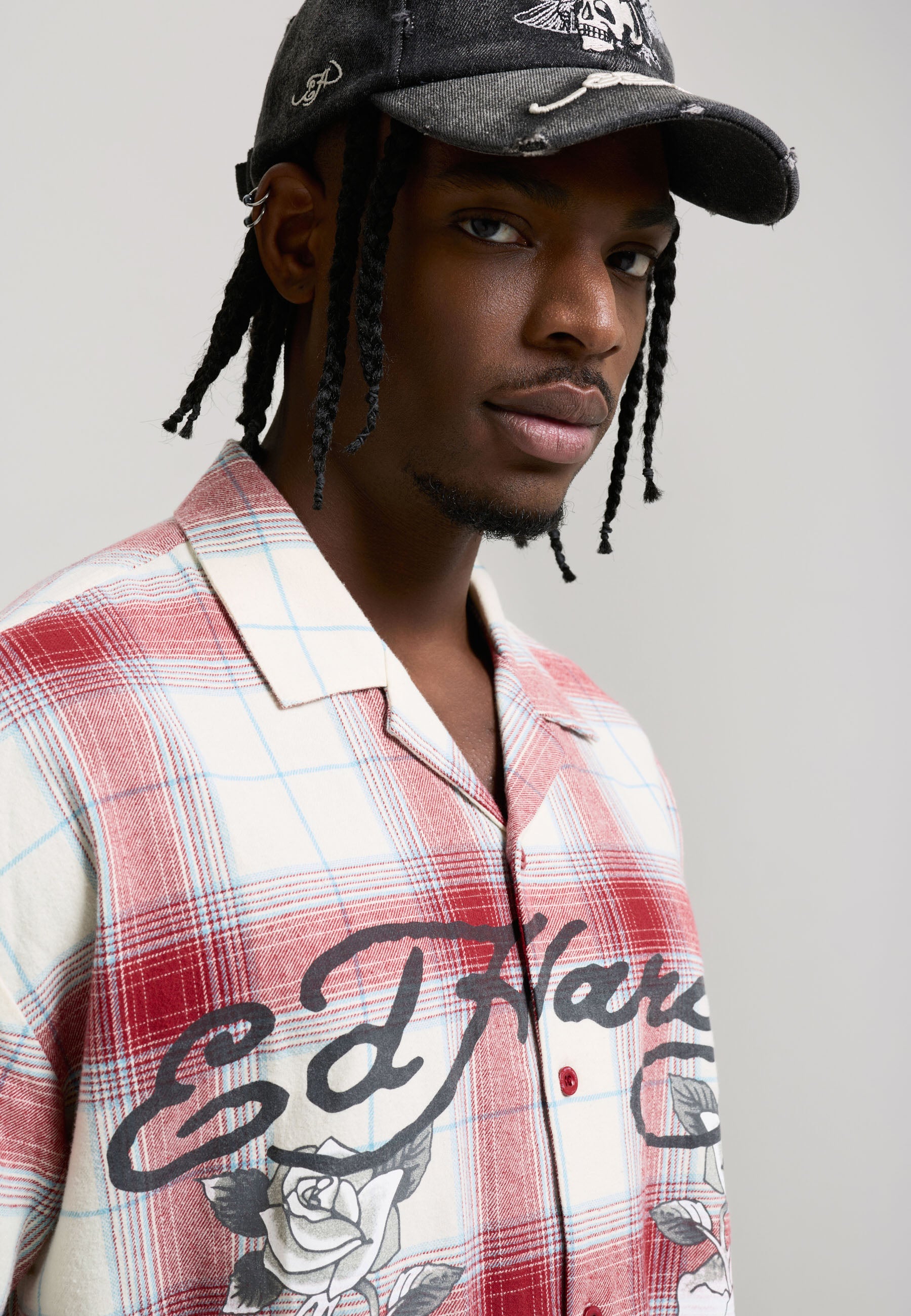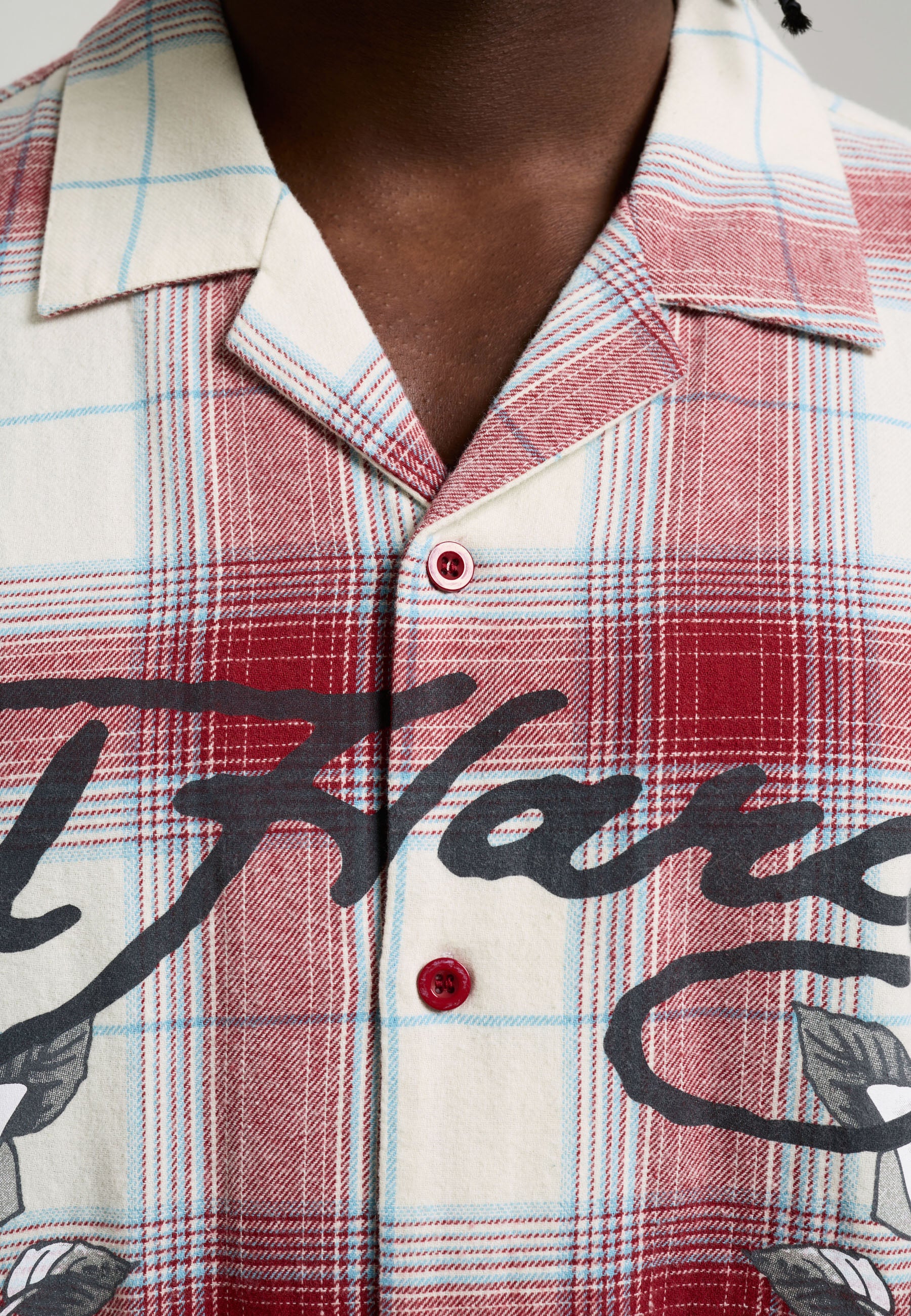 Mens Gothic Check Revere Boxy Shirt - Red