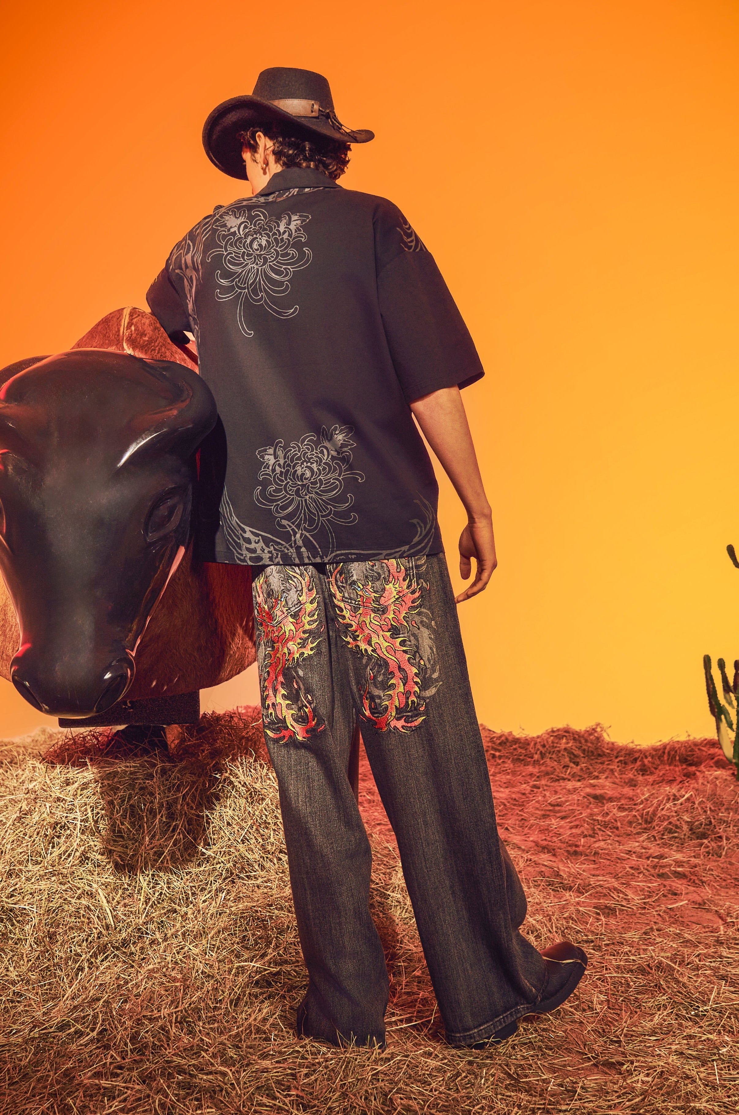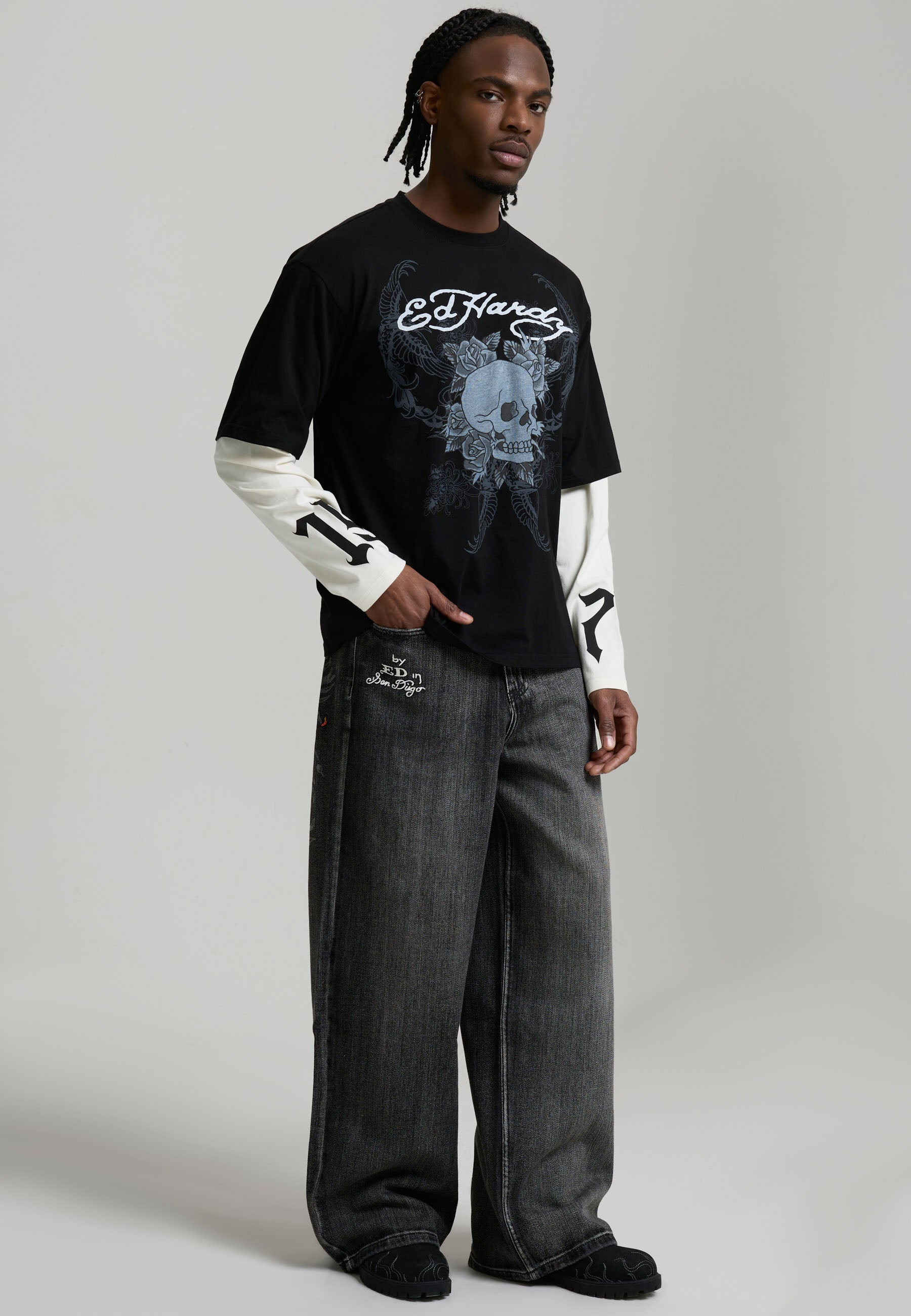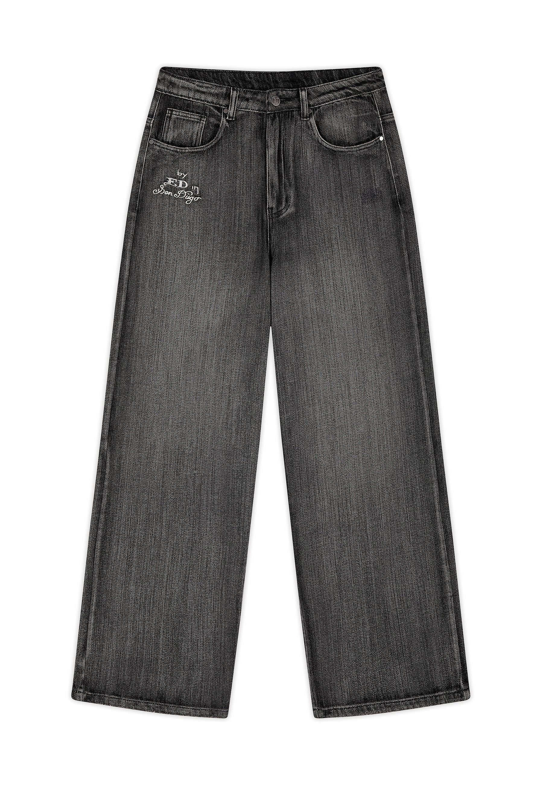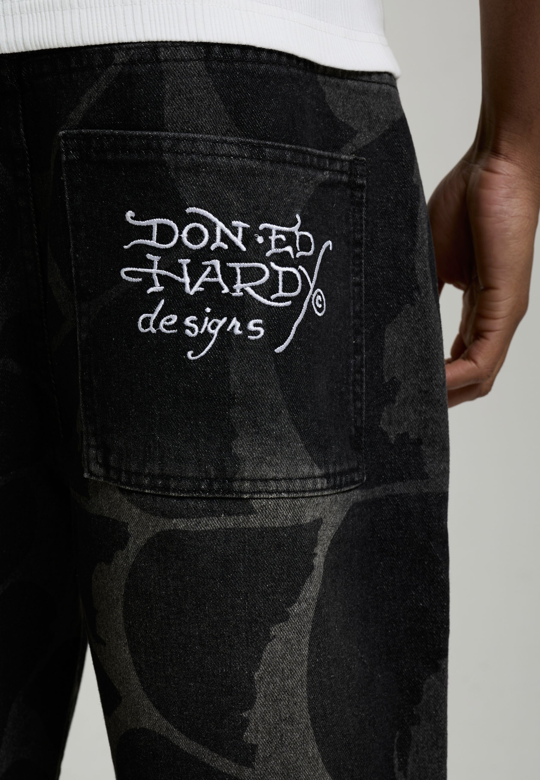 Mens Embroidered Angel Xxtra Fit Jeans - Distressed Black Wash