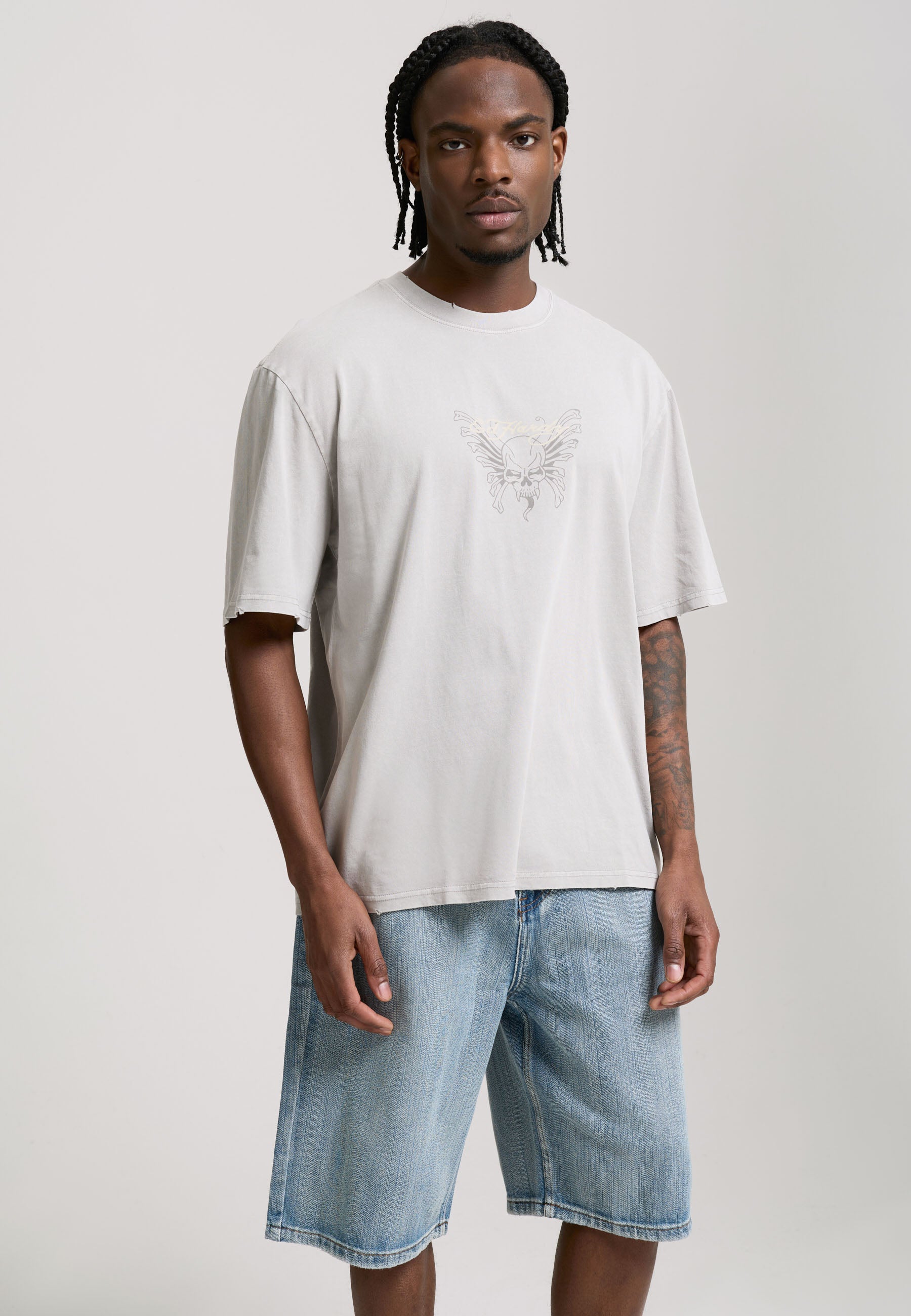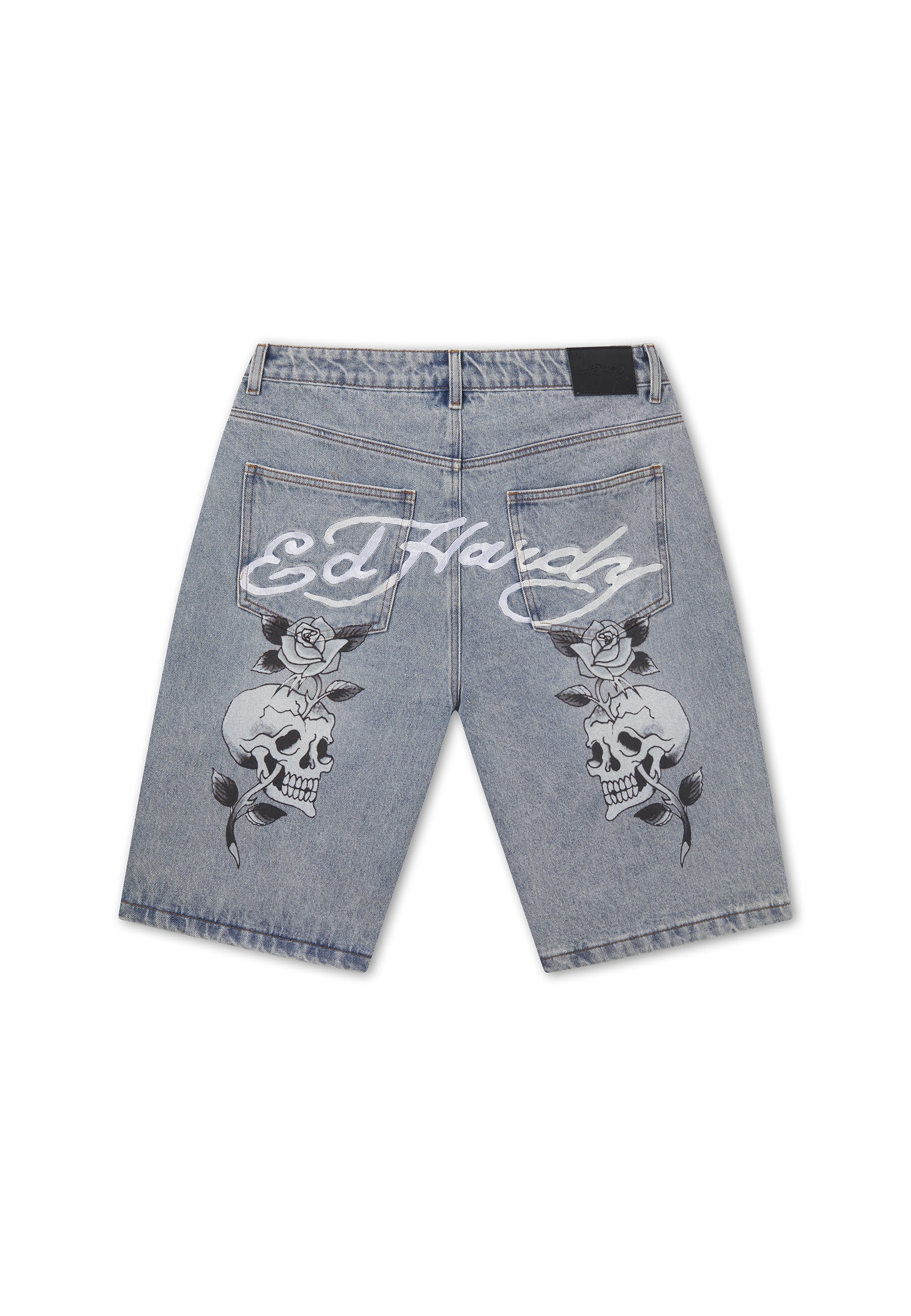 Mens Signature Skull Rose Relaxed Jort - Bleach