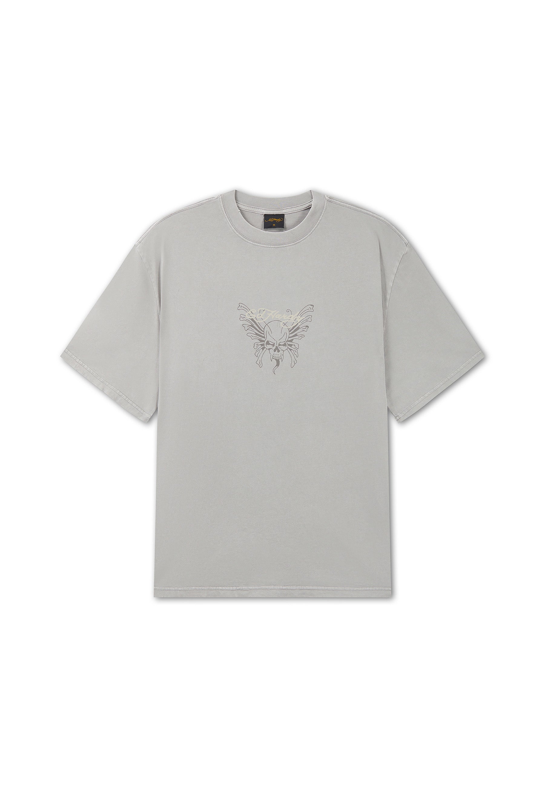 Mens Skull Rose Graphic Relaxed T-Shirt - Grey