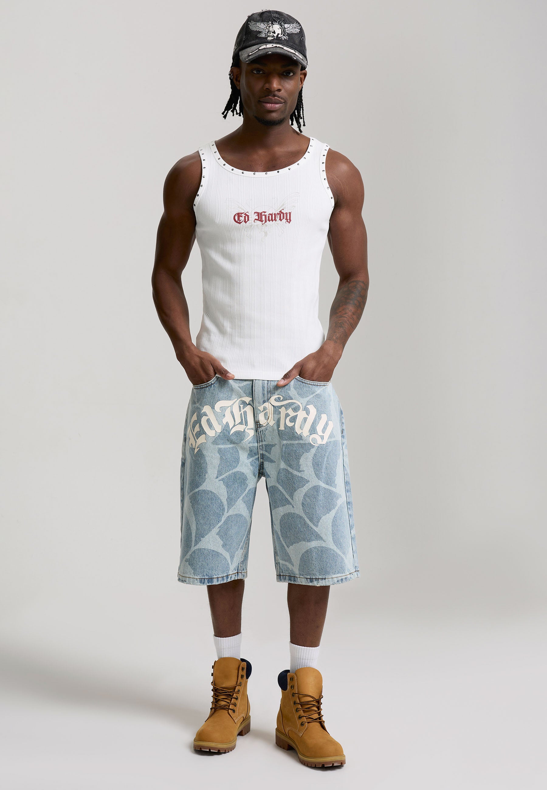 Mens Ed Hardy Studded Rib Vest - White