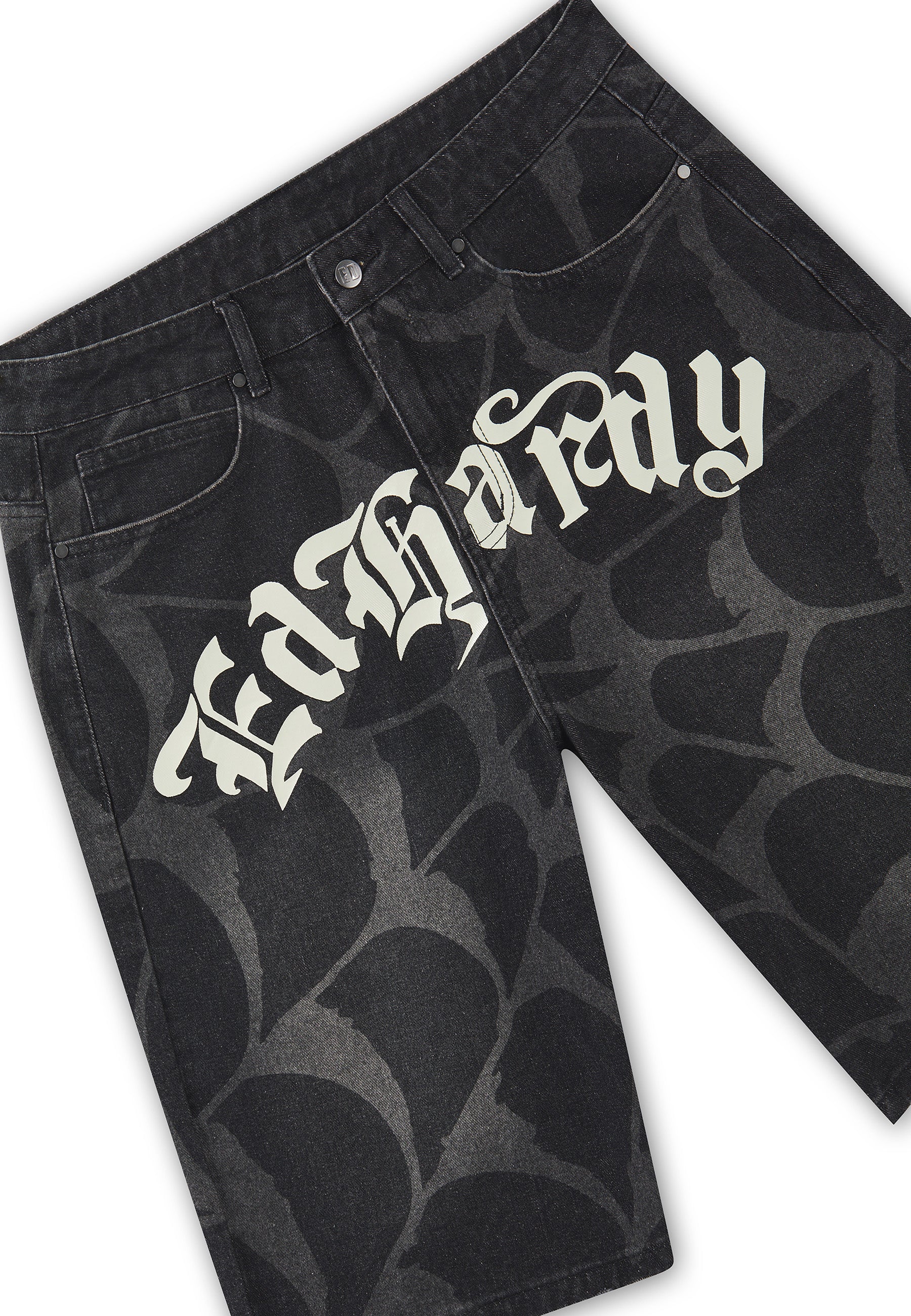 Mens Gothic Ed Hardy Cobweb Denim Jorts - Vintage Charcoal