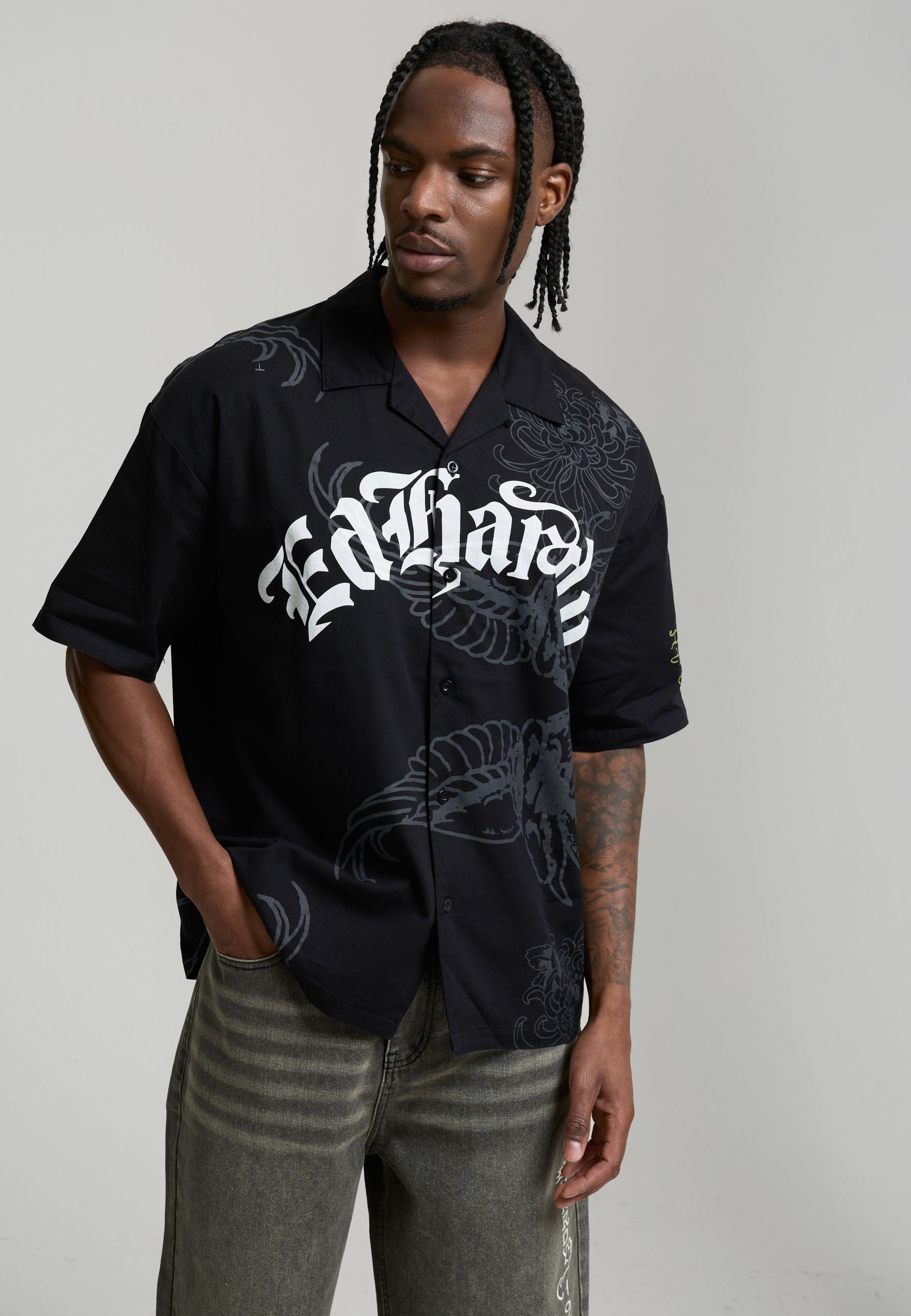 Mens Ed Hardy Gothic Relaxed Camp Shirt - Black