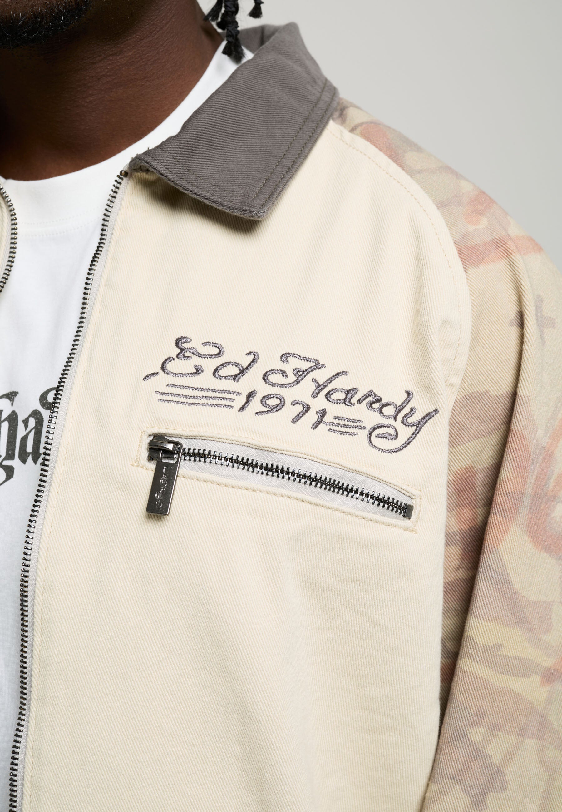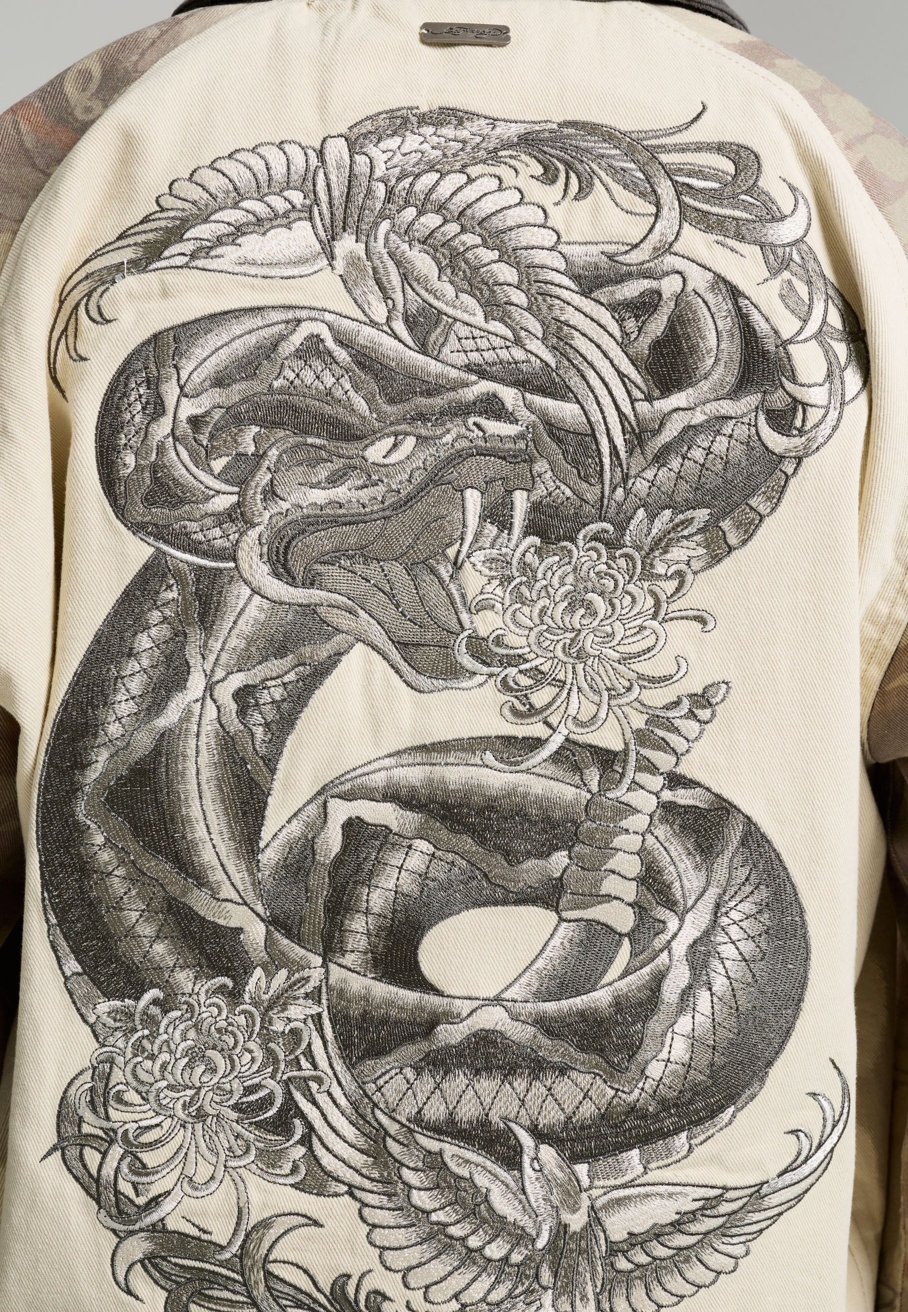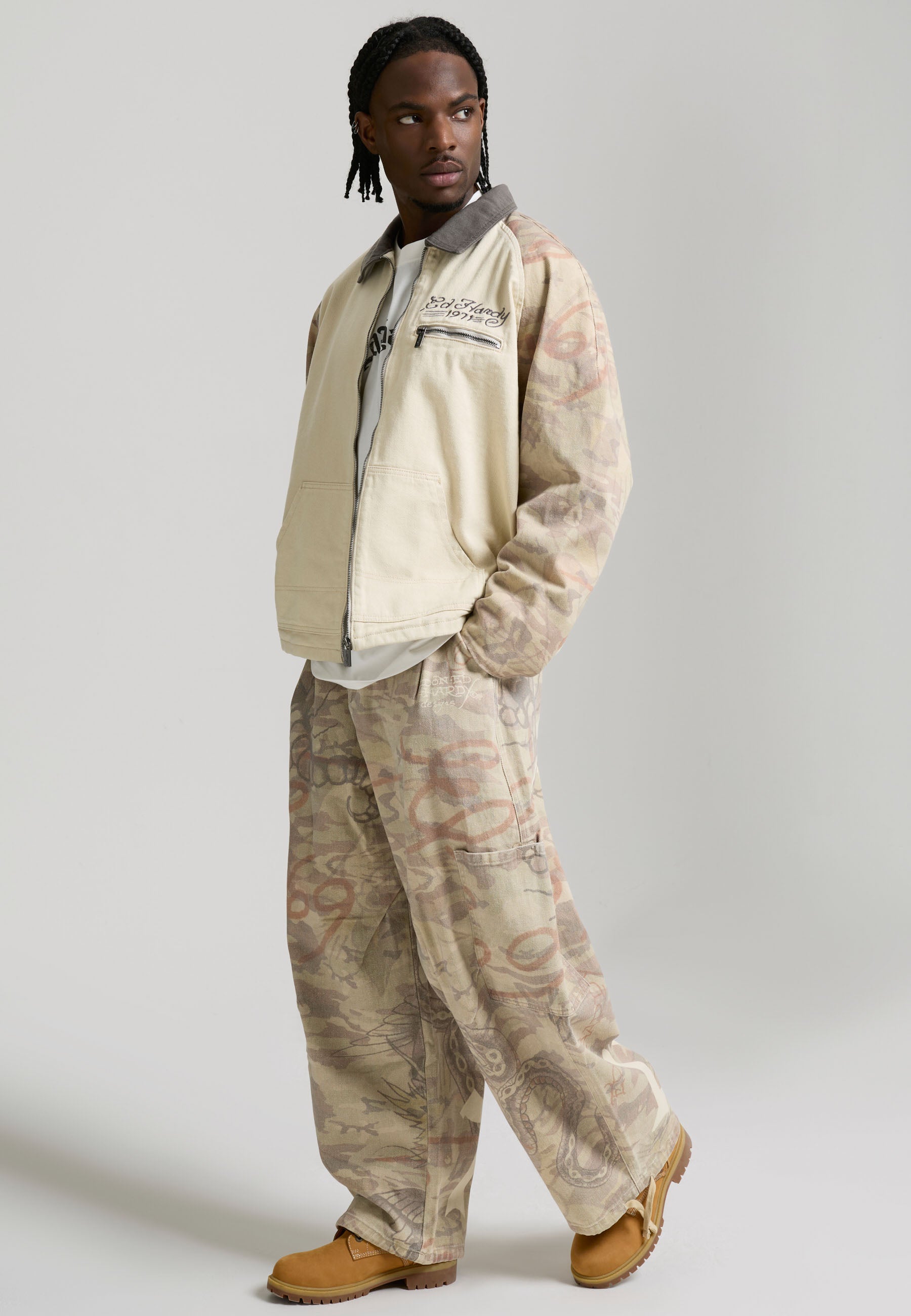 Mens Camo Snake Relaxed Utility Jacket - Ecru