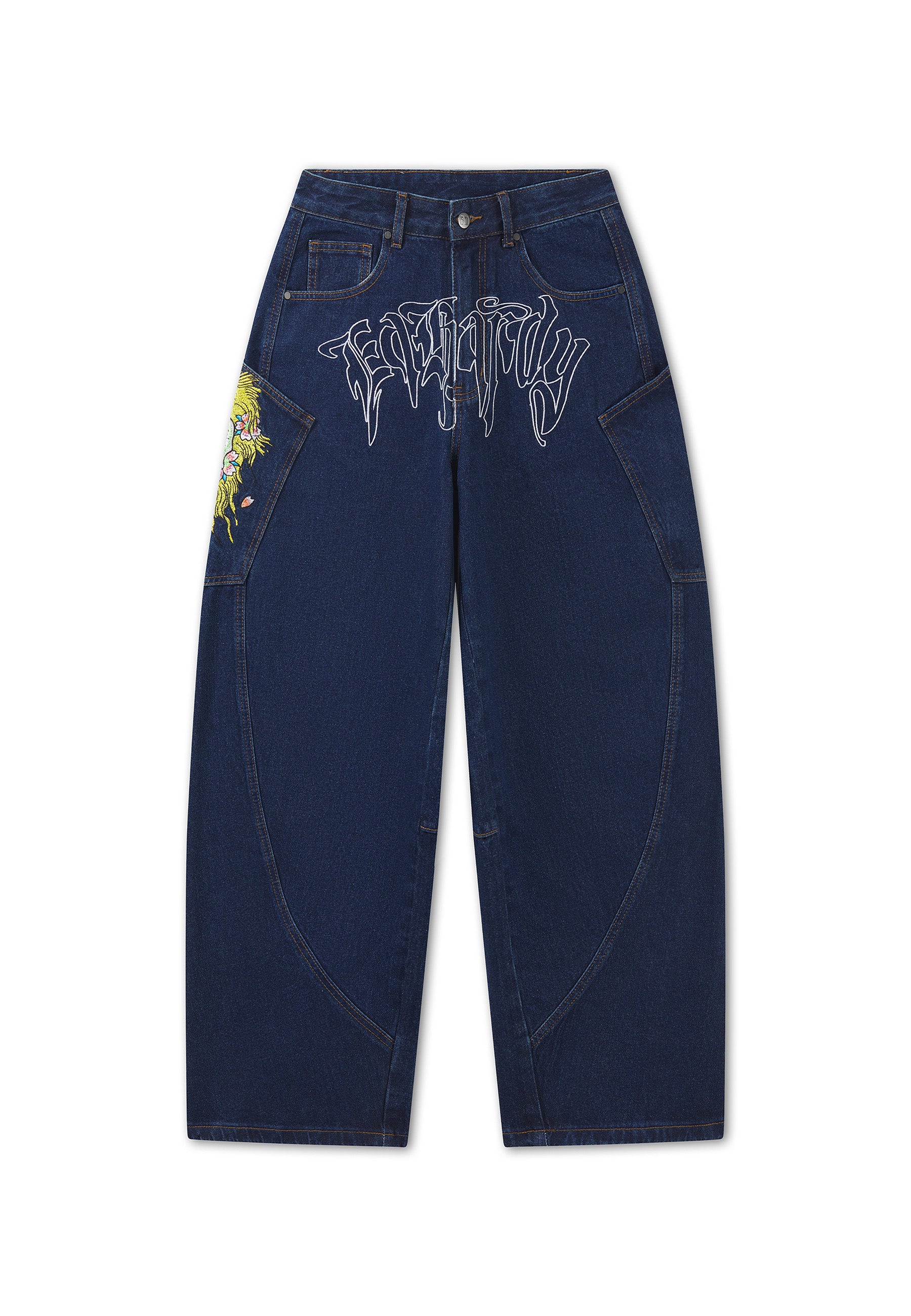 Mens Embroidered City Tiger Xxtra Jeans - Dark Blue Crease Wash