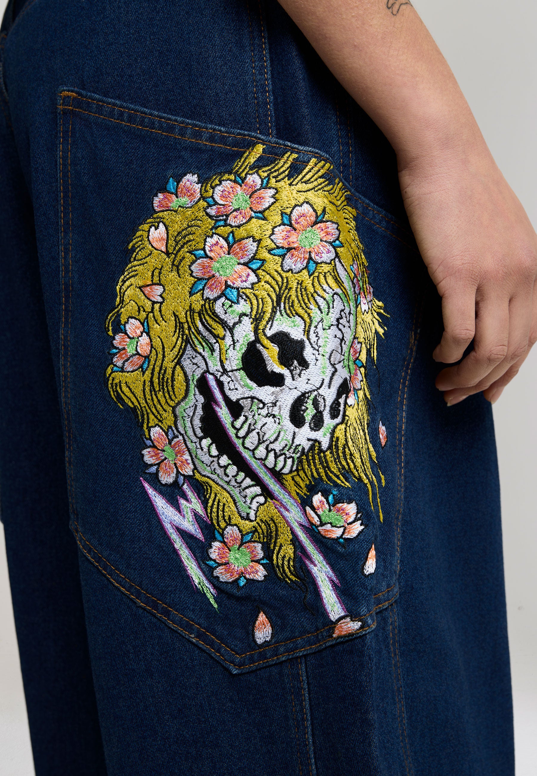 Womens Gothic Skull Relaxed Balloon Jeans - Indigo