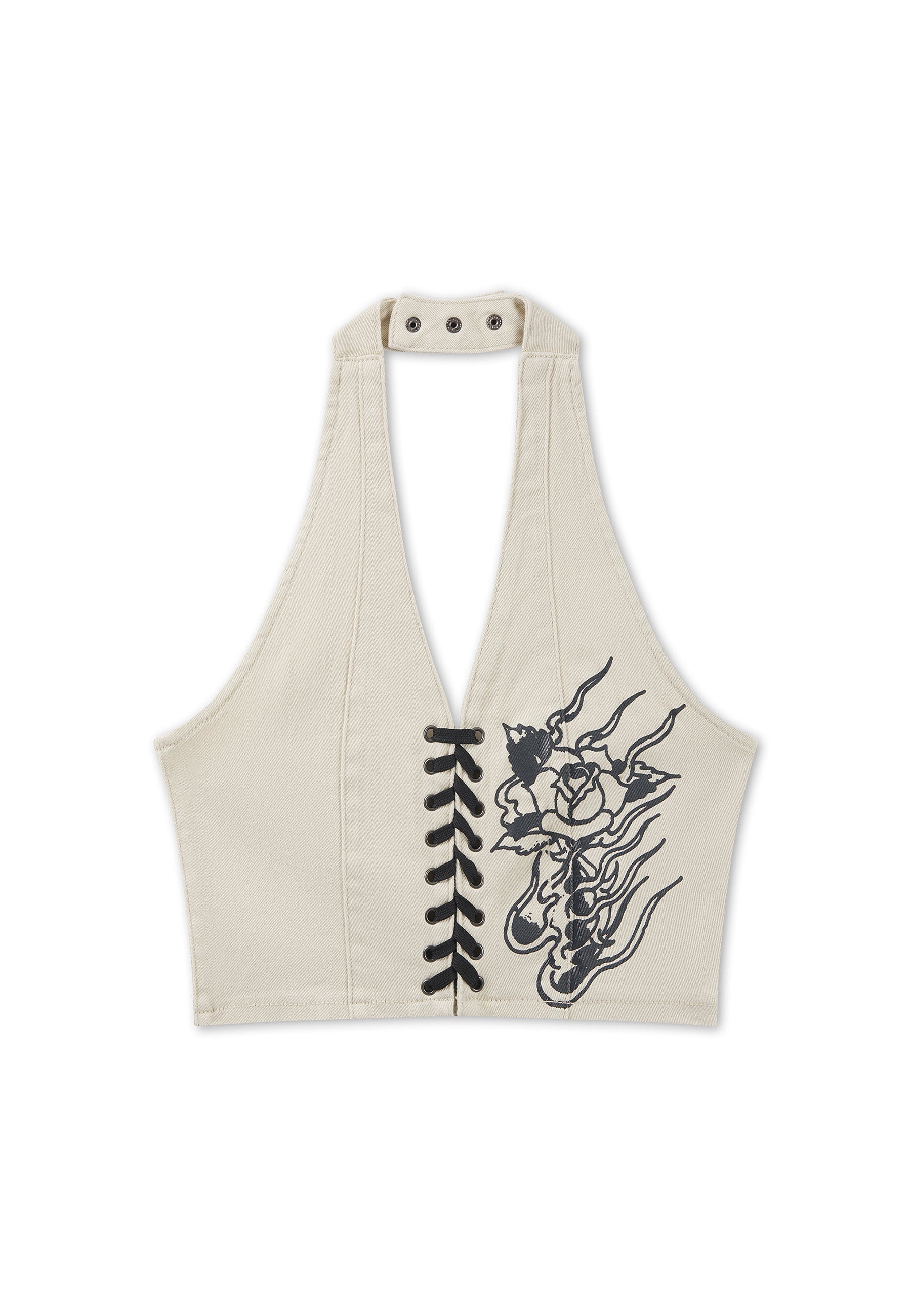 Womens Flaming Rose Braided Denim Corset - Ecru