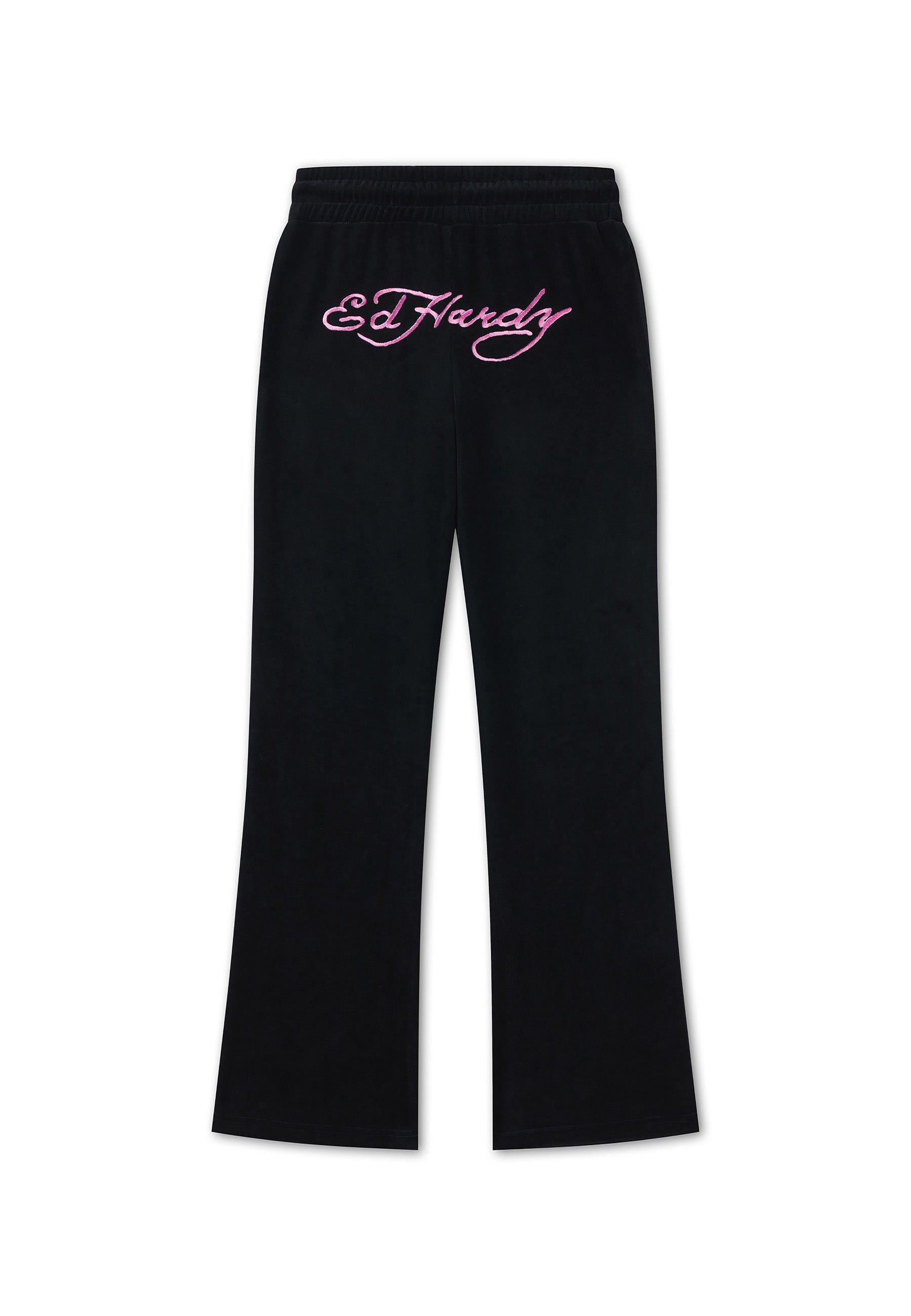 Womens Love And Thorns Diamante Velour Flared Joggers - Black