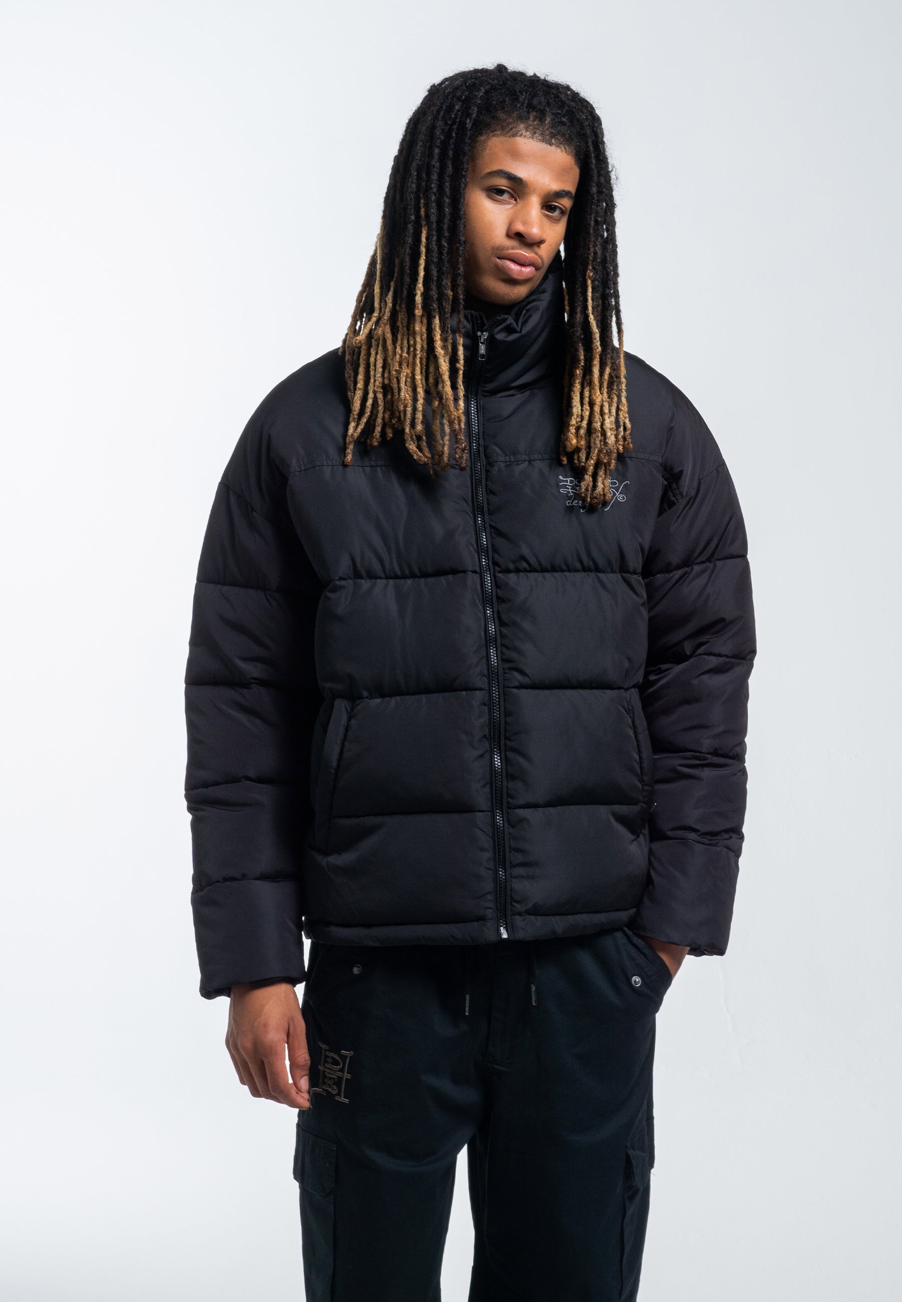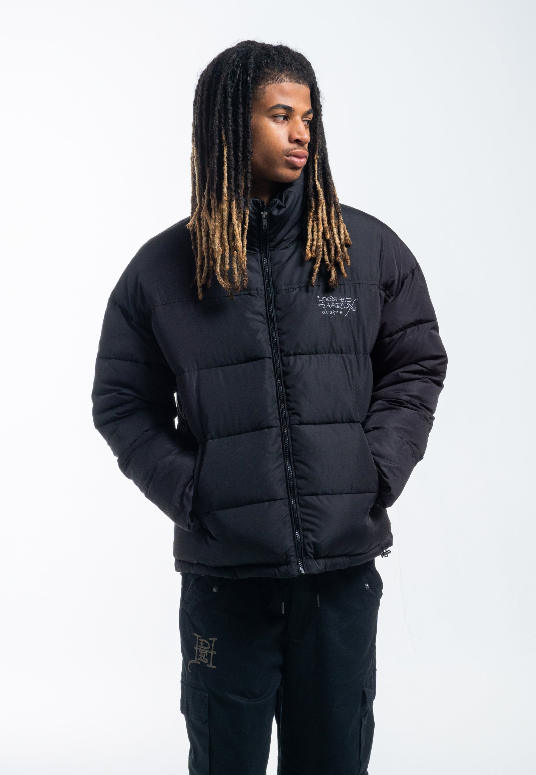 Mens Eye-Ball-Skull Puffer Jacket - Black