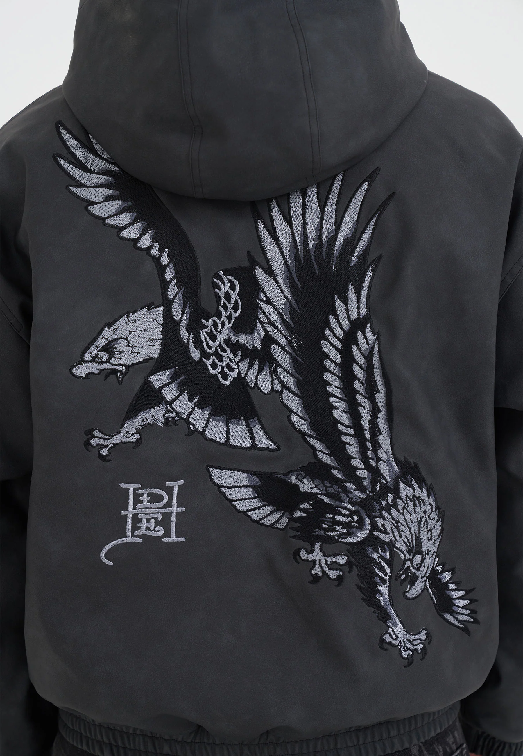 Mens Soaring Eagles Pu Hooded Vegan Leather Jacket - Black