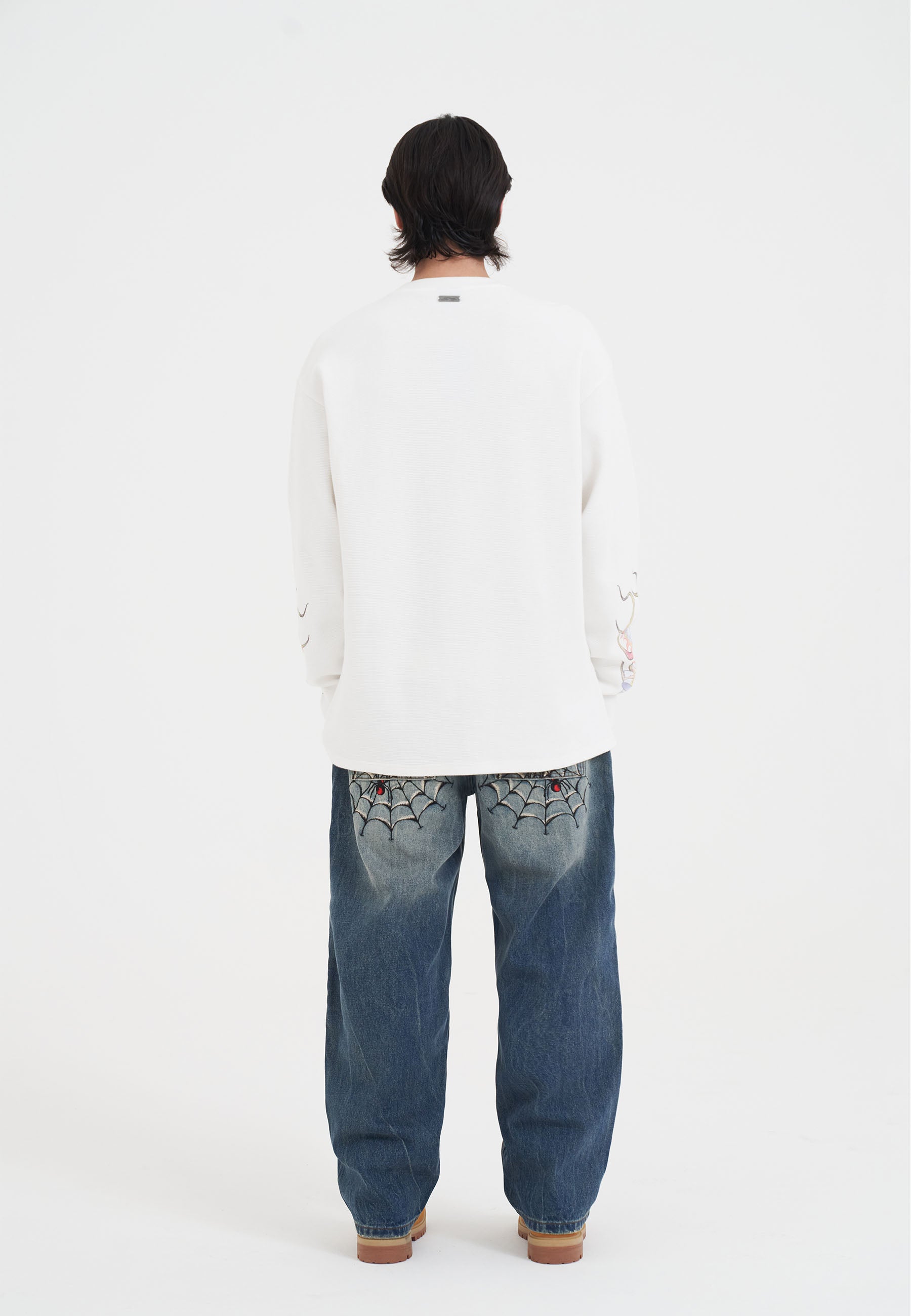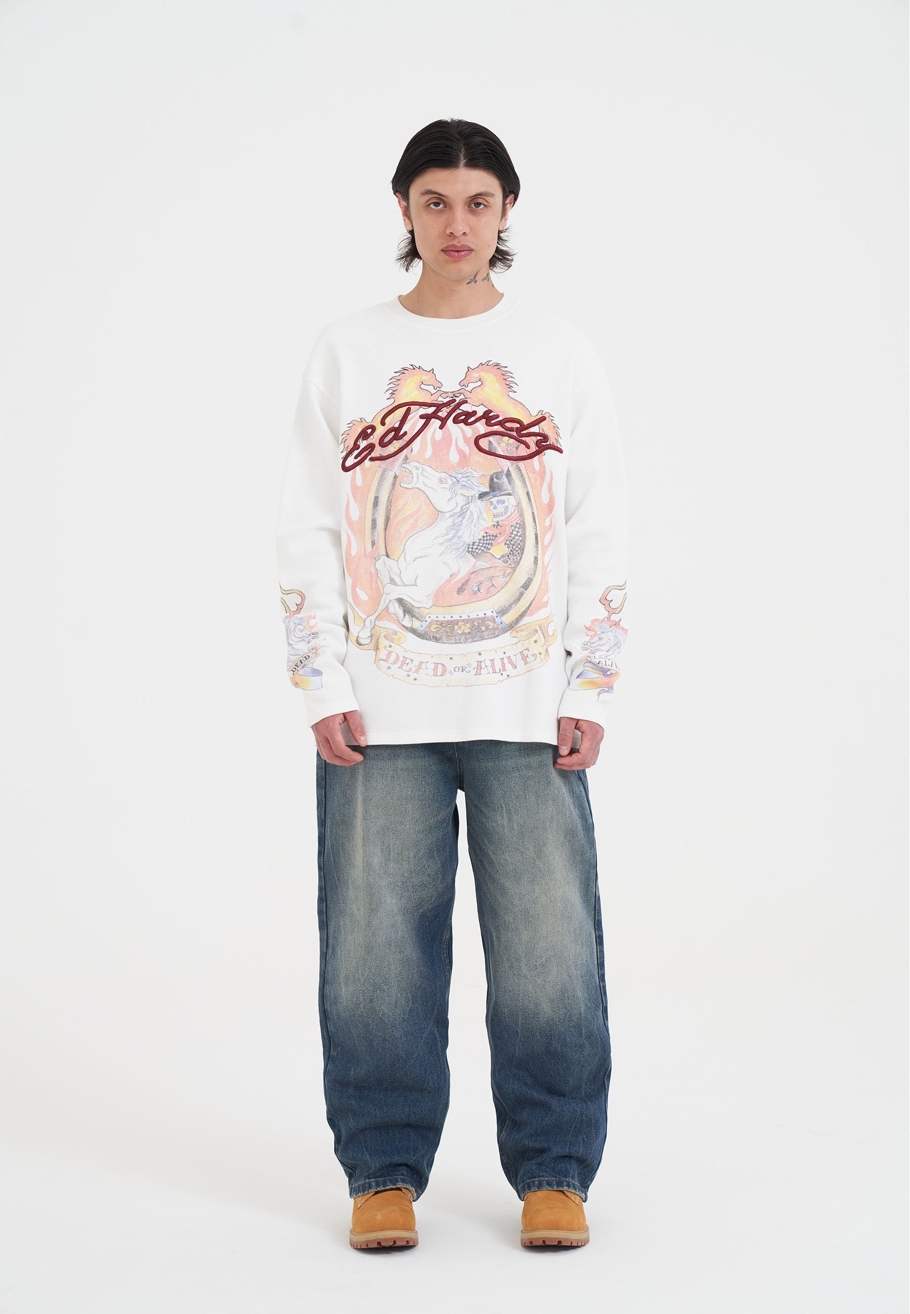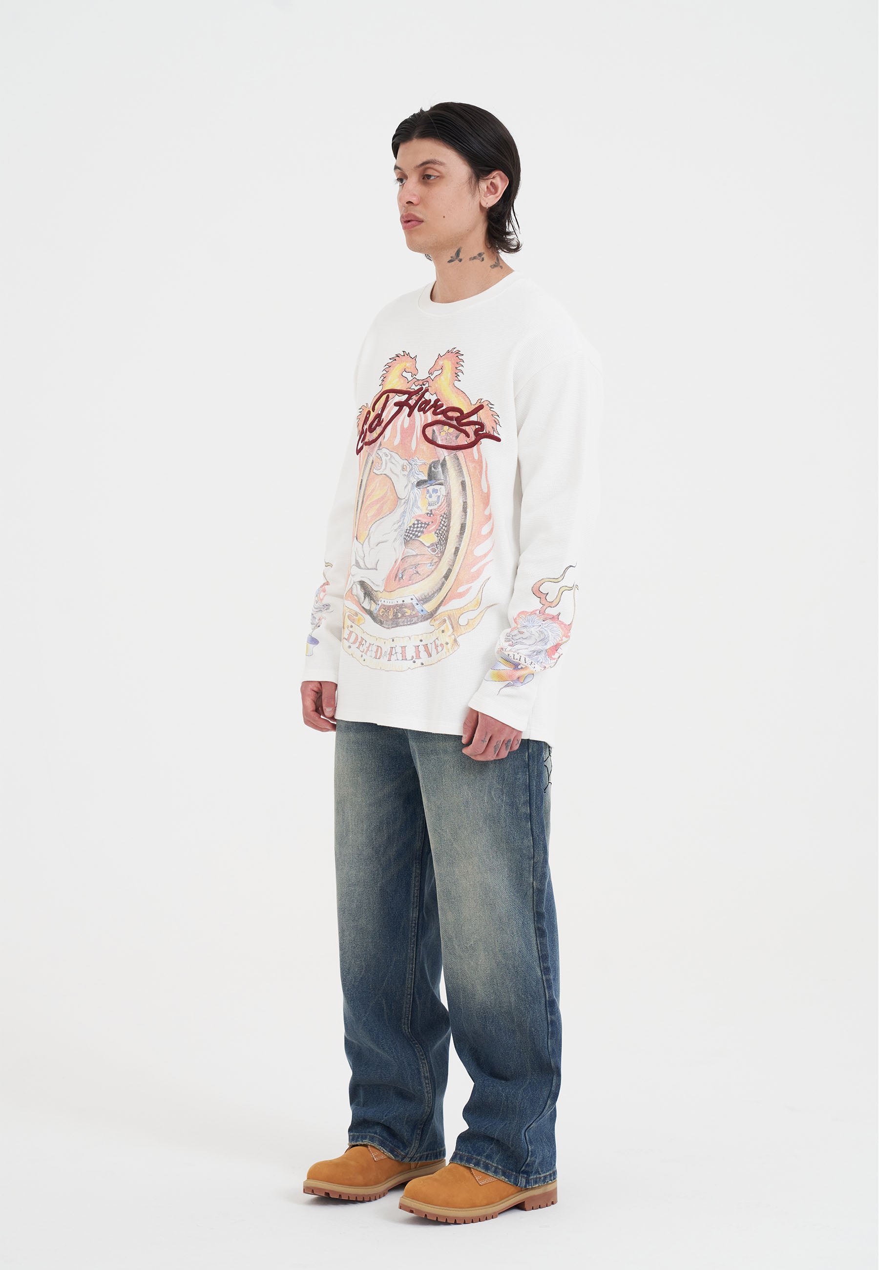MENS RIDE INTO HELL WAFFLE LONG SLEEVE T-SHIRT in Off White