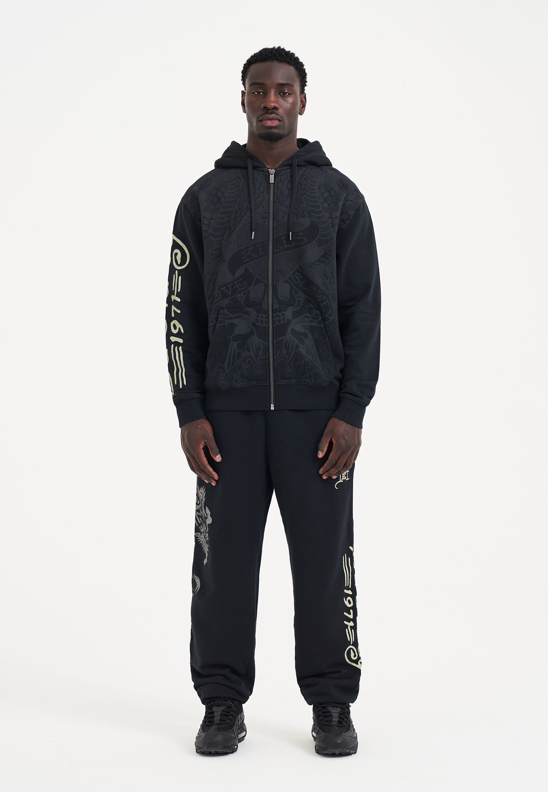The 1871 Crawling Dragon Joggers pay tribute to Ed Hardy's influence across generations, celebrating his iconic artwork and designs.