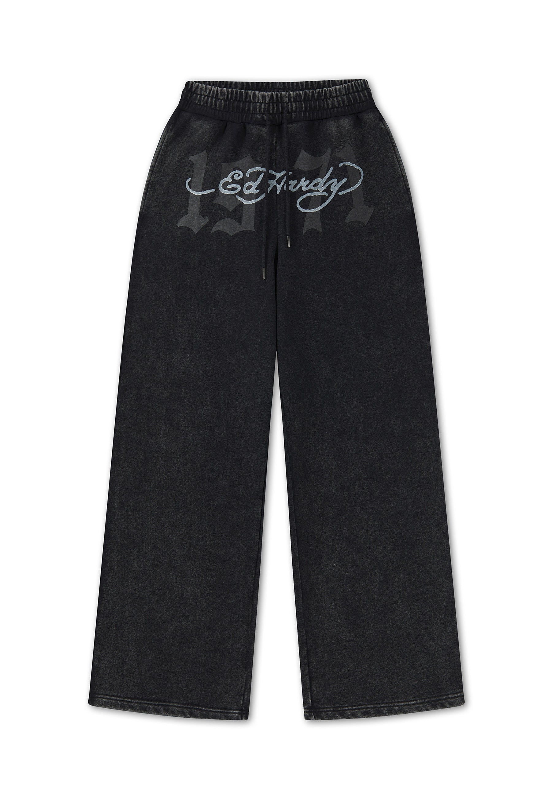 Mens Flaming 1971 Relaxed Washed Straight Leg Joggers - Black