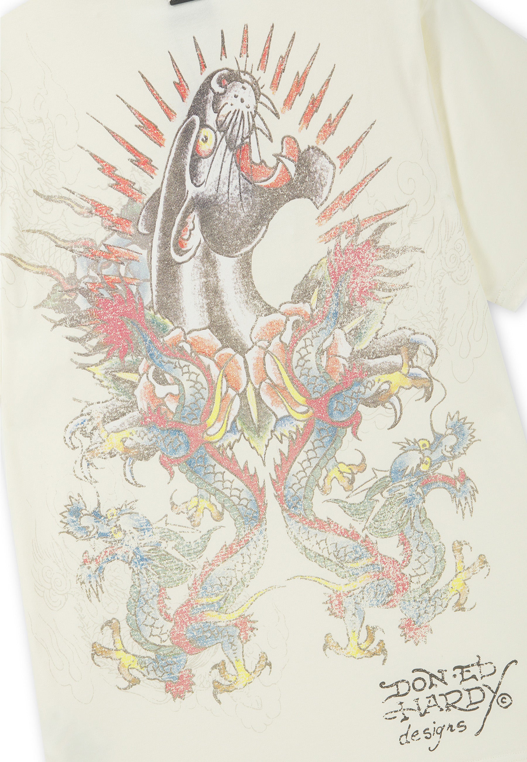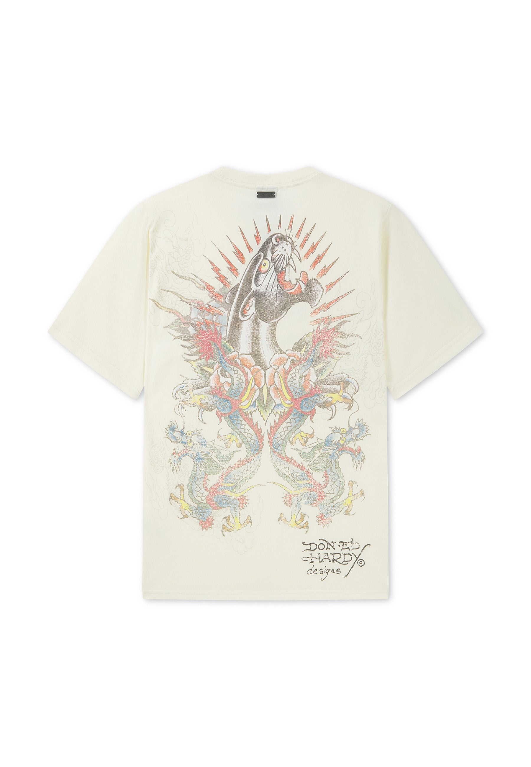Mens Dragon Panther Graphic Regular T-Shirt - Ecru