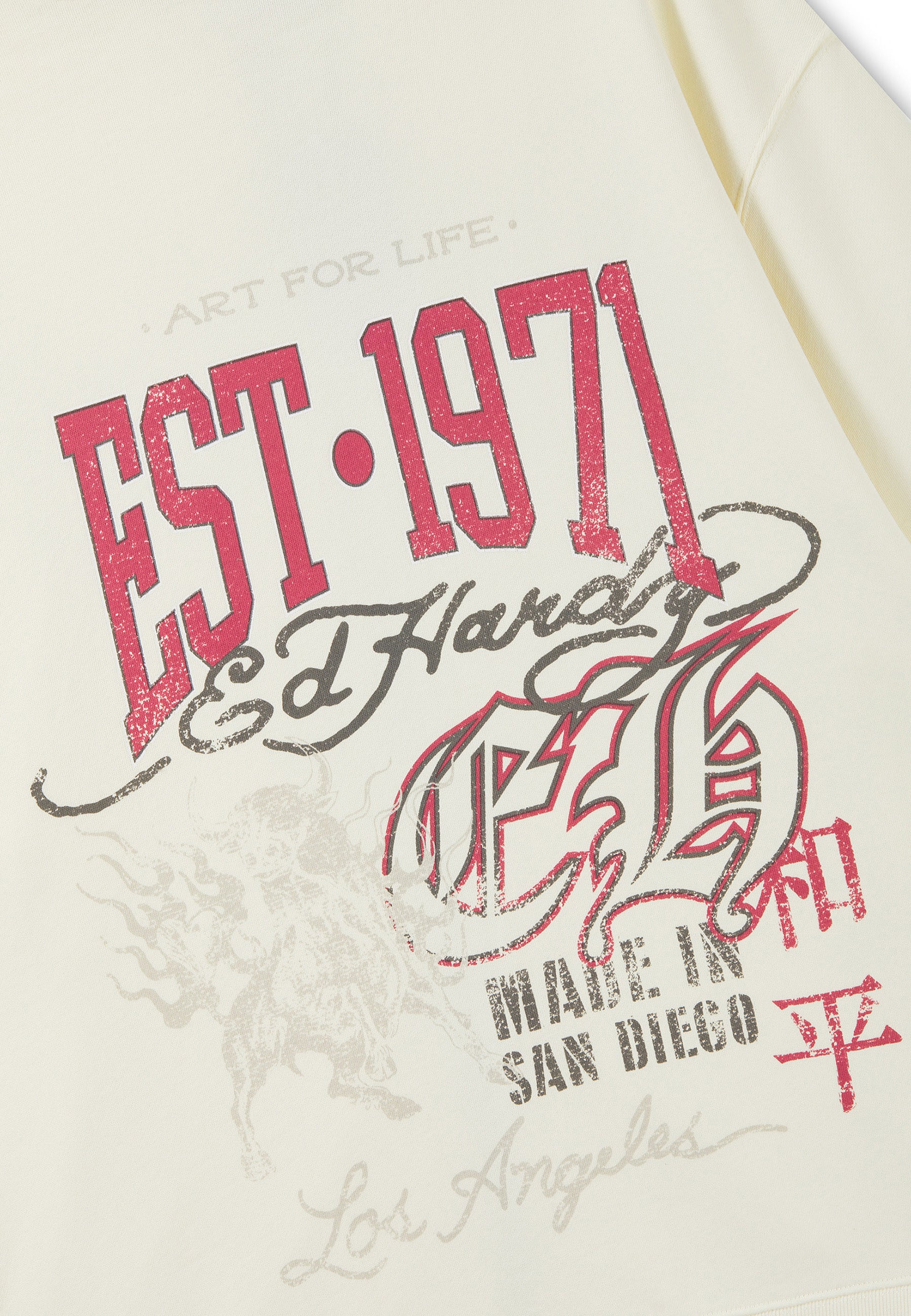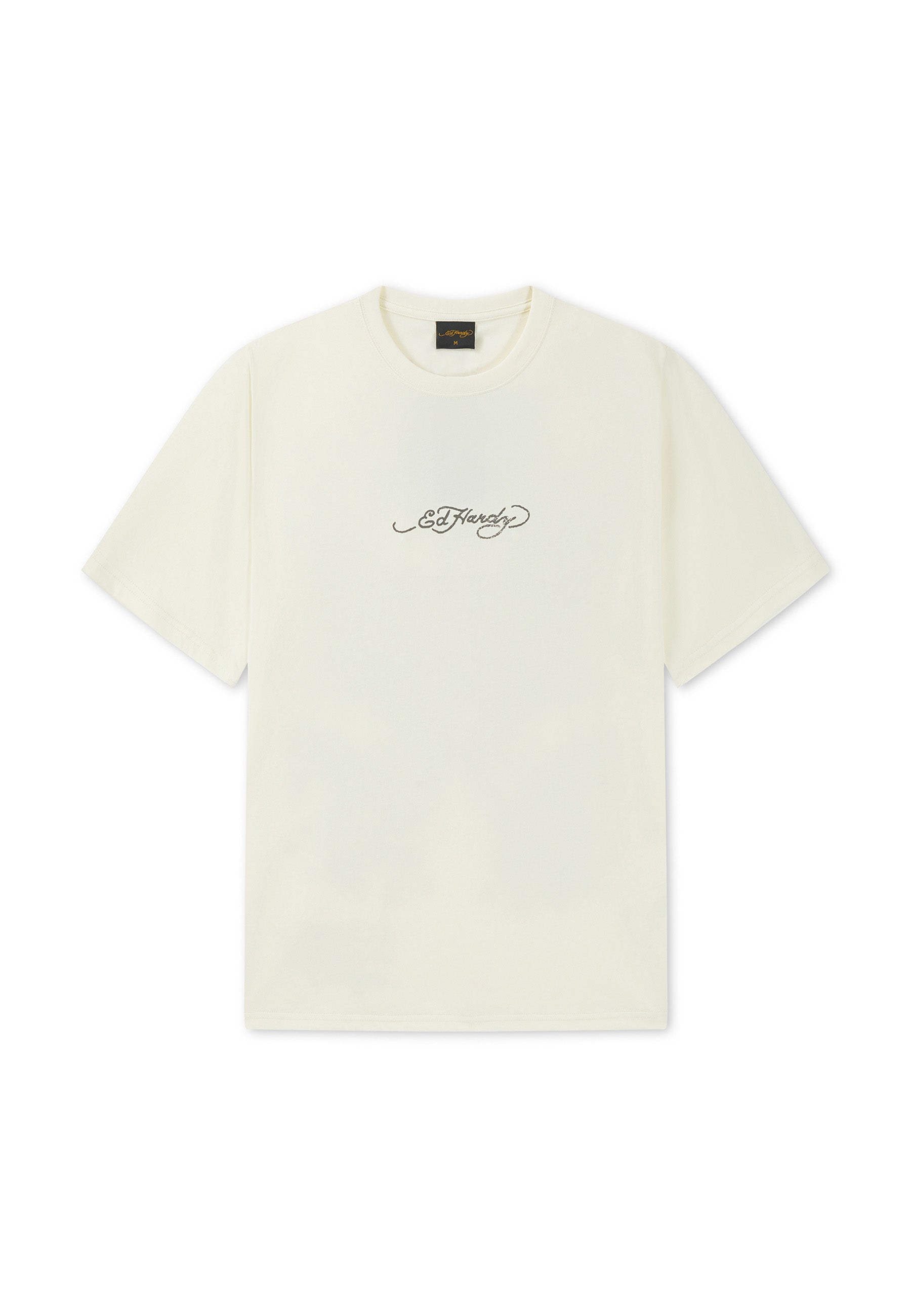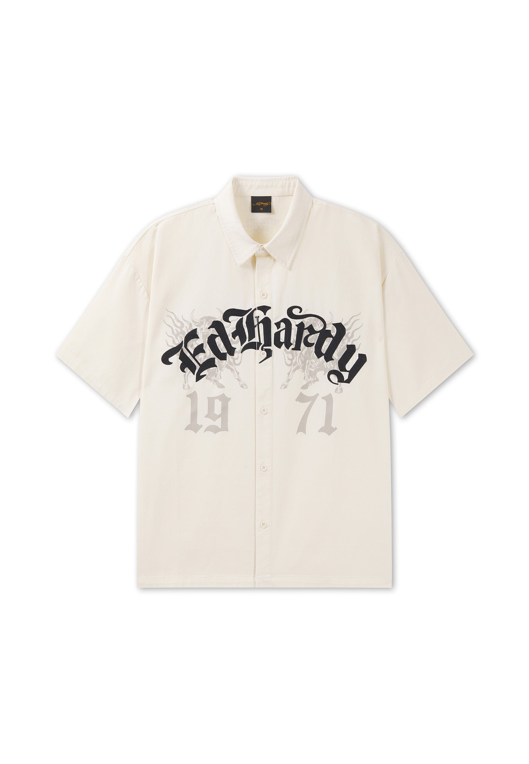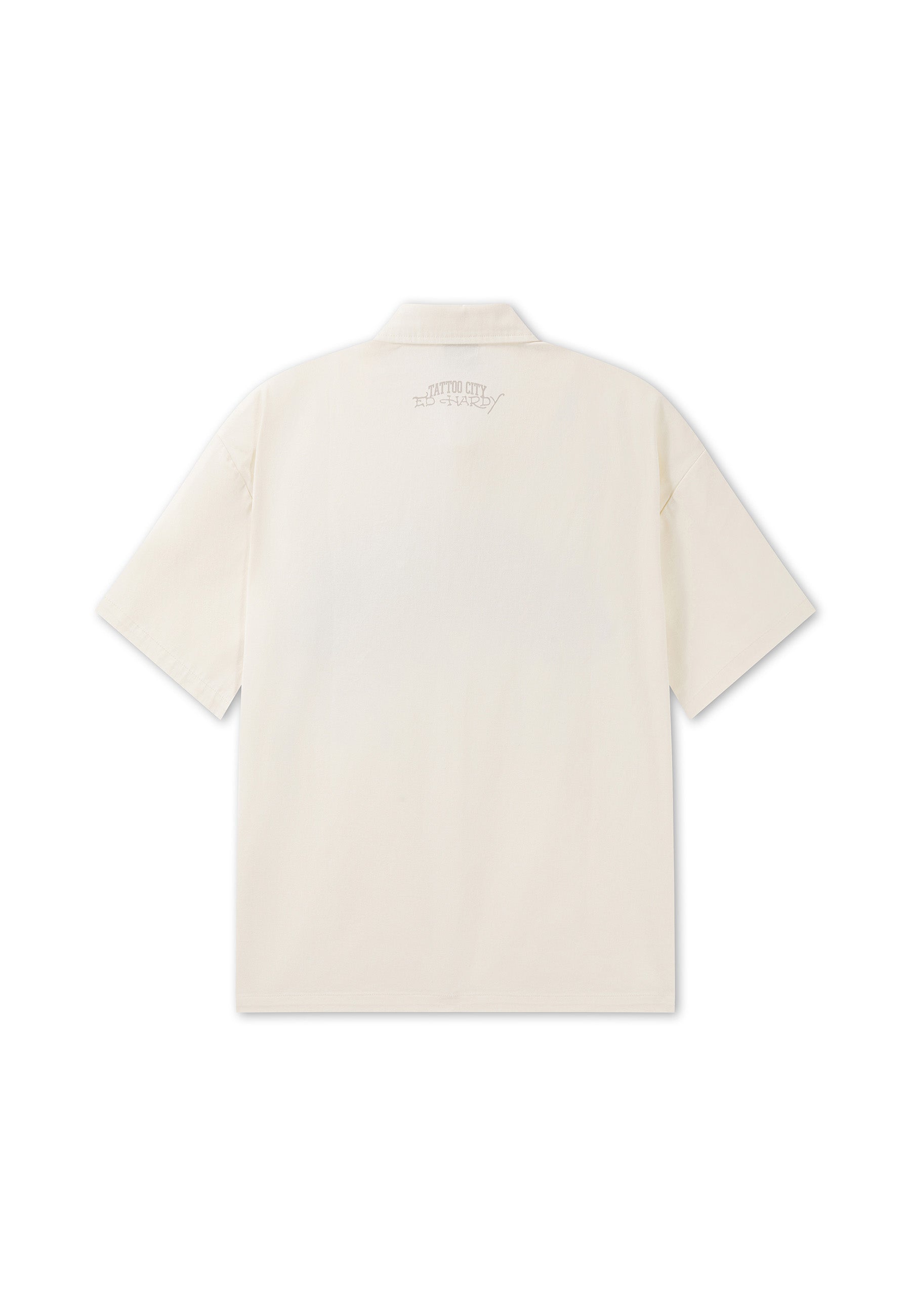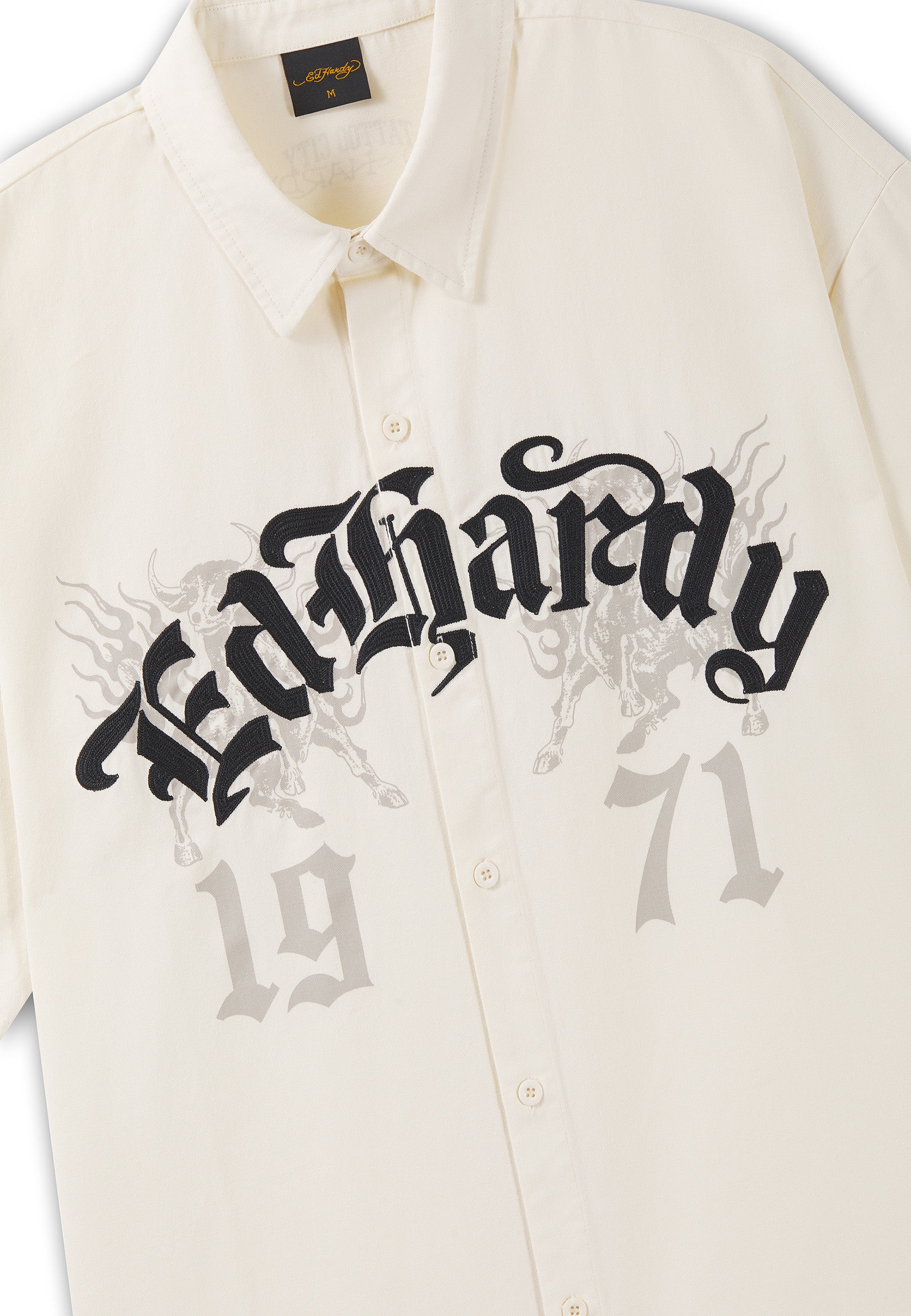 Mens Embroidered Gothic Ed Hardy Boxy Twill Shirt - Ecru
