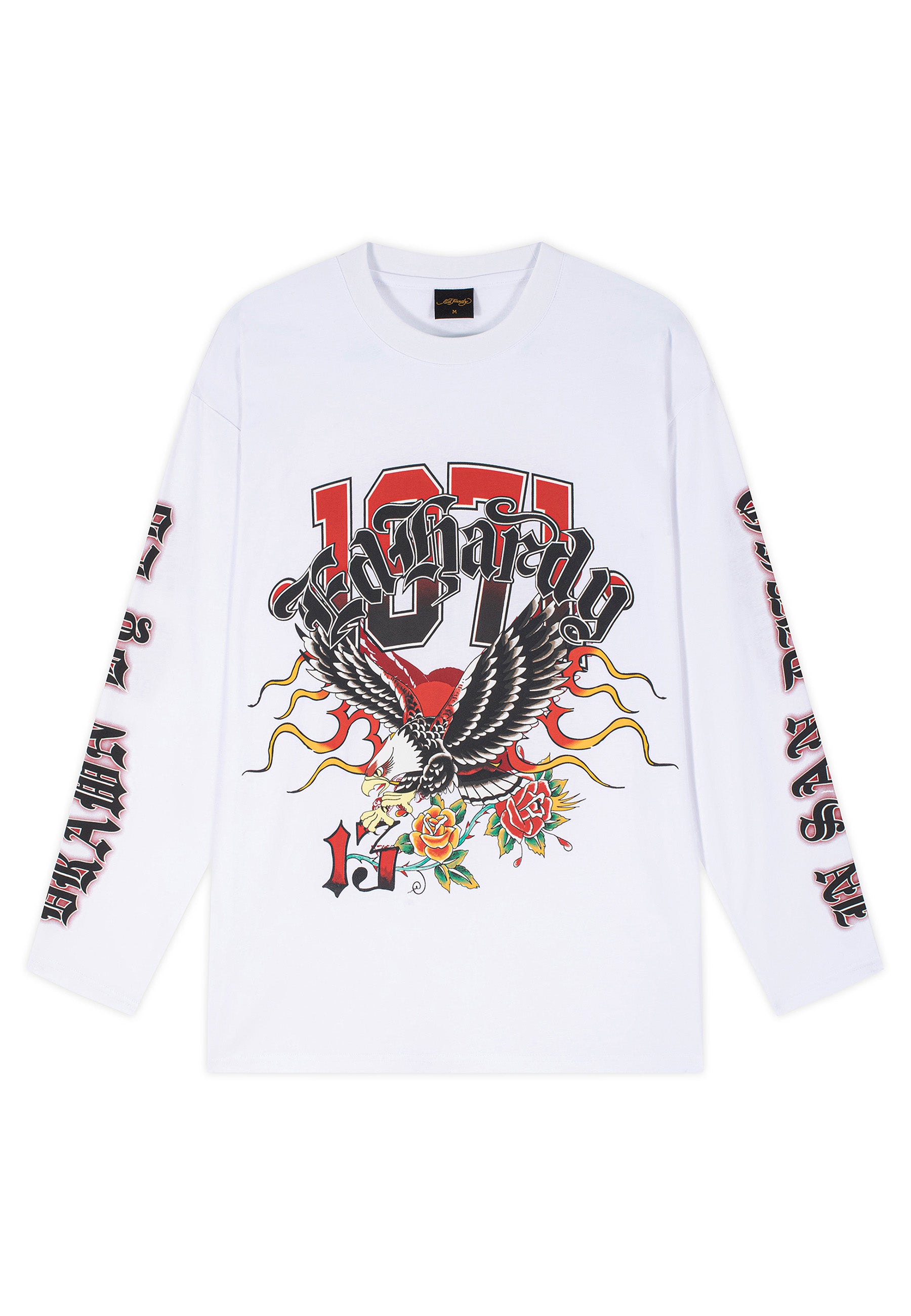 Mens 1971 Tattoo Eagle Graphic Long Sleeve T-Shirt - Bright White