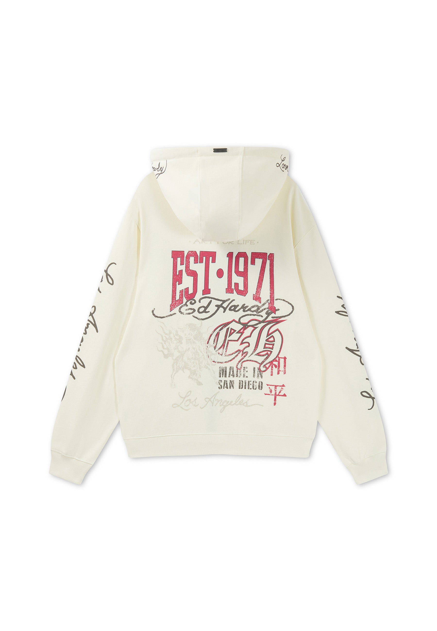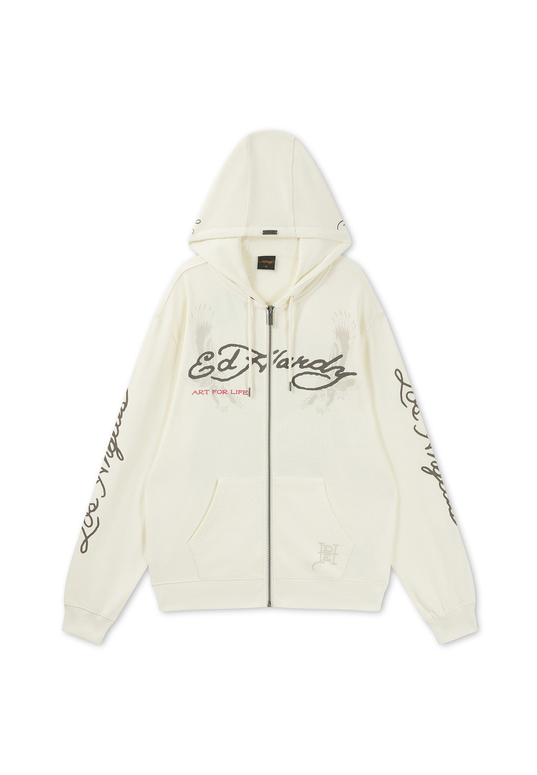 Mens Relaxed Art For Life Tattoo Zip Thru Hoodie - Ecru