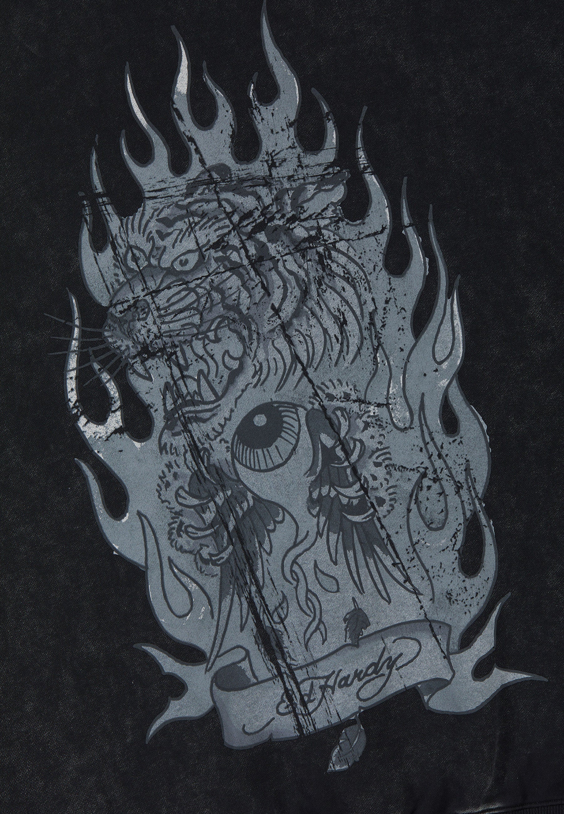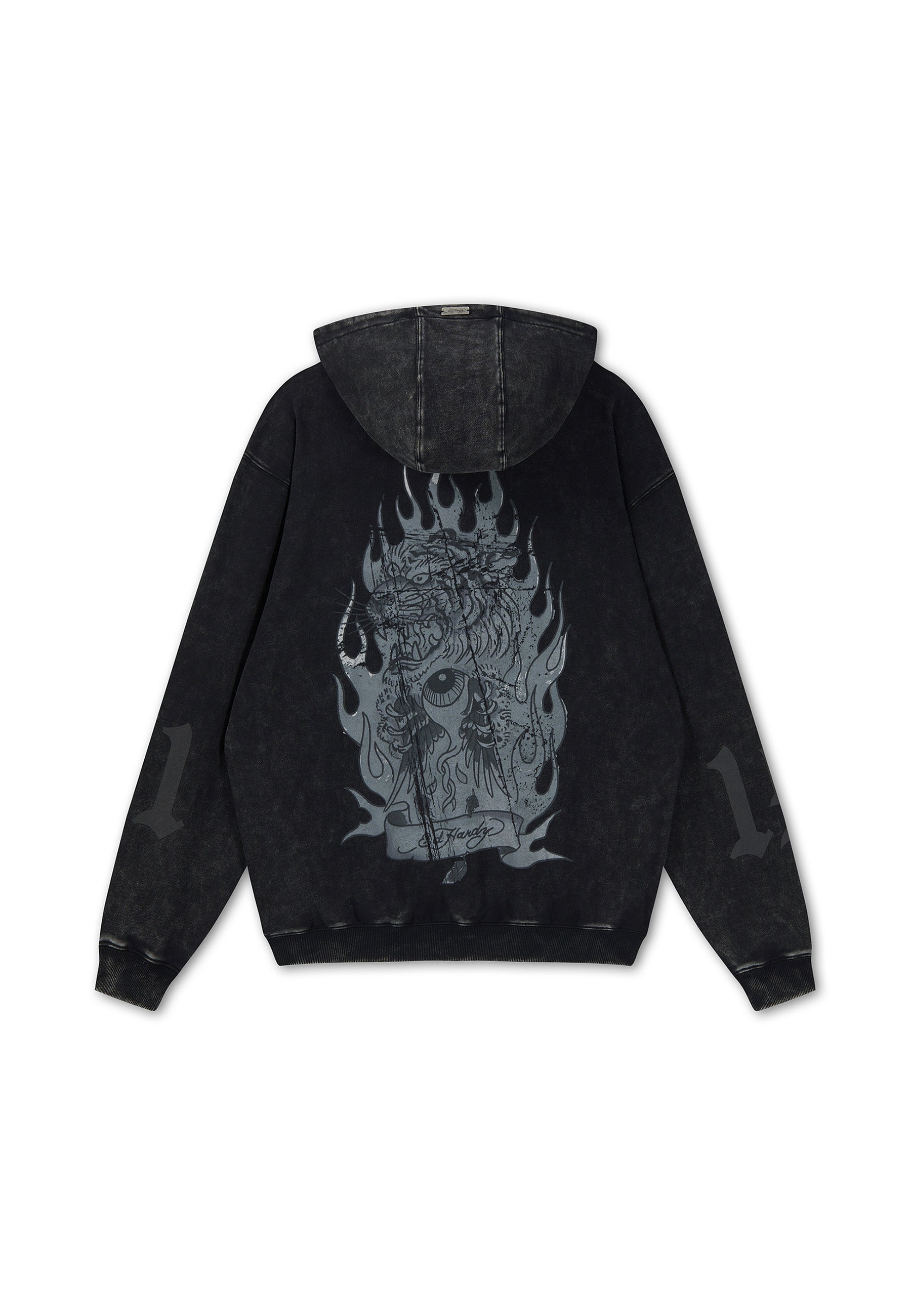 Mens Flaming Tiger Relaxed Hoodie - Black