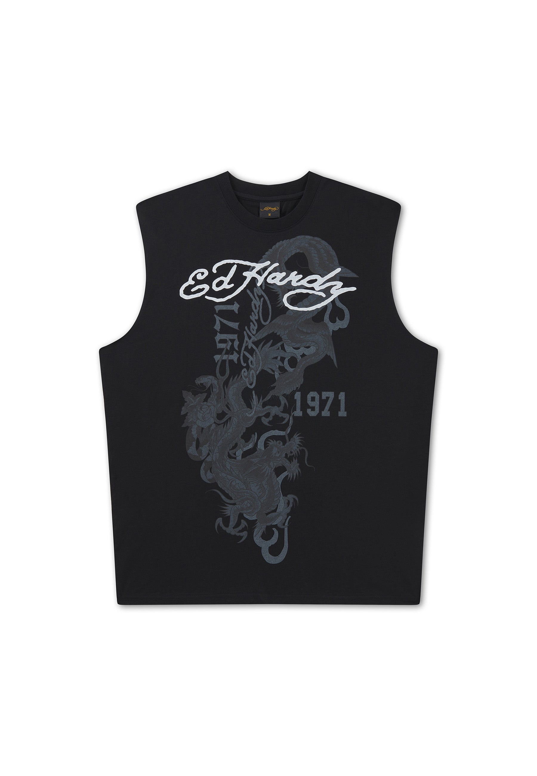 Mens Flying Dragon Graphic Sleeveless T-Shirt - Black