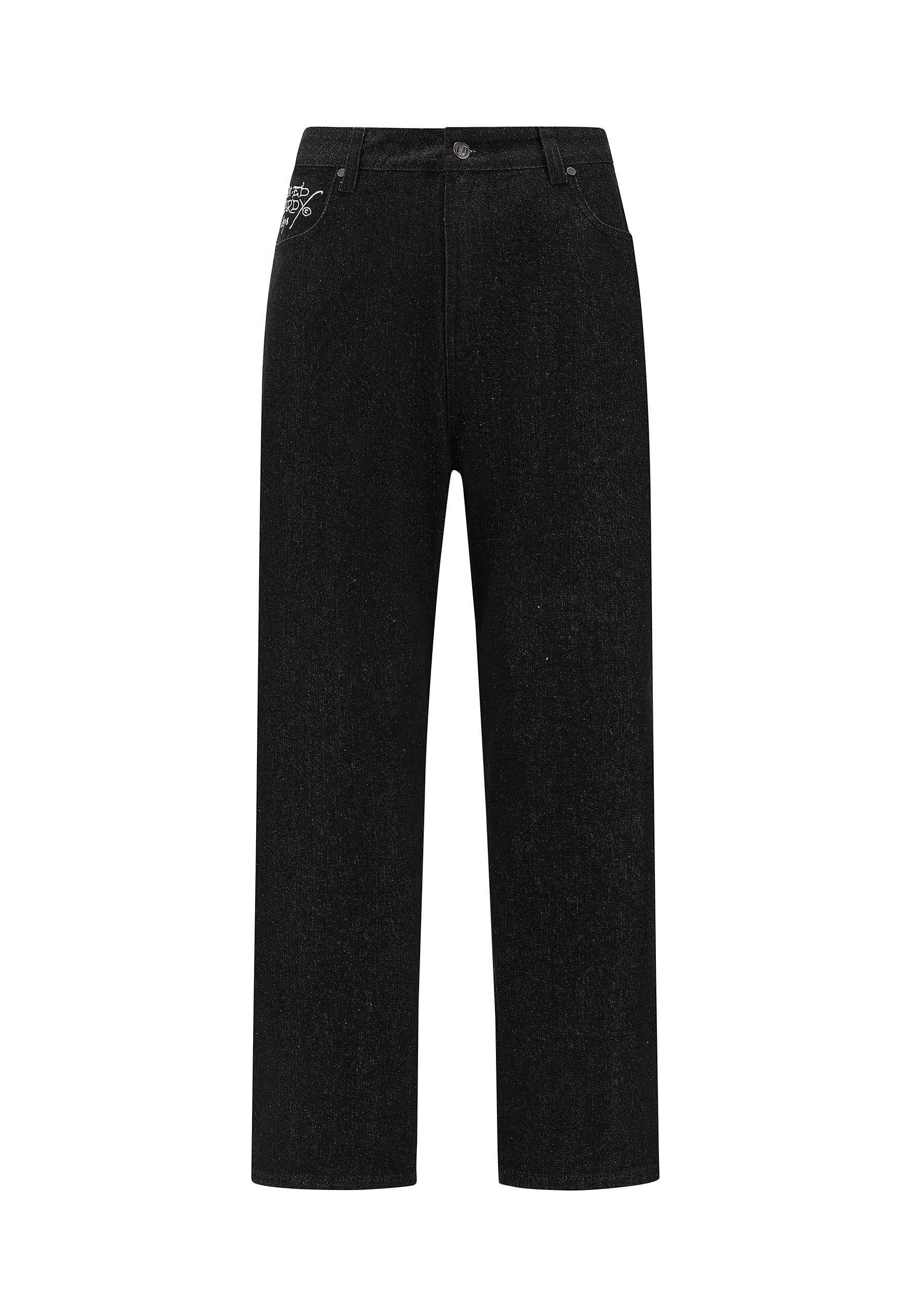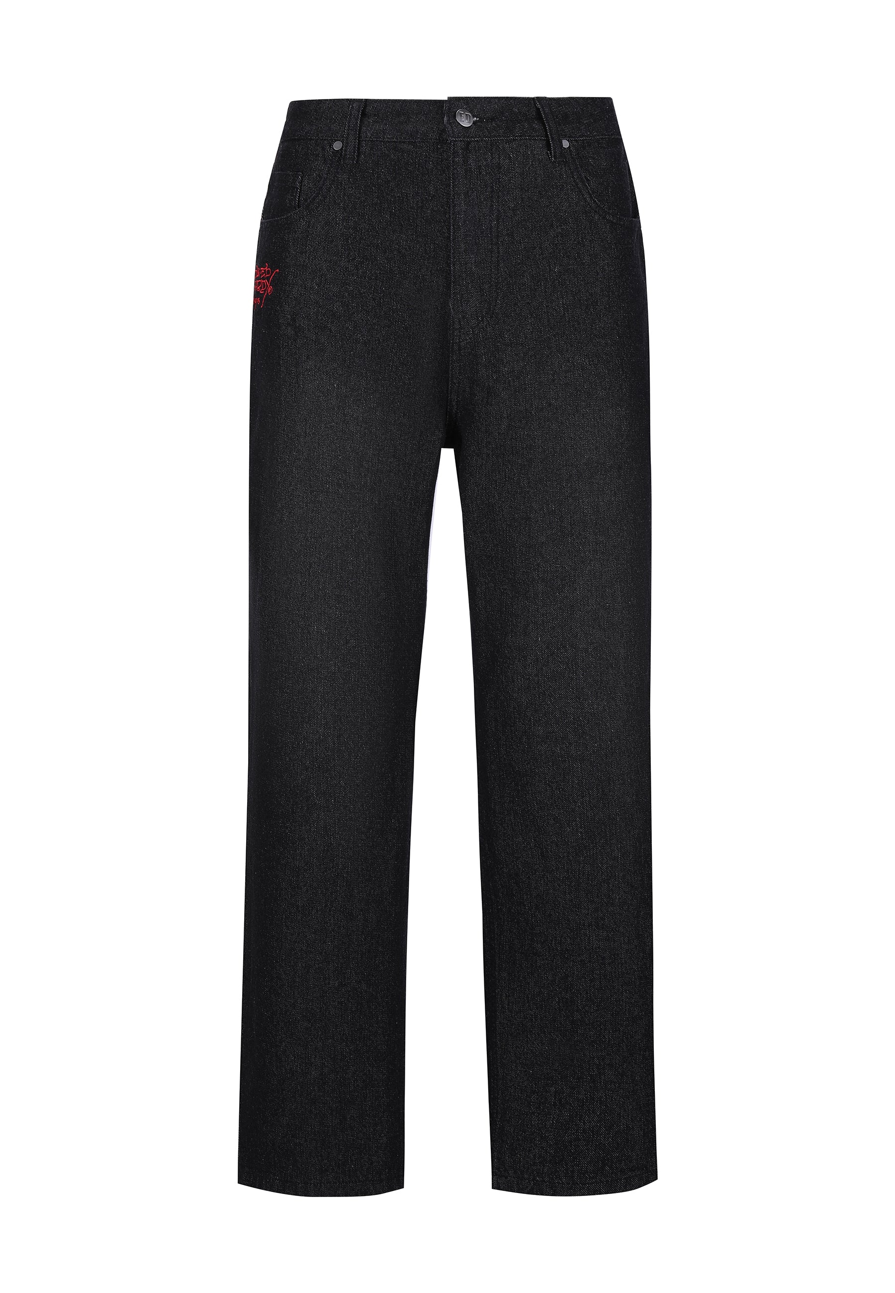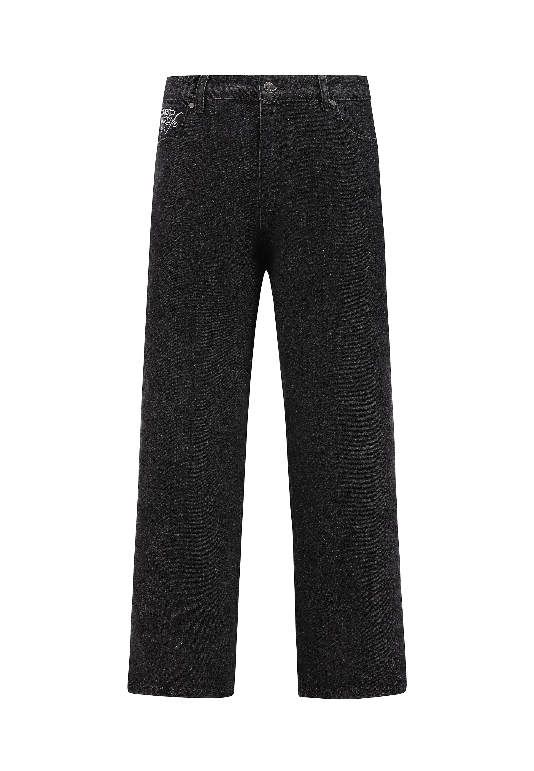 Mens Embroidered Angel Xxtra Fit Jeans - Distressed Black Wash