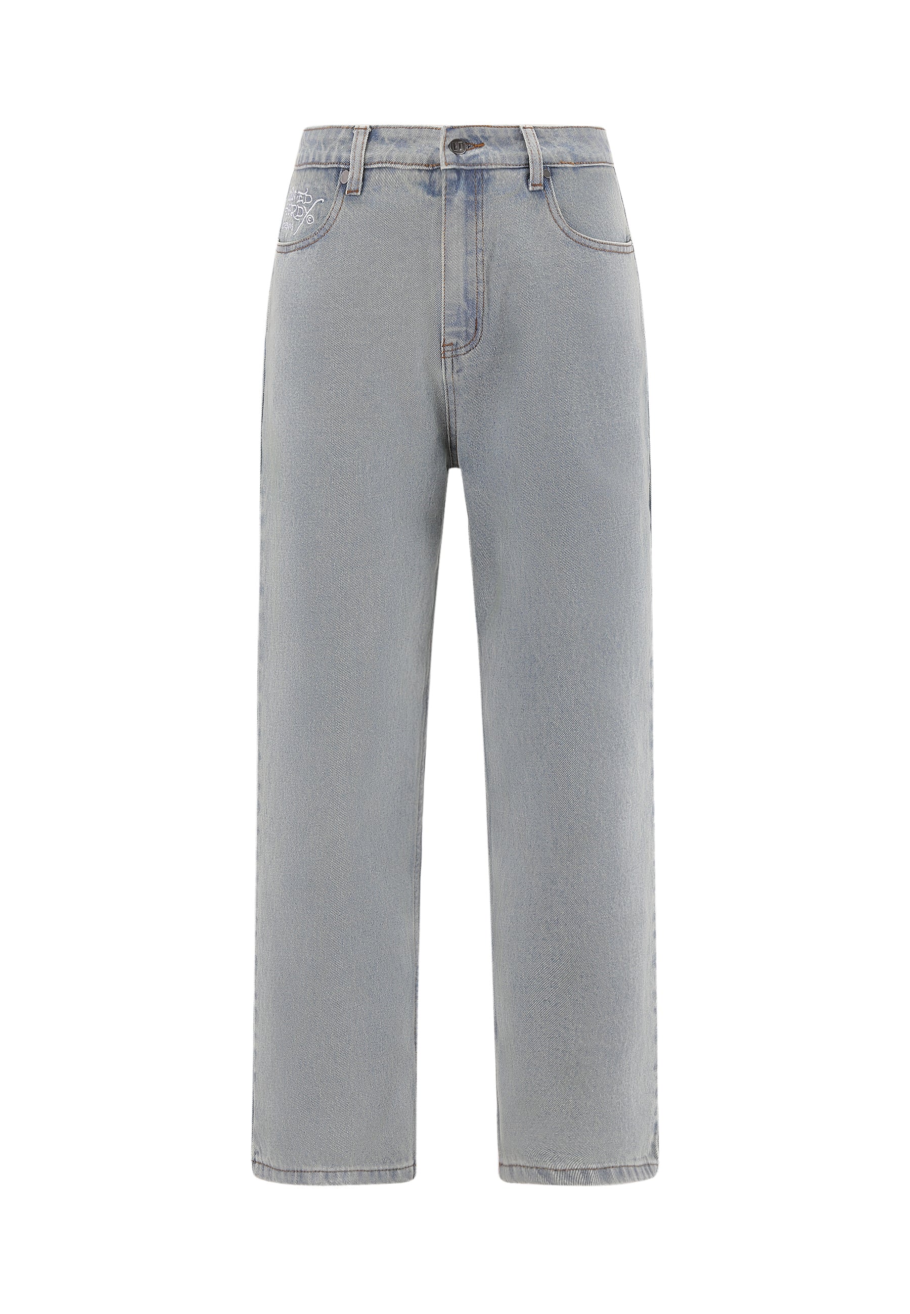 Mens Embroidered Angel Xxtra Fit Jeans - Distressed Blue Wash