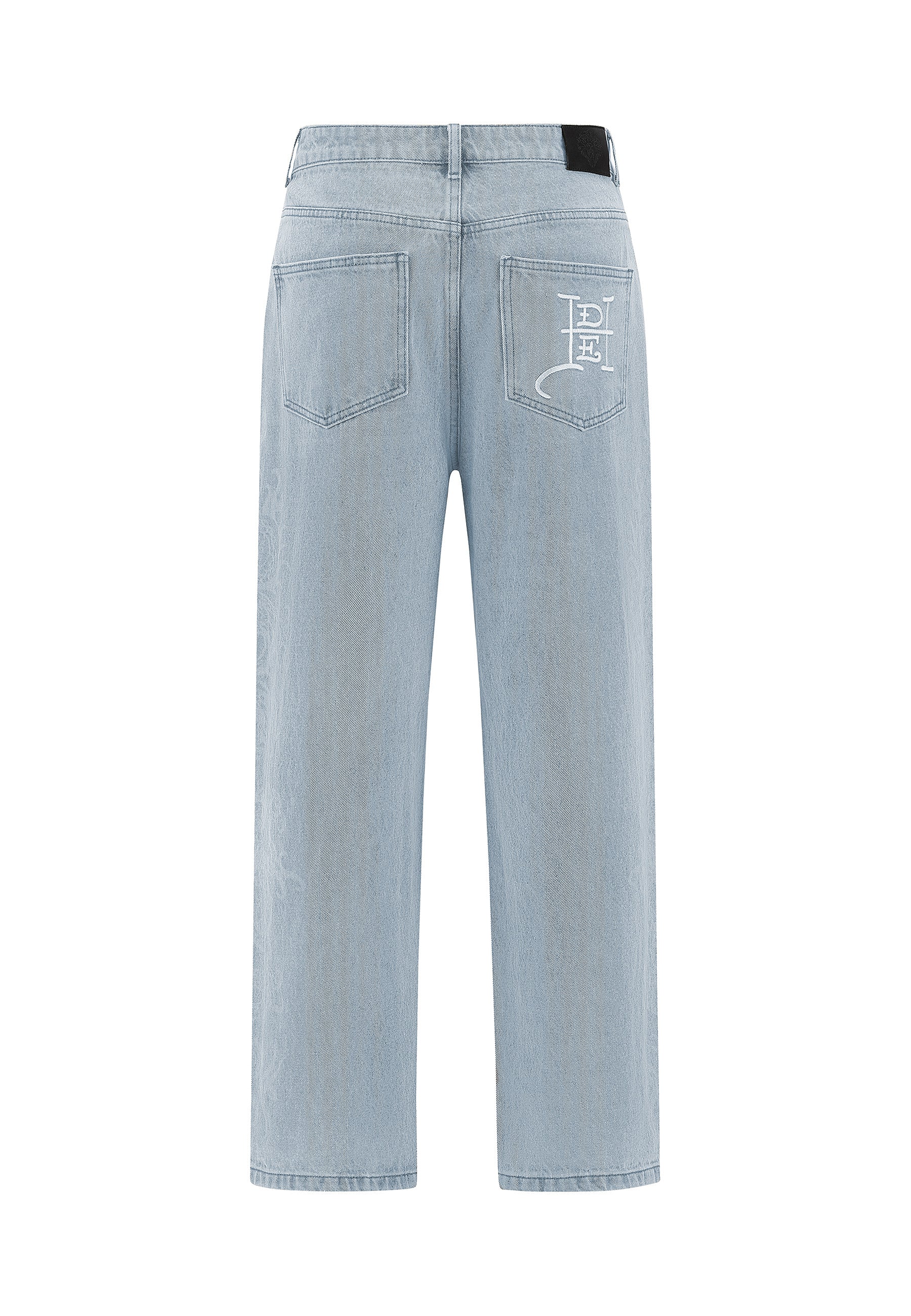 Mens Embroidered Panther Relaxed Jeans - Blue Blasted Wash
