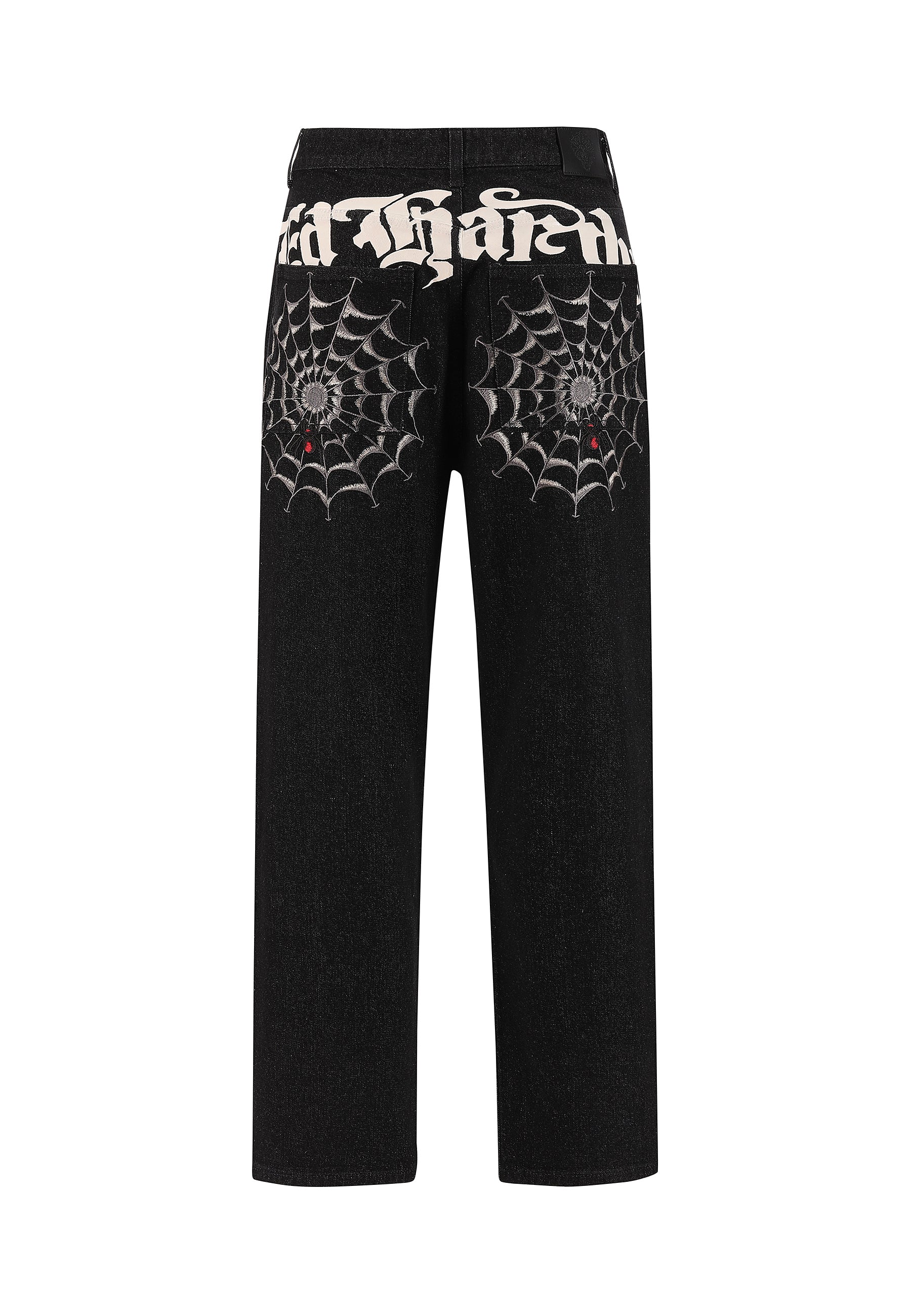 Mens Snake And Spider Outline Applique Denim Trousers Jeans - Black