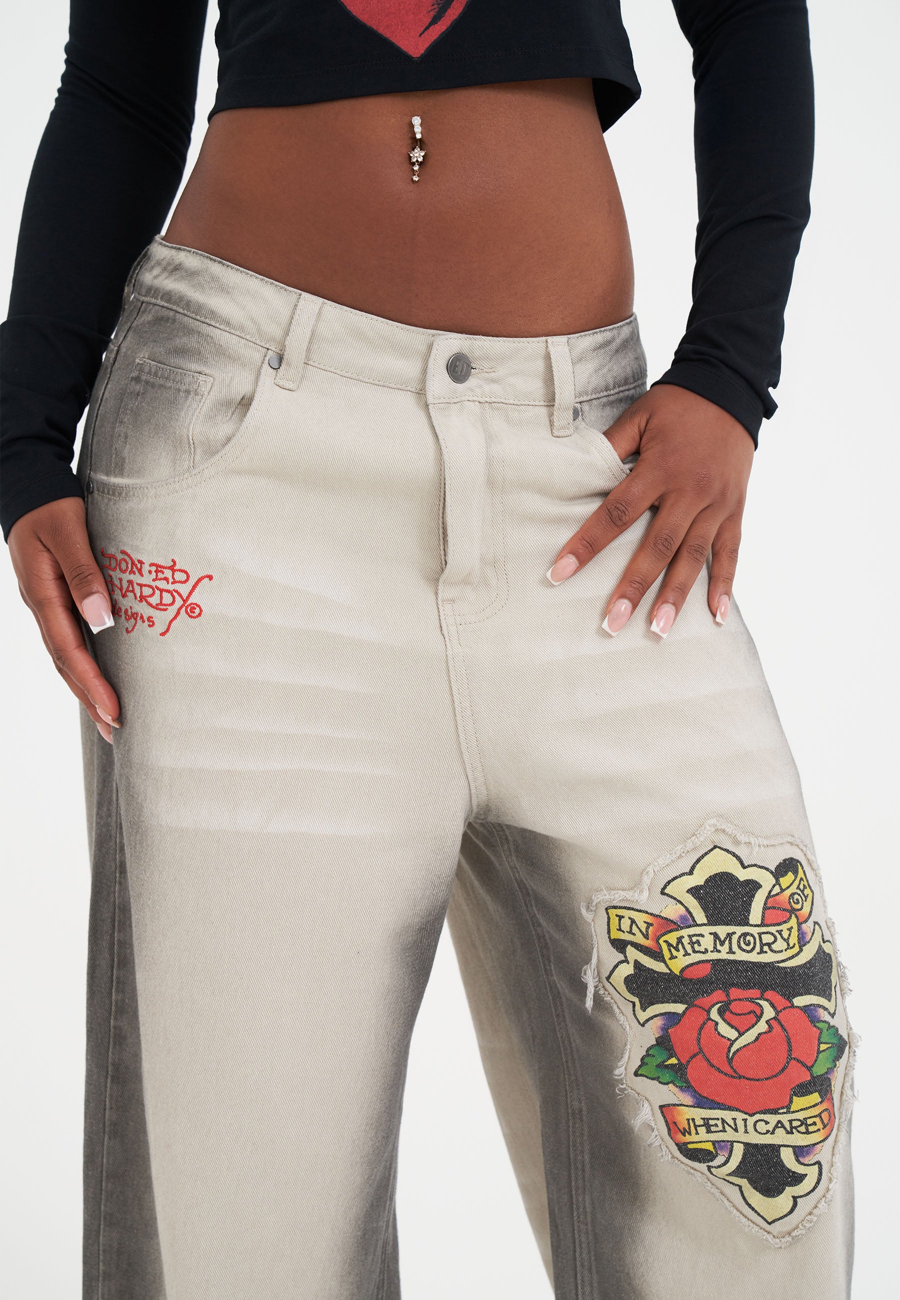 Womens Tattoo Collage Seam Detail Wide Leg Joggers - Charcoal