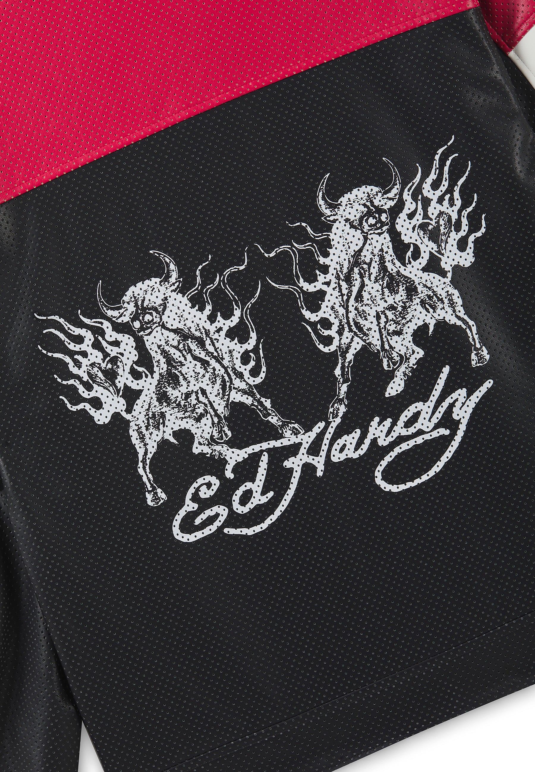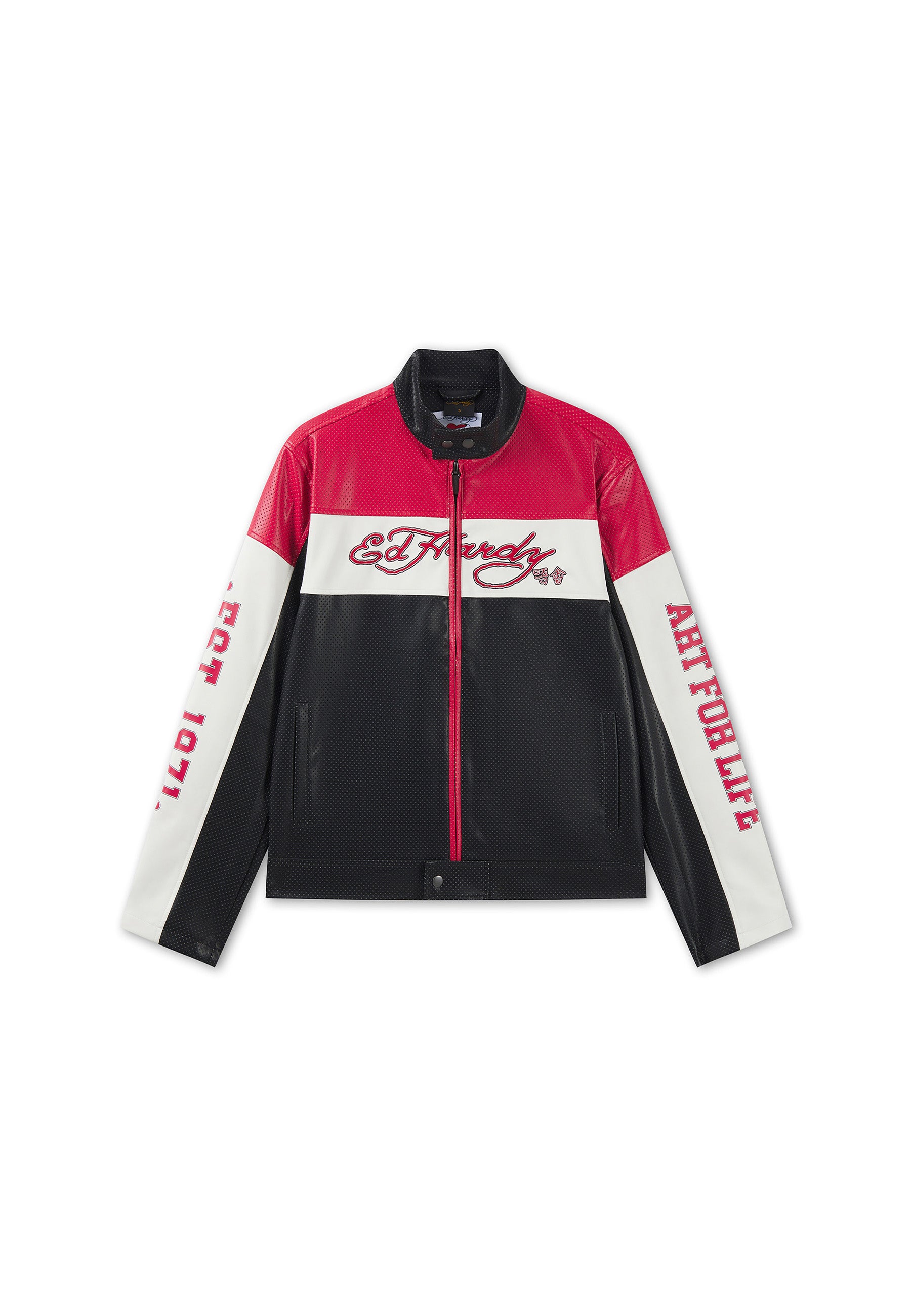 Womens Art For Life Regular Perforated Moto Jacket - Red / Black