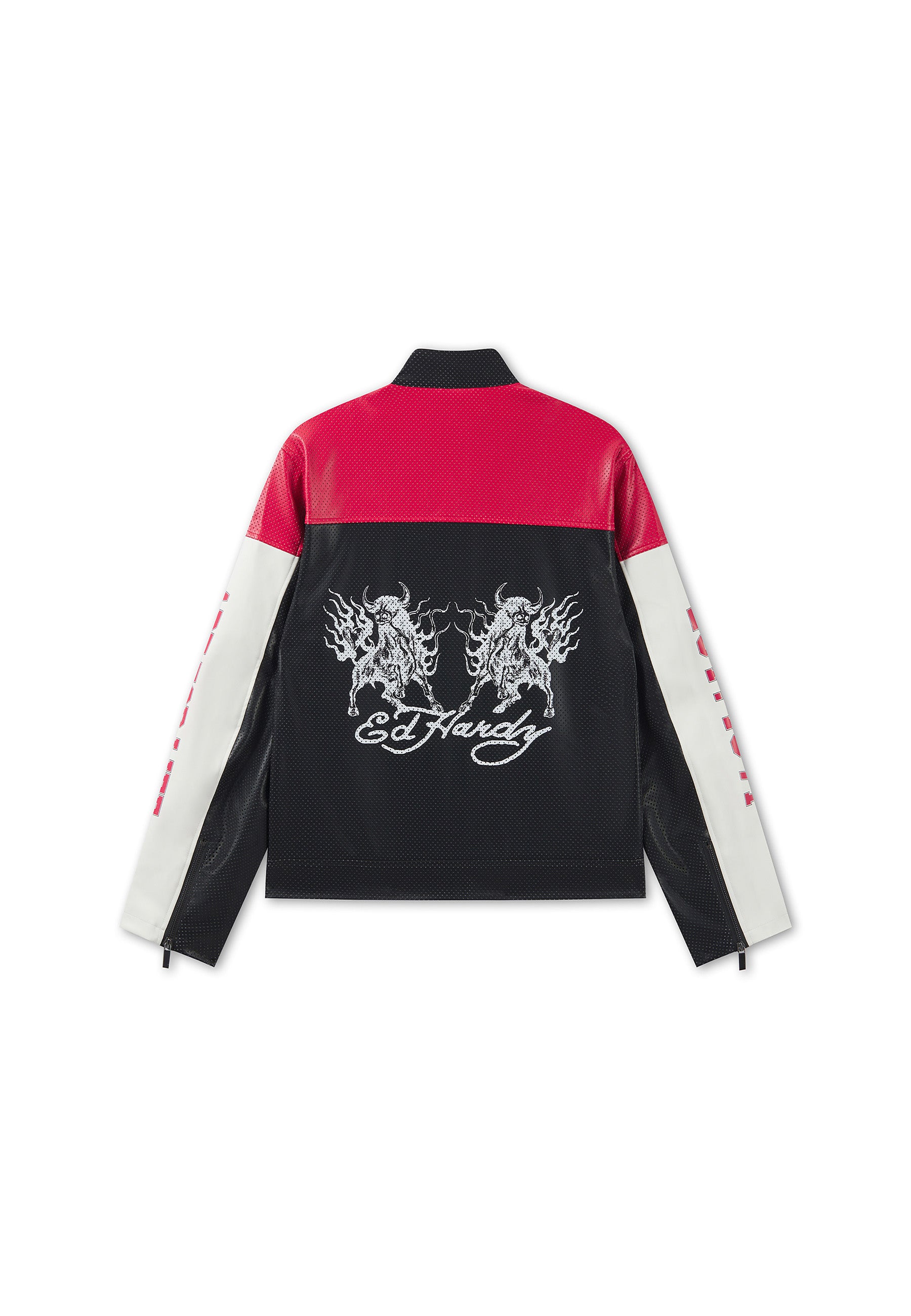 Womens ED-1971 Moto Biker Jacket- Black/Red/White