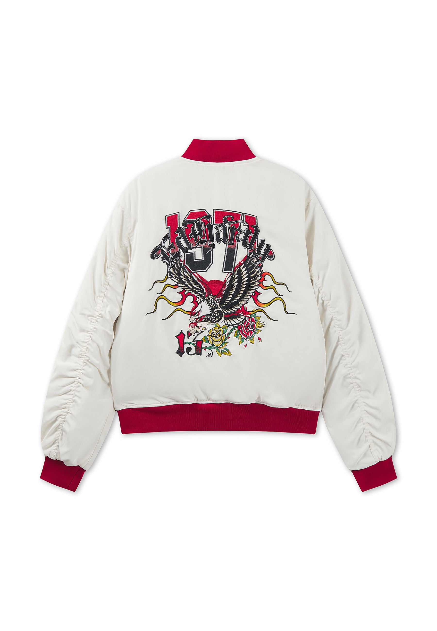 Womens Gothic Flaming Eagle Relaxed Bomber Jacket - Ecru