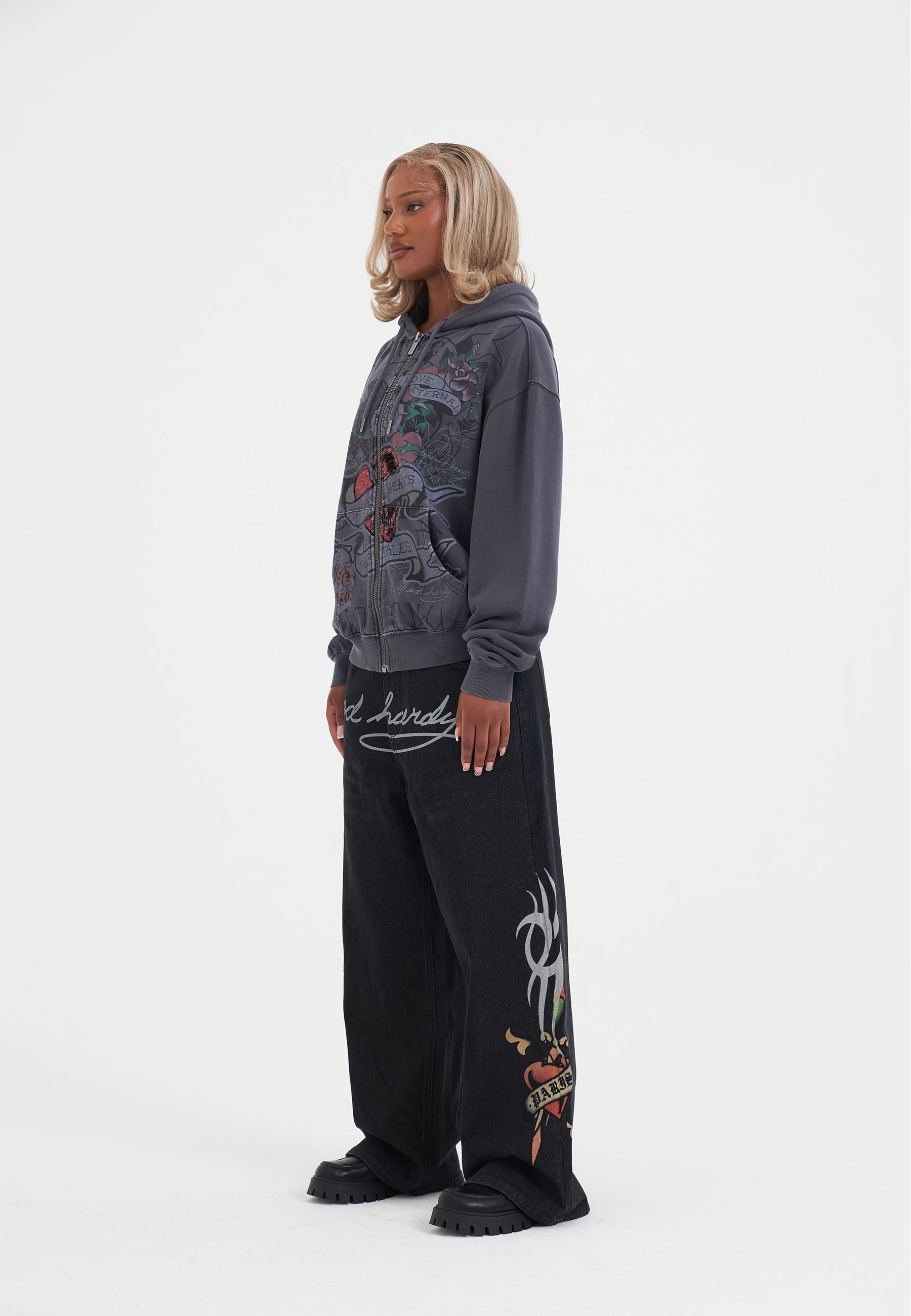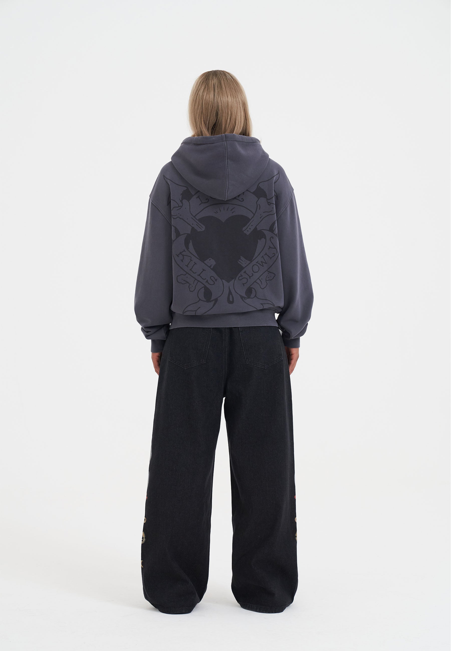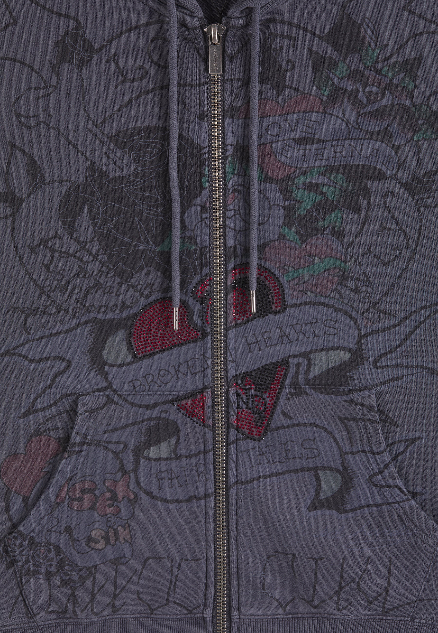 WOMENS BROKEN HEARTS AND FAIRYTALES ZIP THRU HOODIE in Charcoal