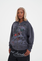 Womens Broken Hearts And Fairytales Zip Thru Hoodie - Charcoal