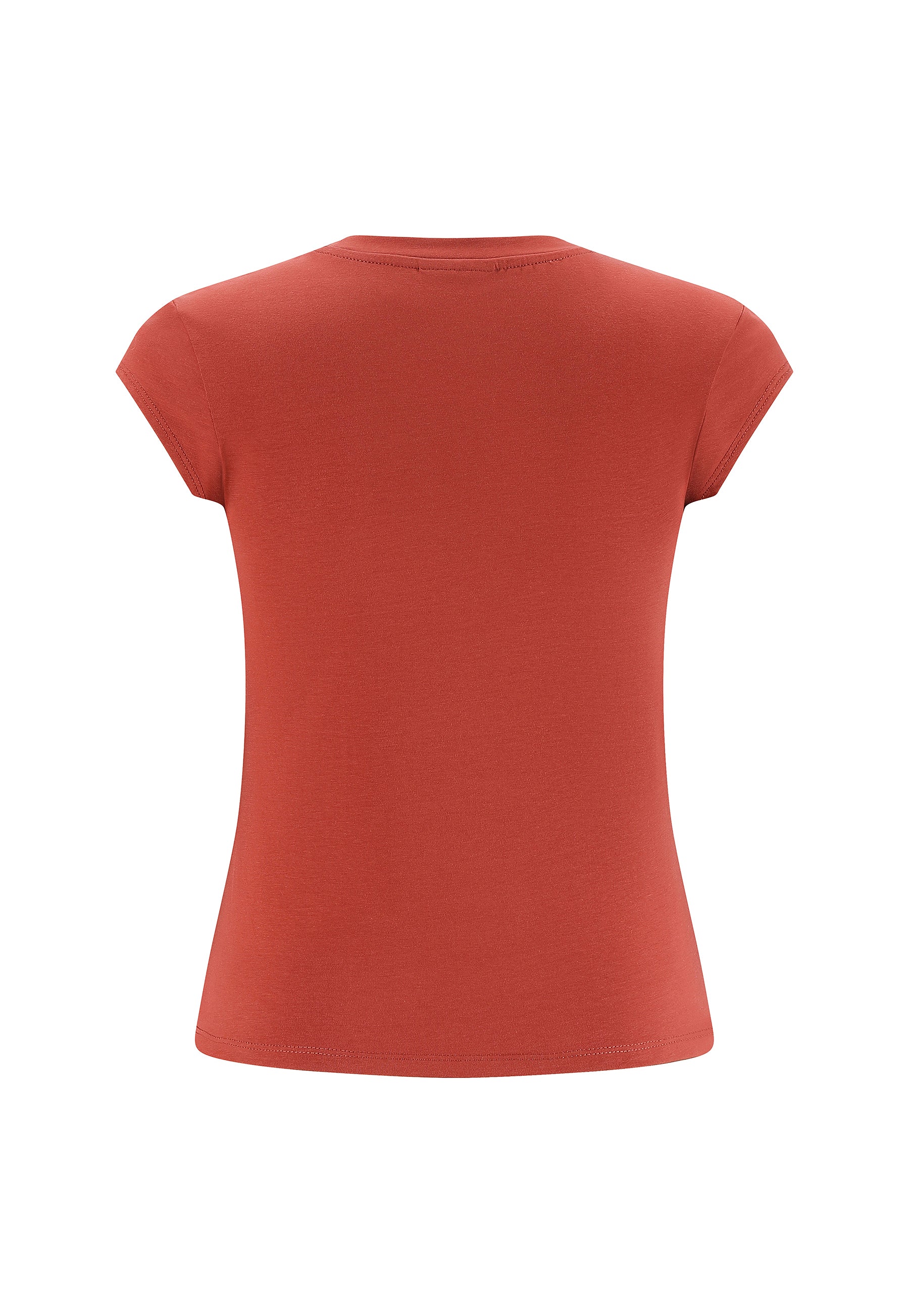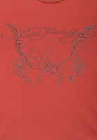 WOMENS BUTTERFLY DIAMANTE CAP SLEEVE T-SHIRT in Red