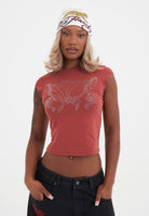 Womens Butterfly Diamante Cap Sleeve T-Shirt - Red