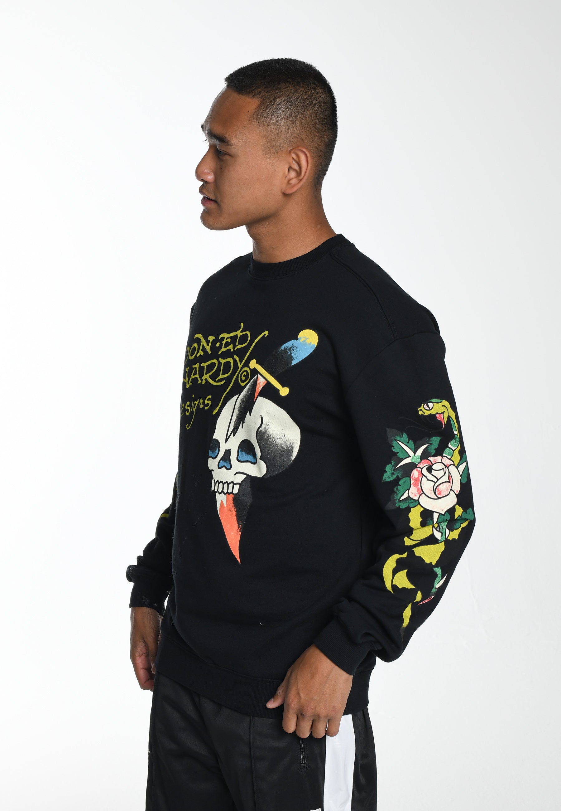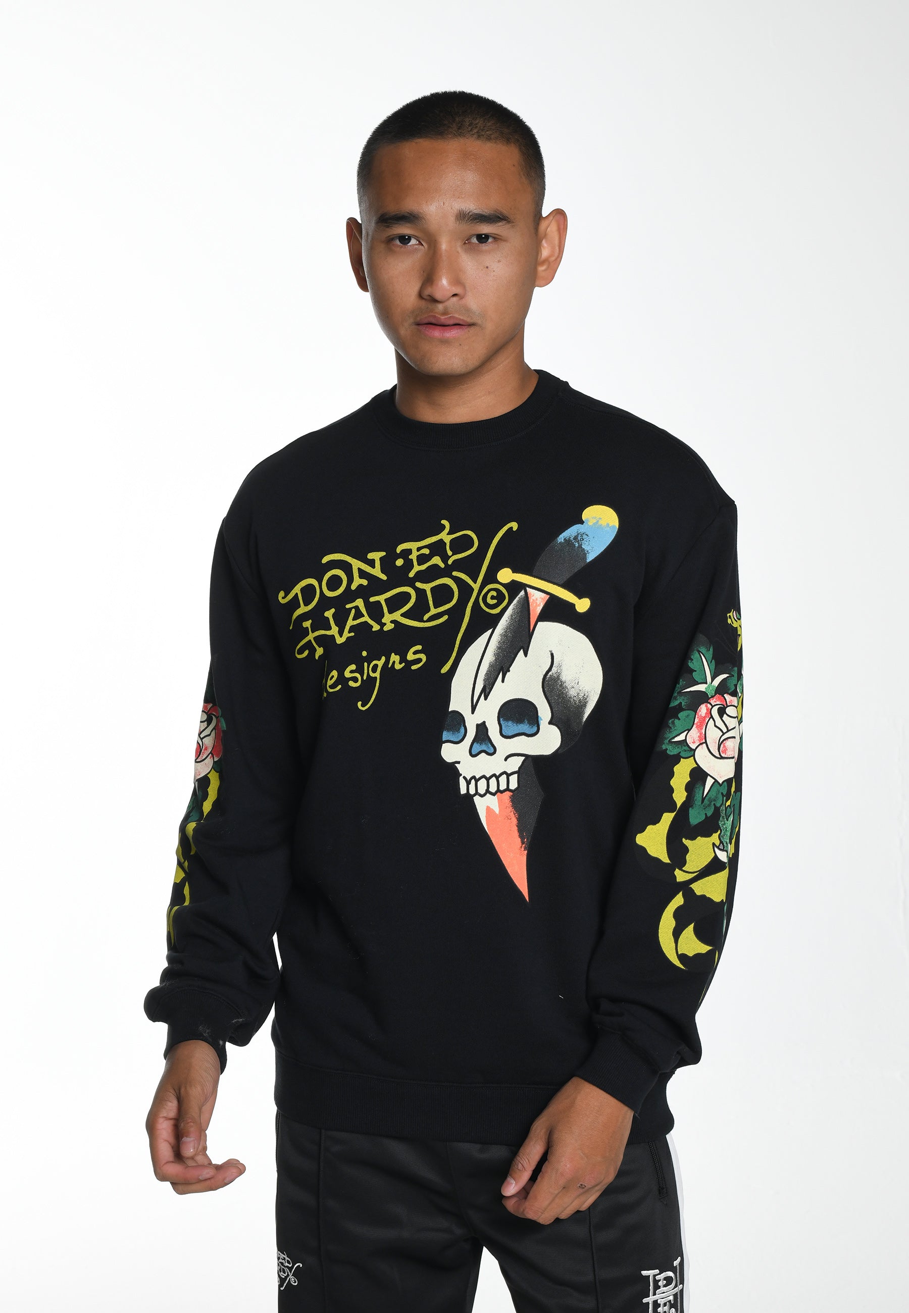 Mens Skull-Dagz Graphic Crew Neck Sweatshirt - Black