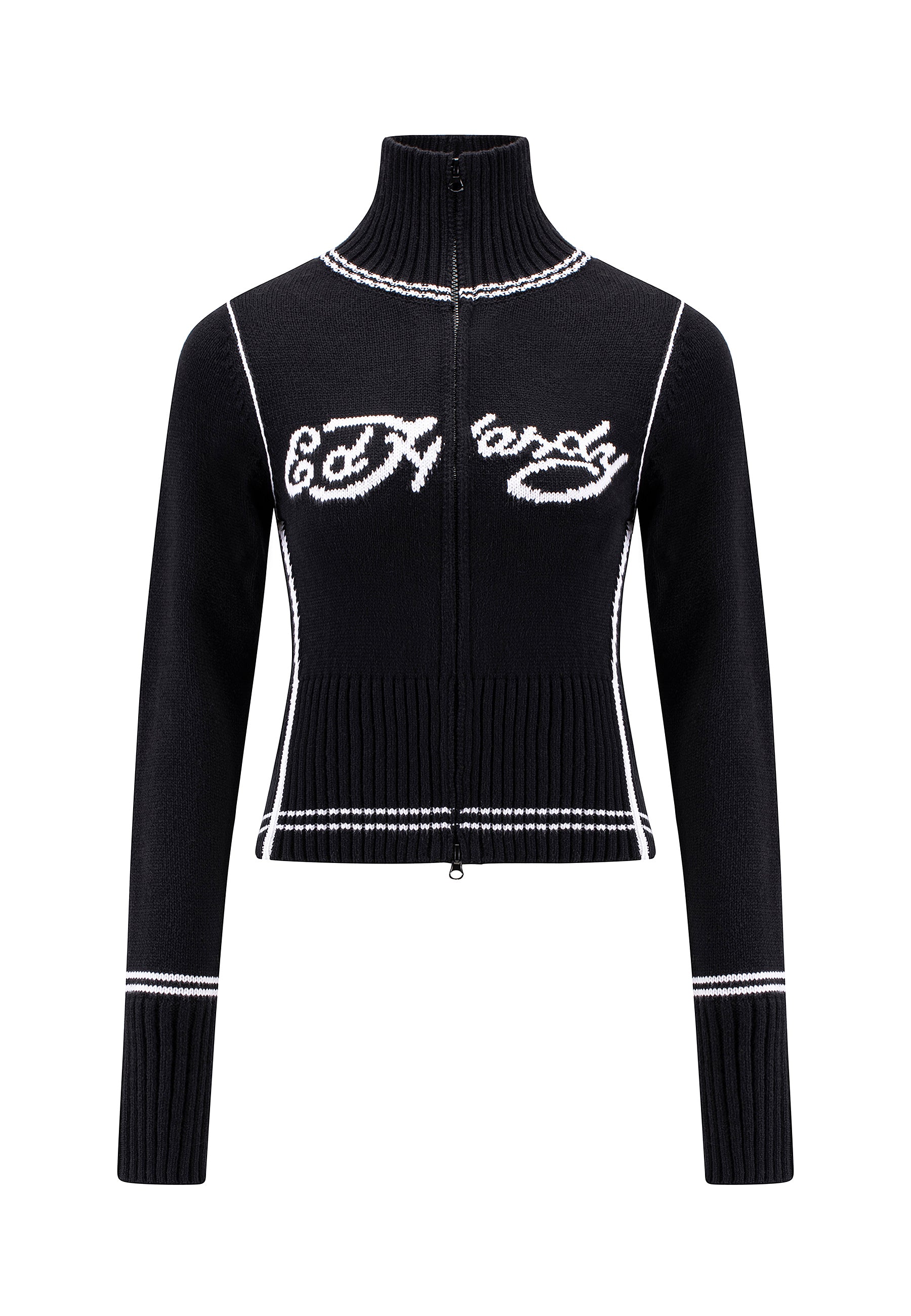 Womens Life Before Knitted Zip Thru Jacket - Black