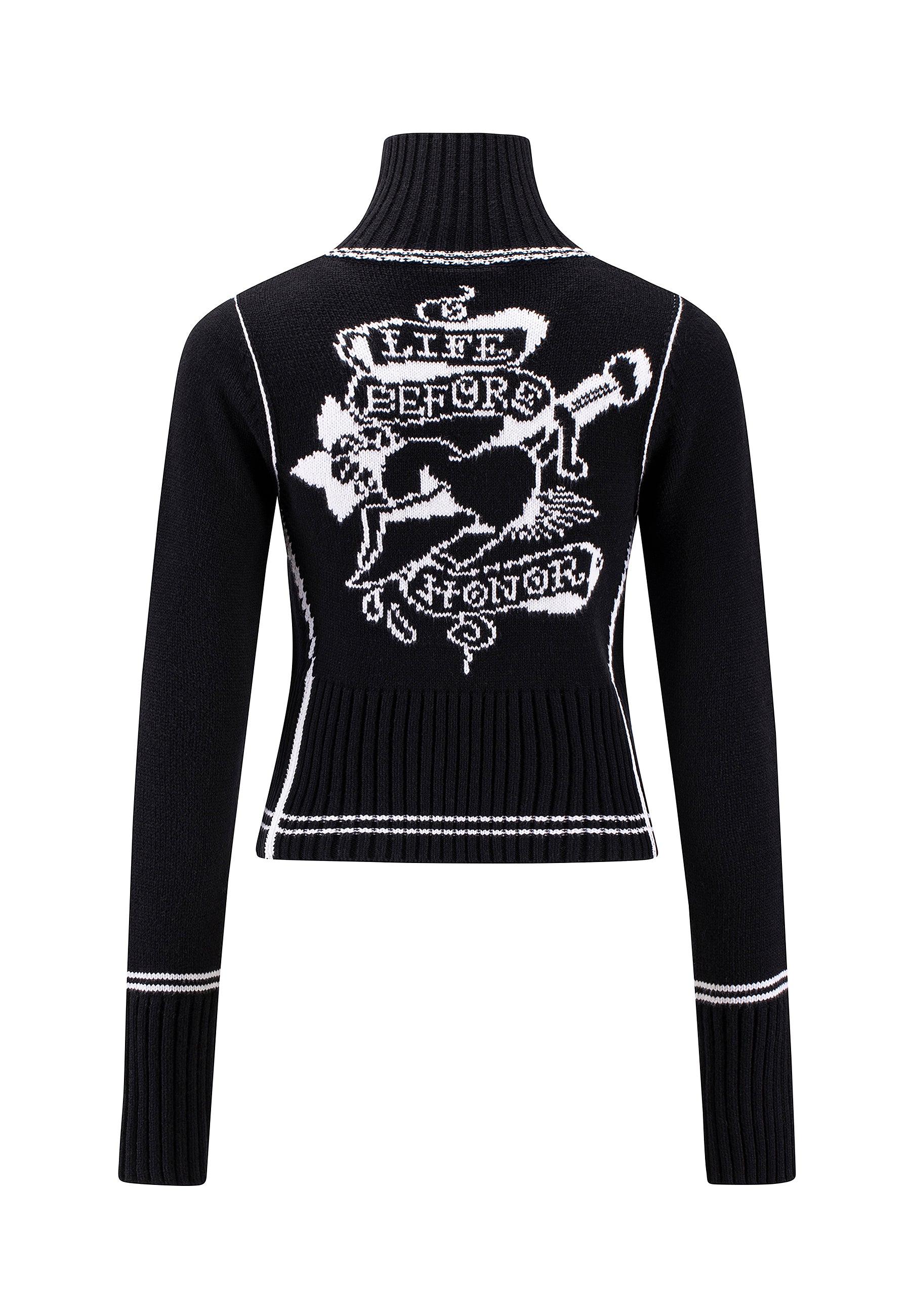 Womens Life Before Knitted Zip Thru Jacket - Black