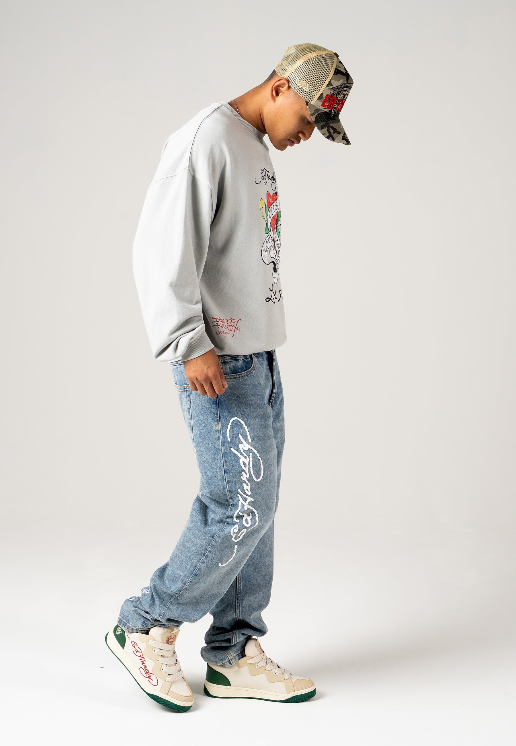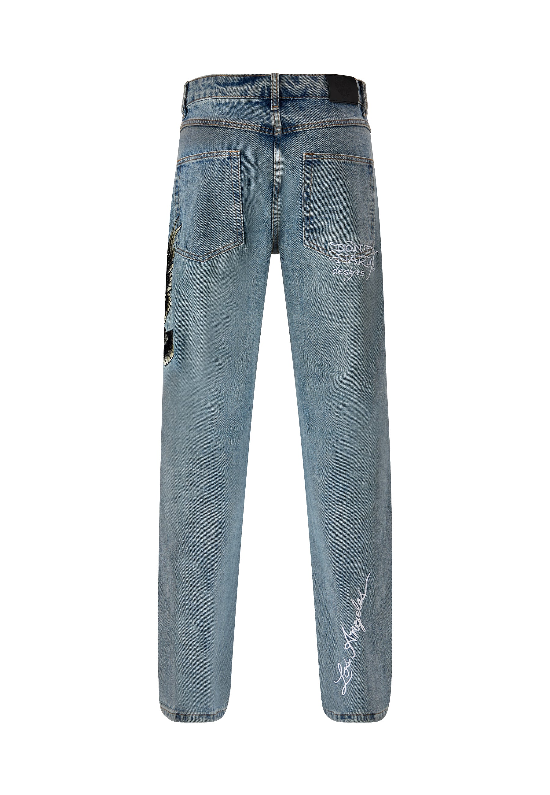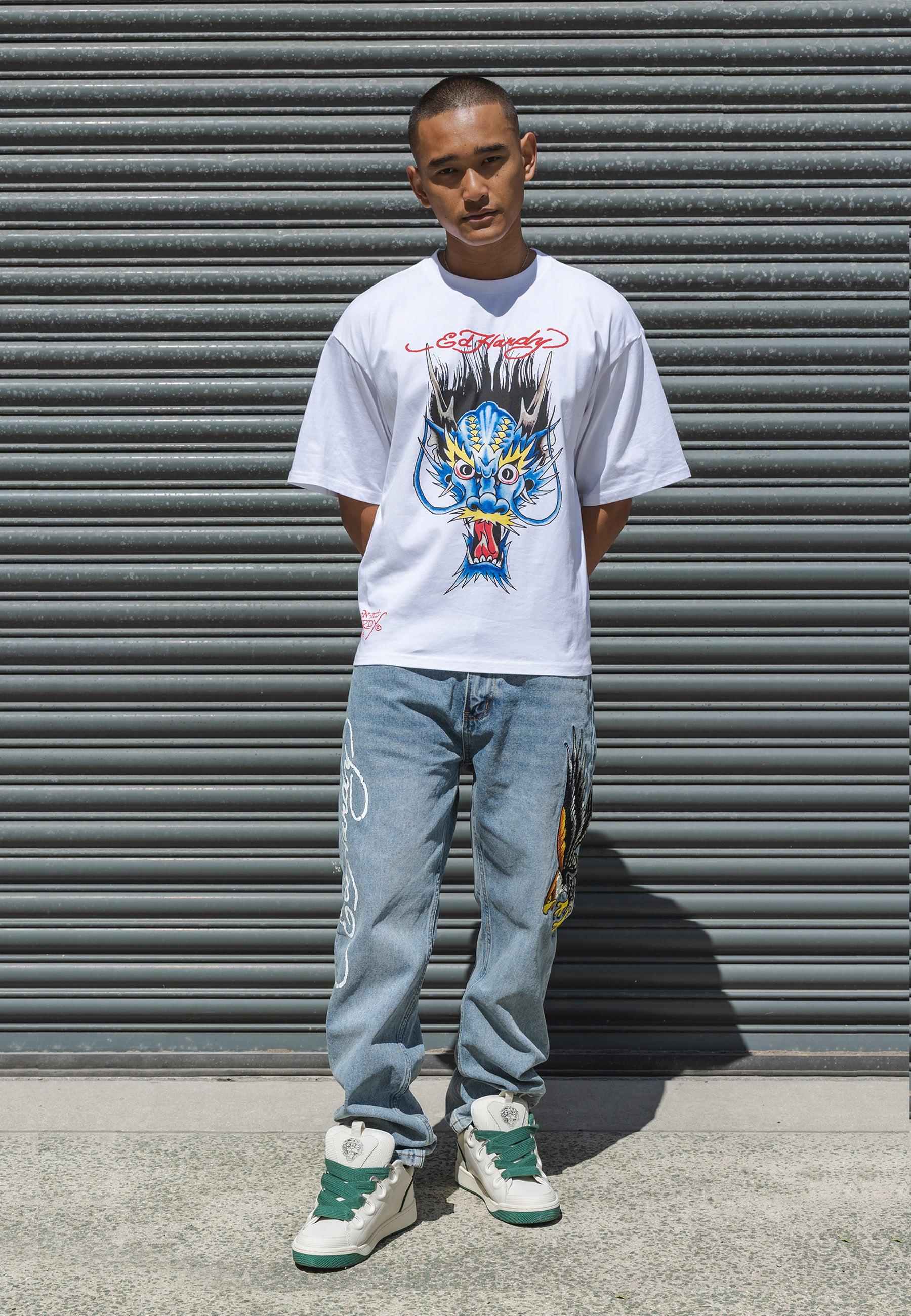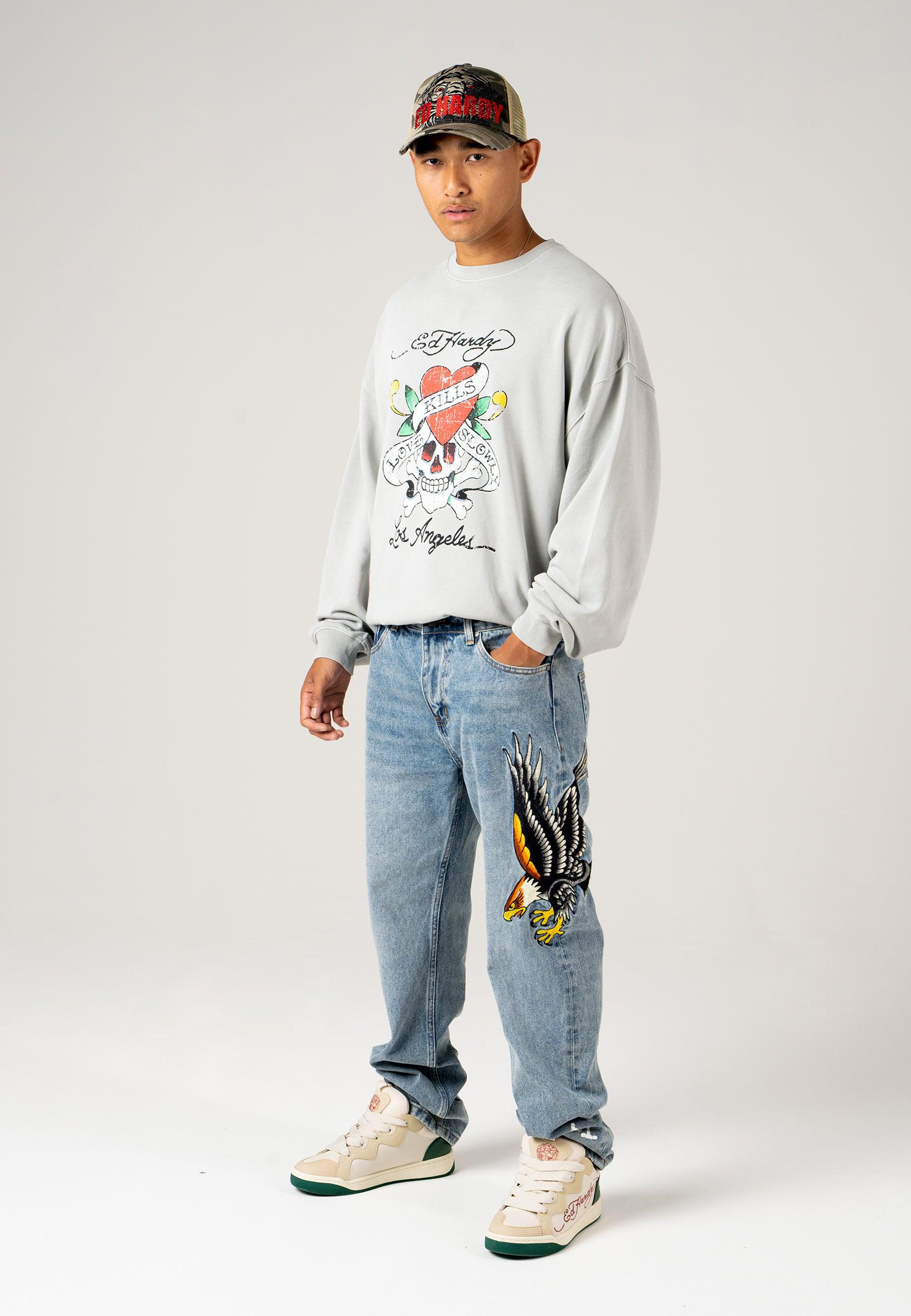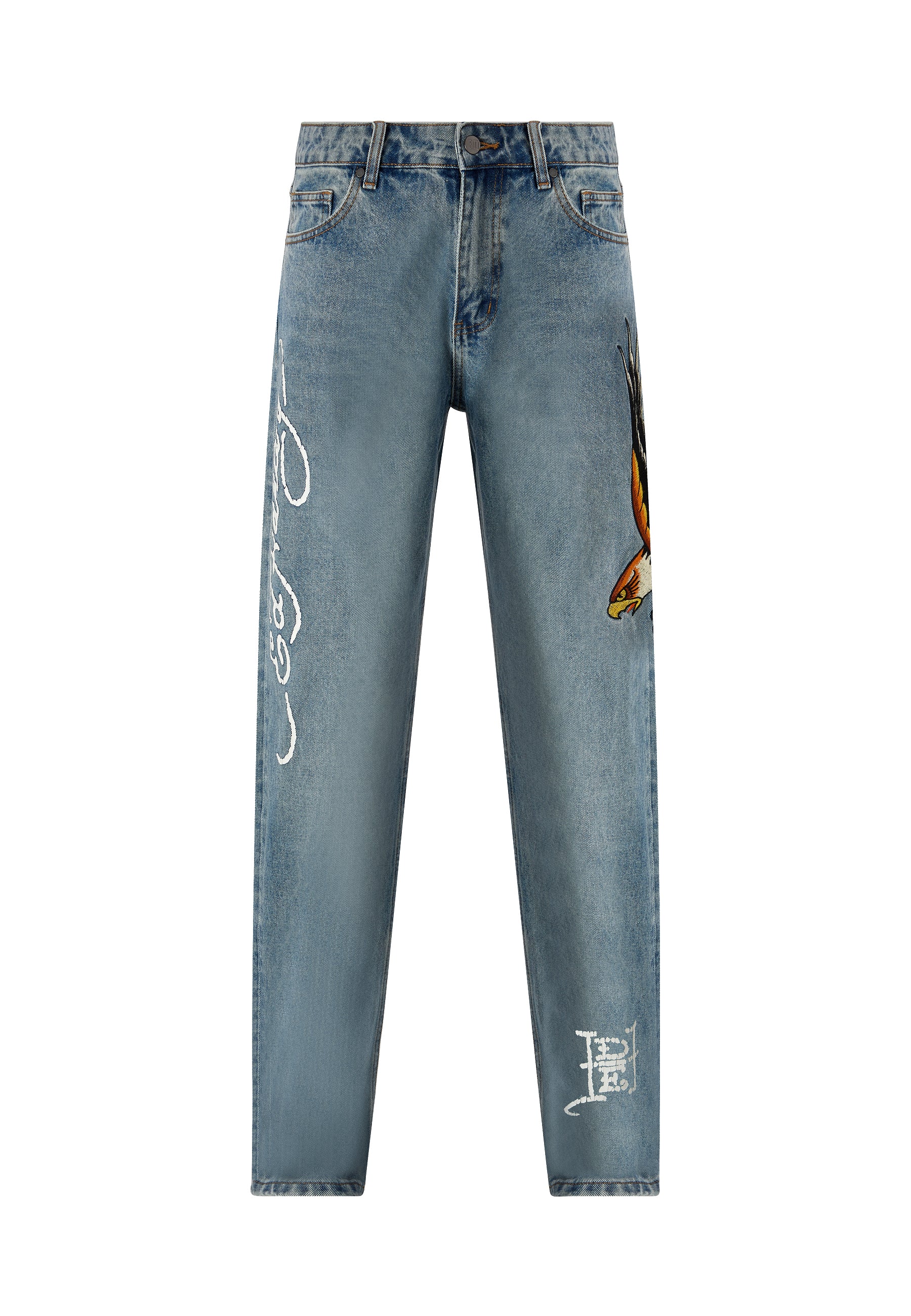 With Ed Hardy’s iconic logo emblazoned on the right leg and a detail-rich, embroidered golden eagle graphic, Ed Hardy’s unique take on denim is truly something special. With a contemporary twist on a classic eagle tattoo, these bleach wash jeans provide utility, as well as style, as all high-quality denim should.100%COTTON DENIM.