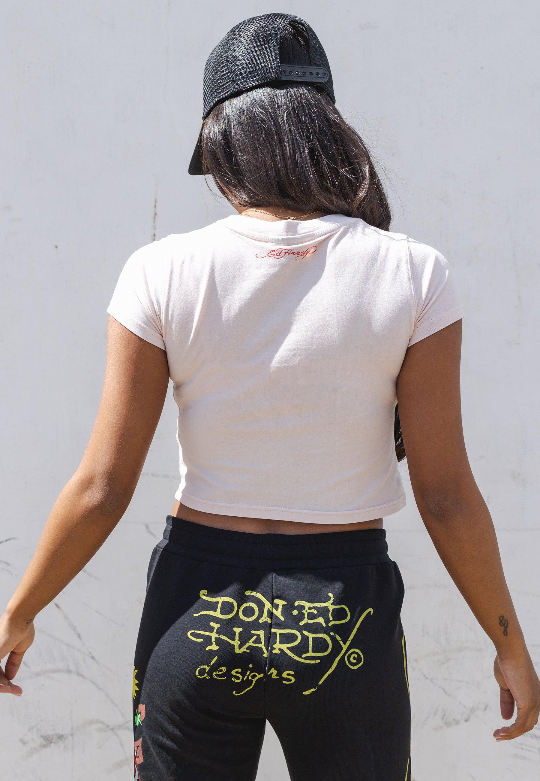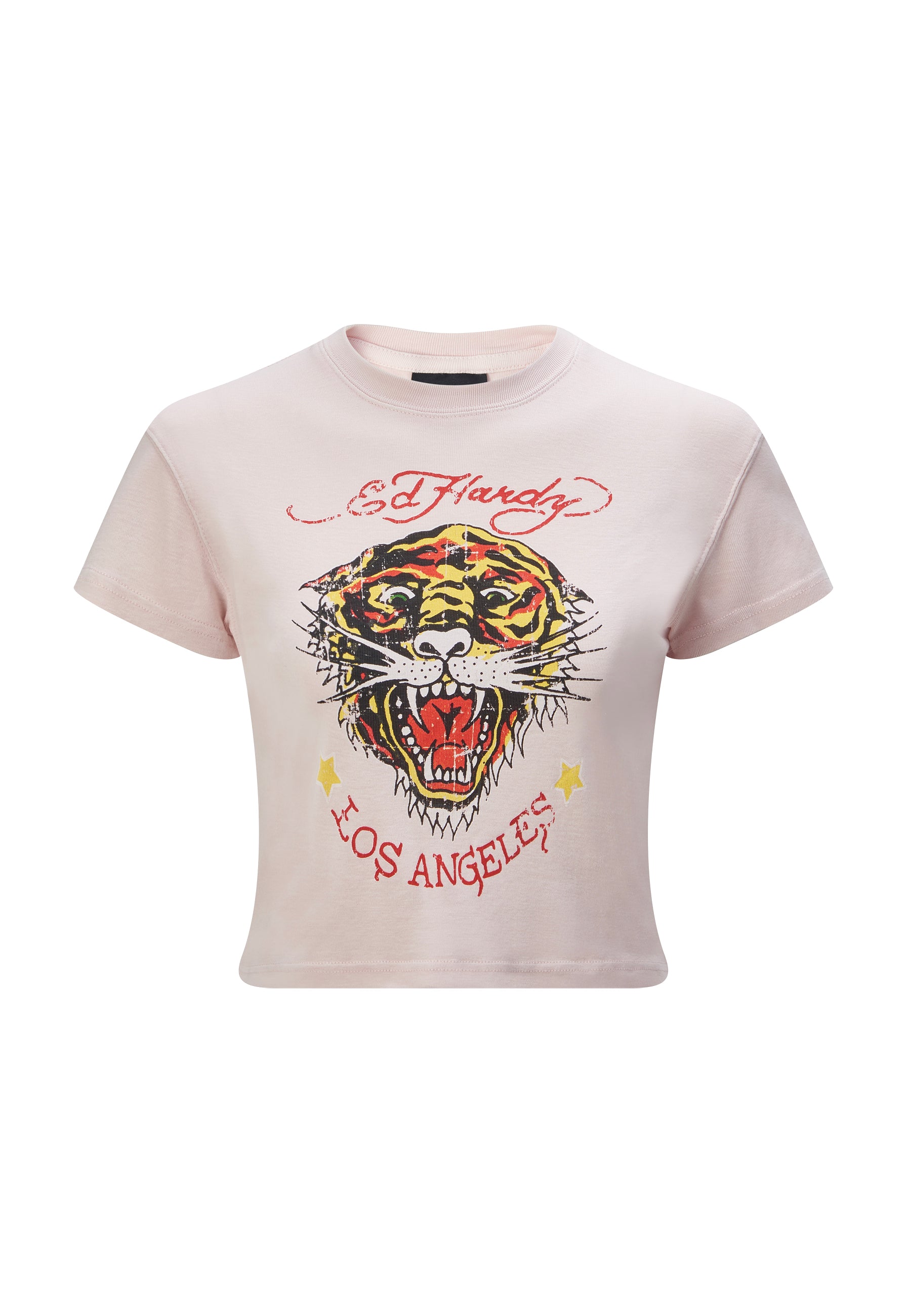 Womens La-Roar-Tiger Cropped Baby T-Shirt - Pink