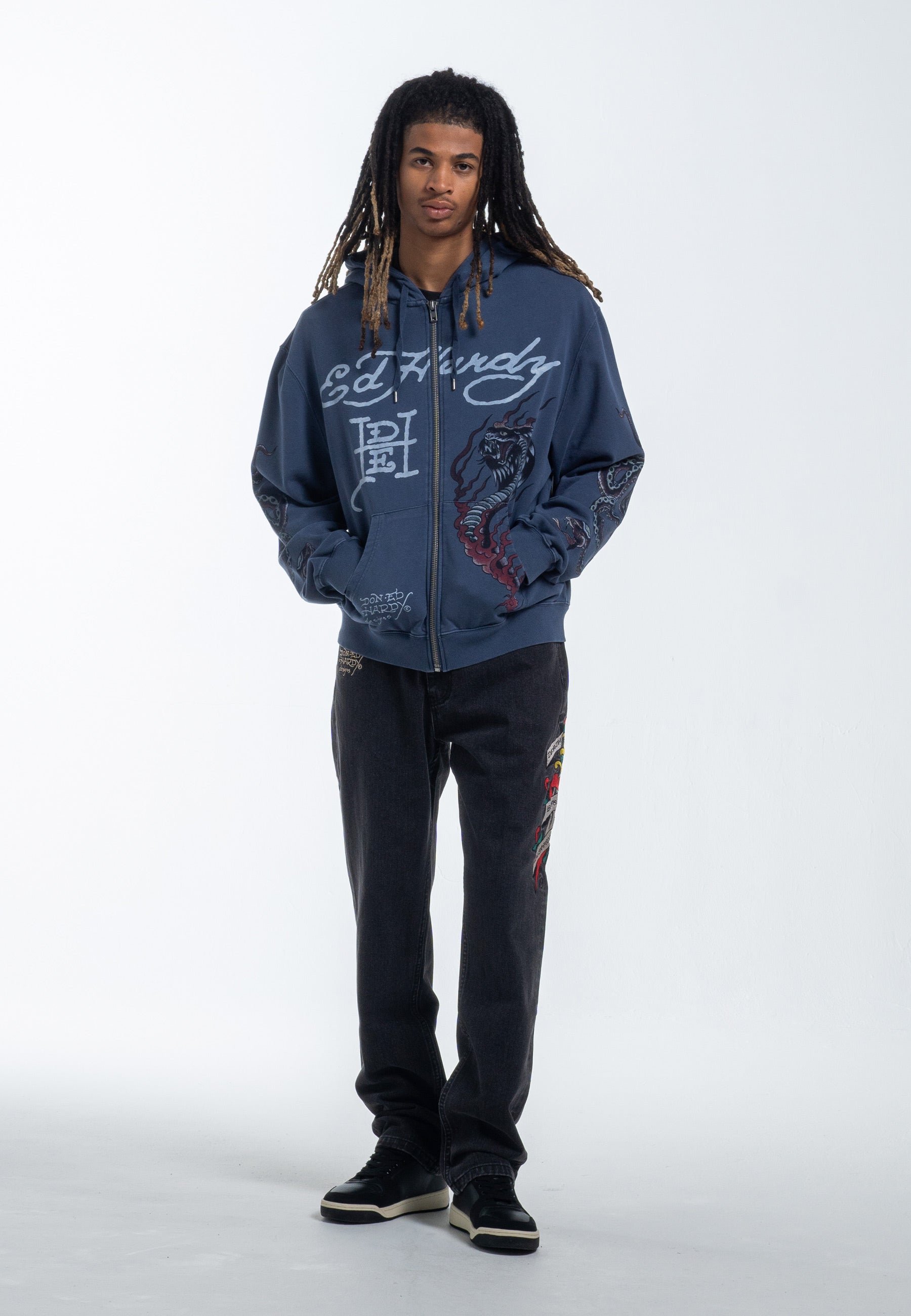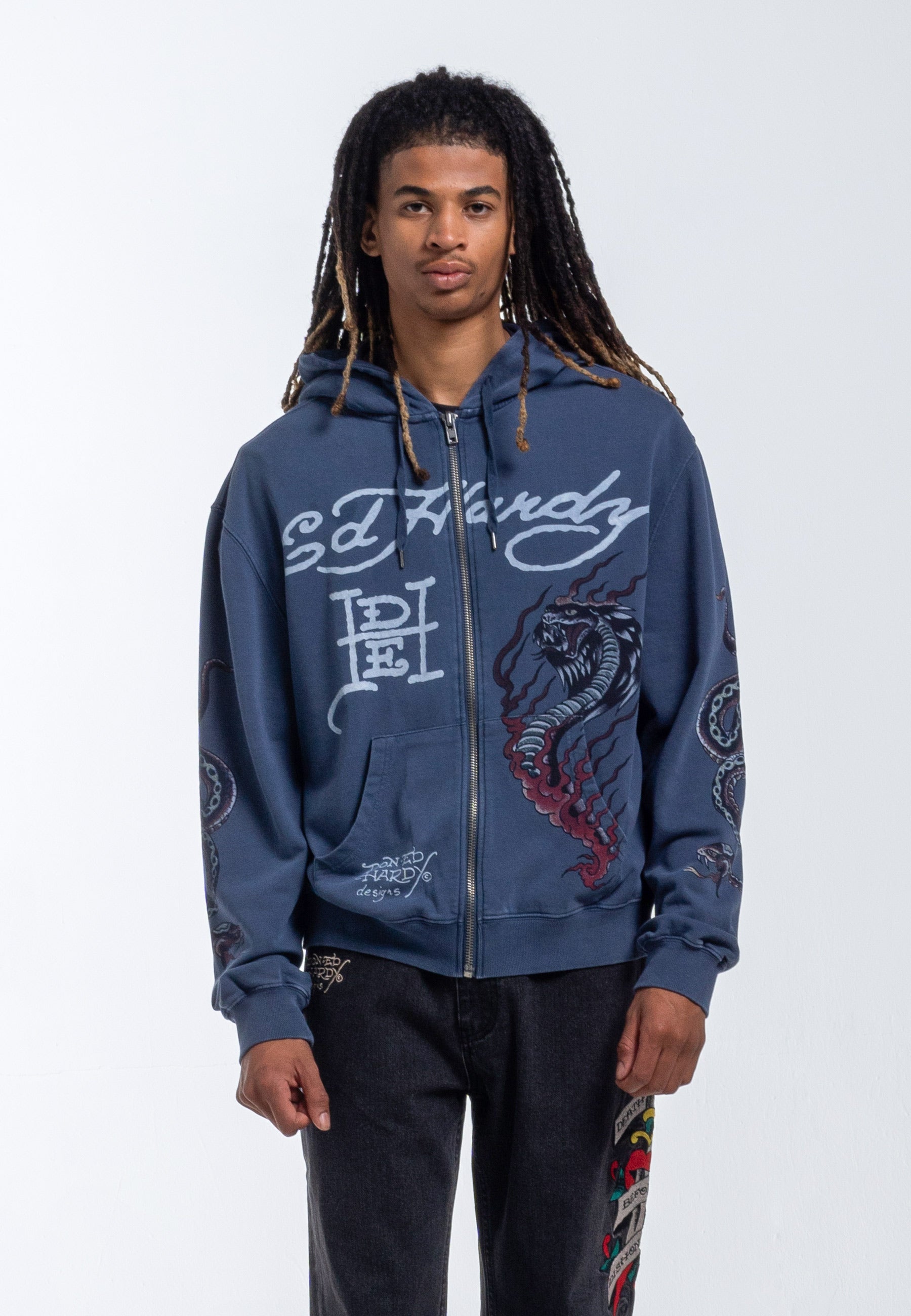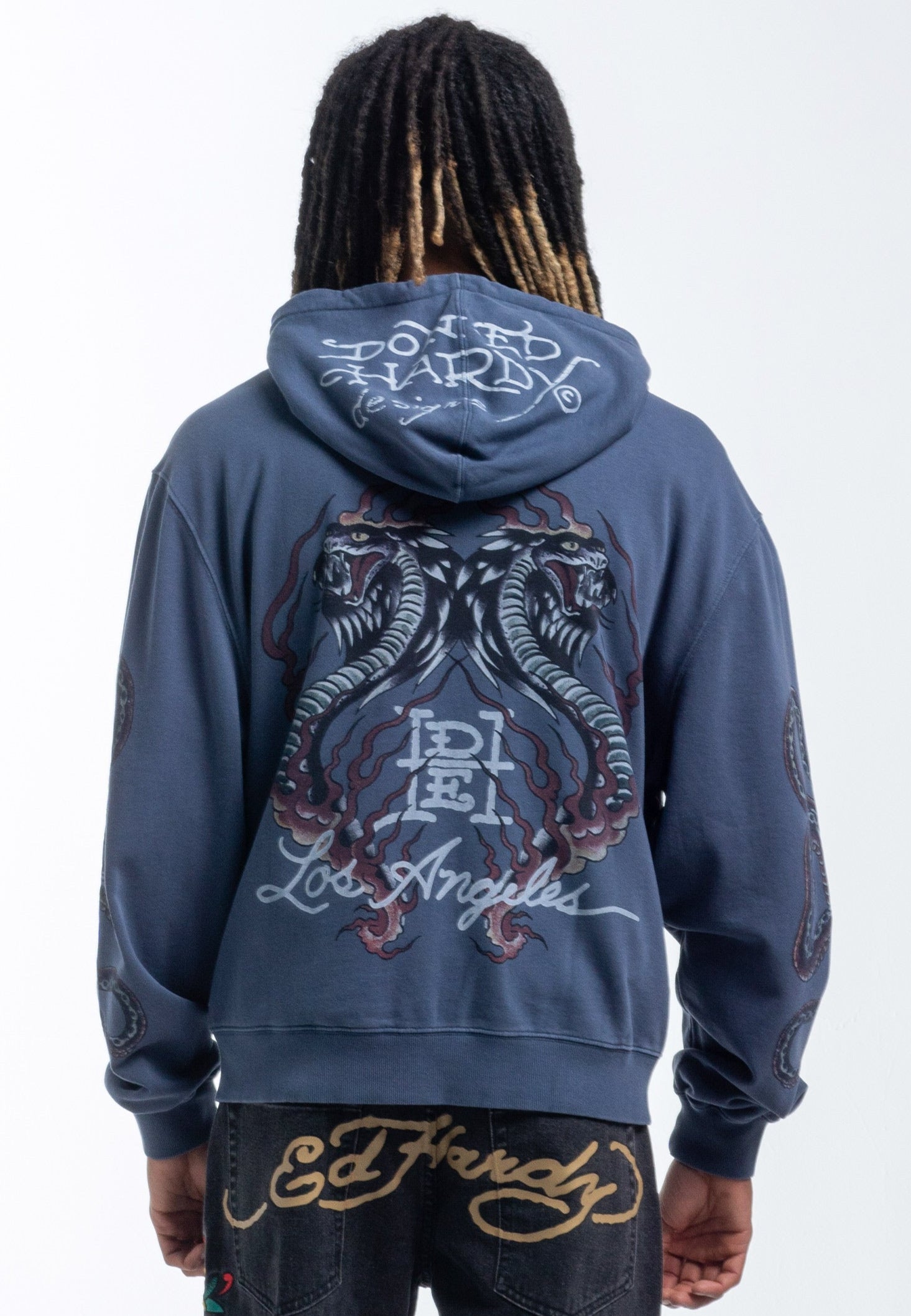 Mens Double Venom Graphic Zip Through Hoodie - Indigo