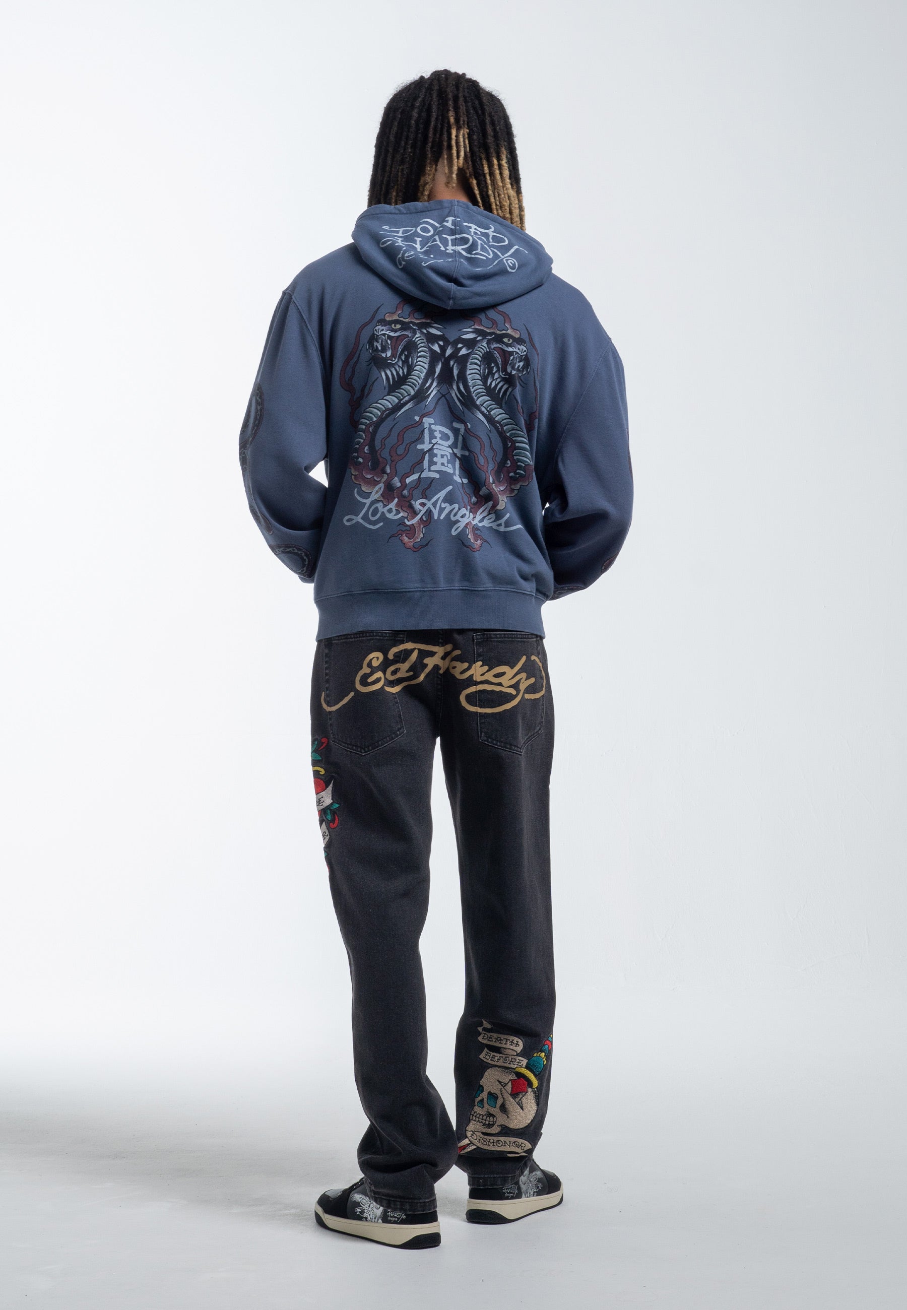 Channelling the unfiltered energy of LA's subversive cultures: fashion, art, skateboarding, tattoo studios and more, the Double Venom Hoodie is a statement of true art.