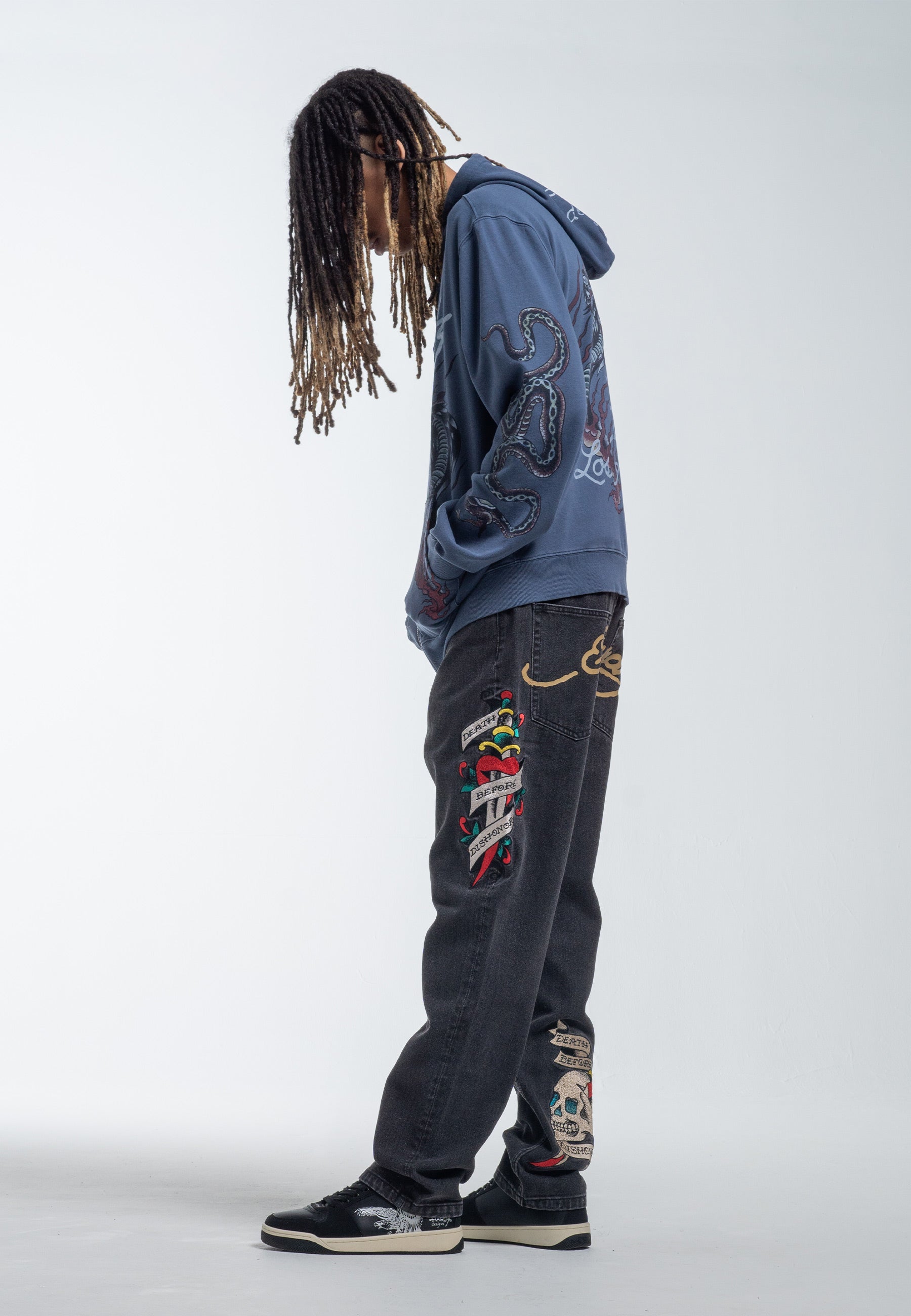 Richly embellished in high-definition embroidery graphics, every inch of this piece is an ode to Ed's gritty approach to art and design, timeless as ever for the new season.