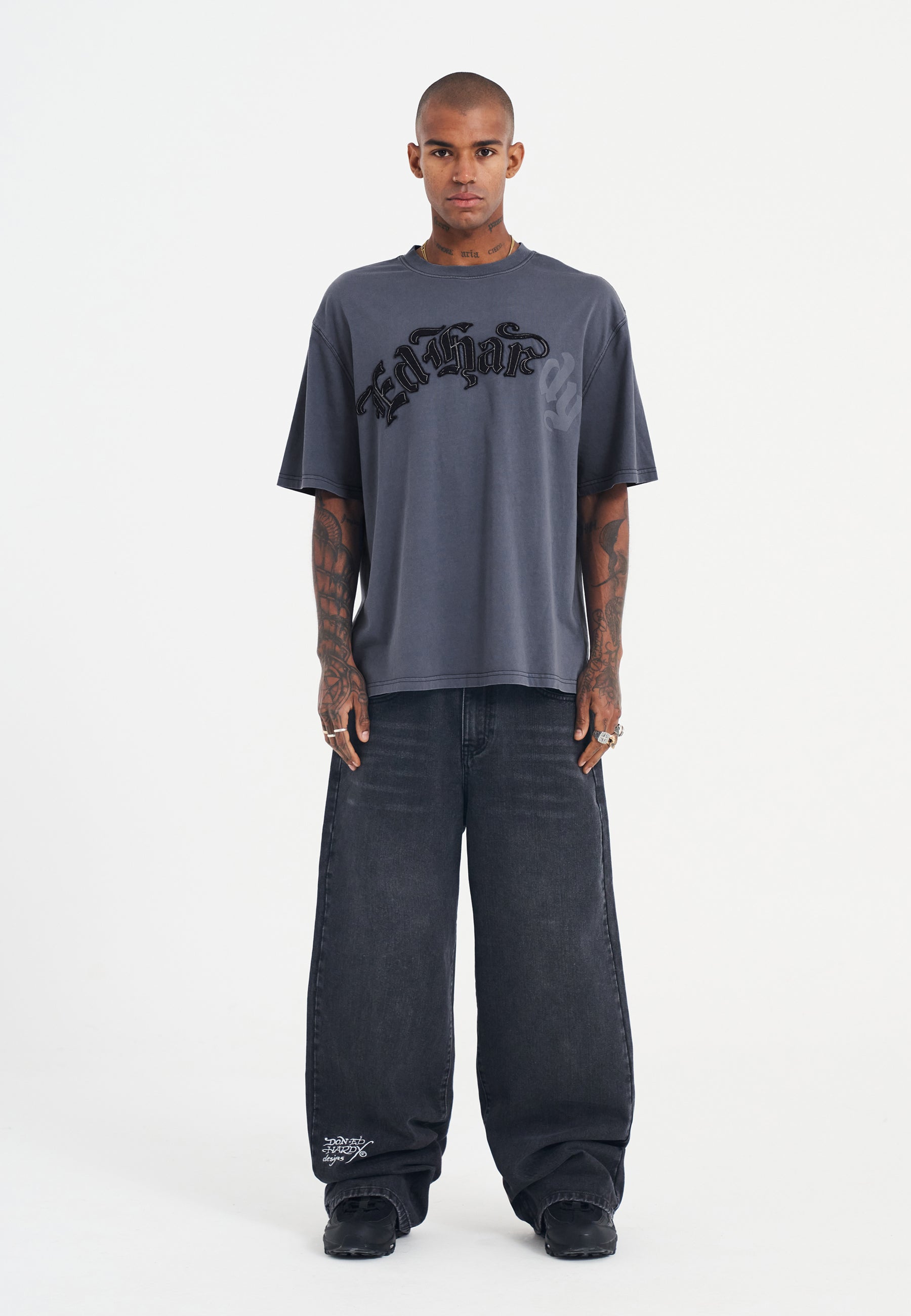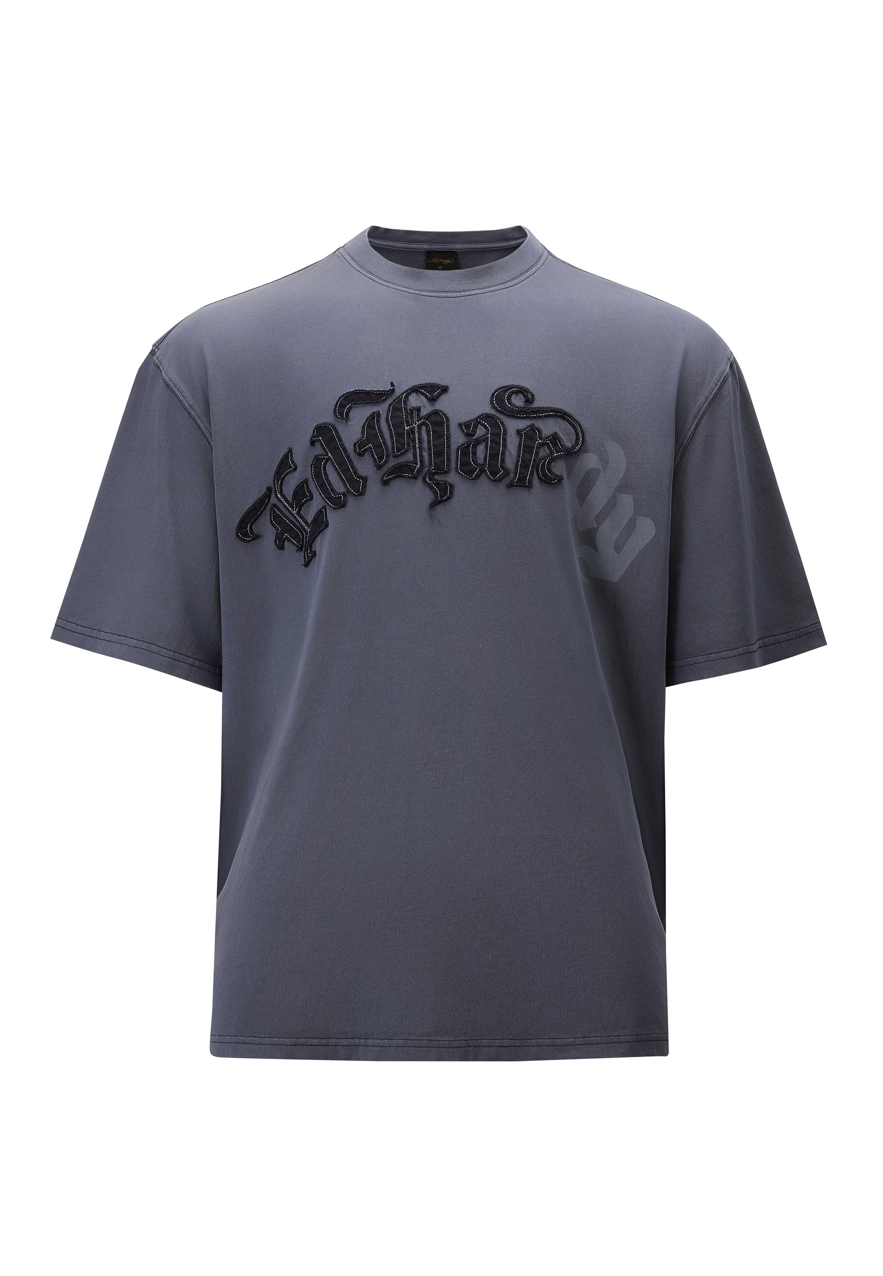 The Distressed Applique Relaxed T-Shirt, with its unique blend of textures and details, is a bold testament to Ed's timeless design.
