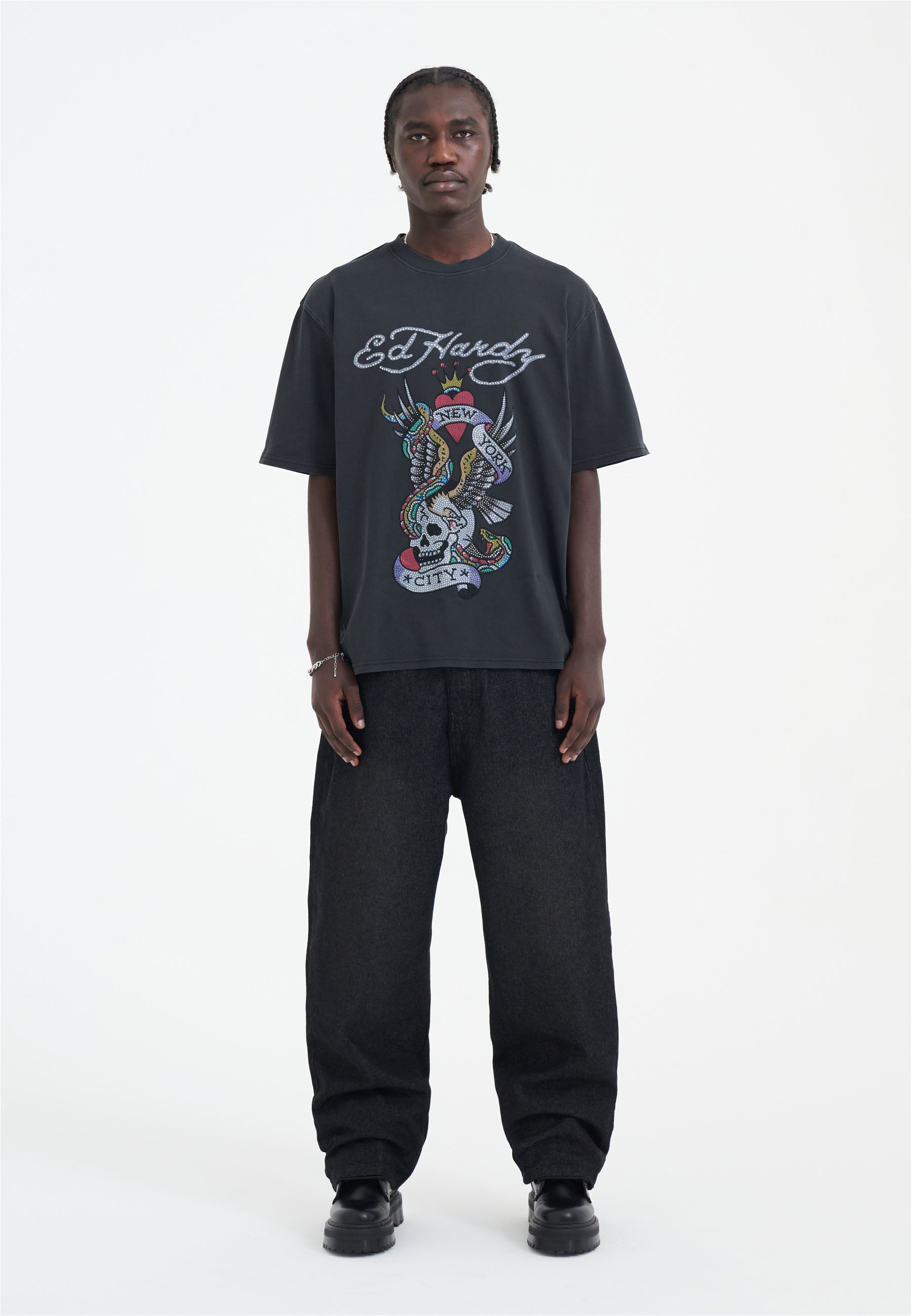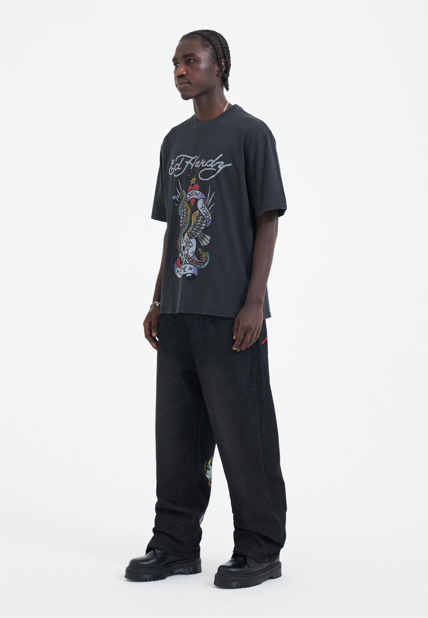 Embrace the unexpected with Ed's SS24 diamante debut, a bold redefinition of his heritage designs with a striking full-colour diamante graphic.