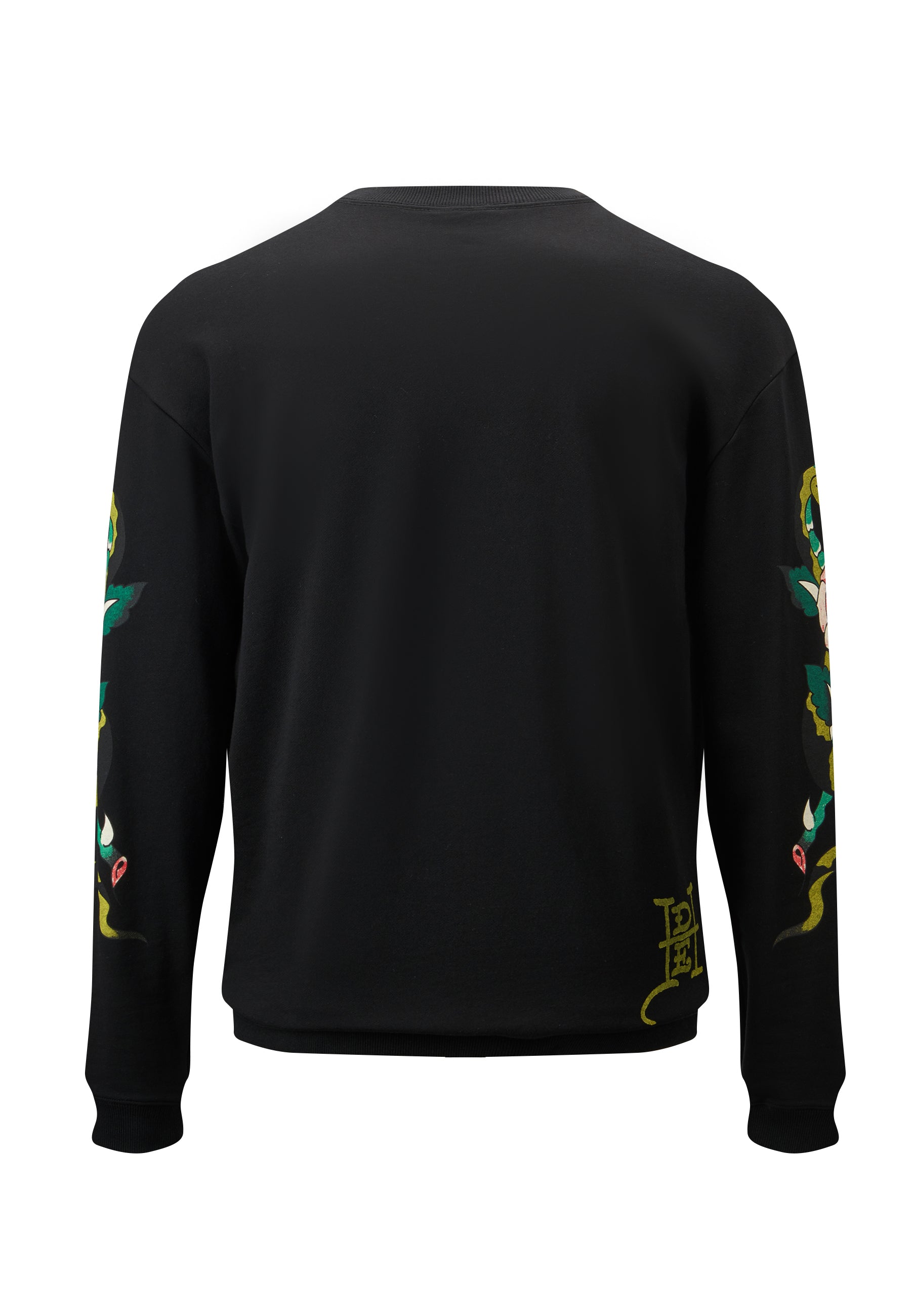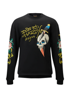 The Skull & Dagz Crew Neck Jumper is a perfect fusion of Ed's classic designs and contemporary individuality. Featuring the iconic 'DON ED HARDY designs' logo, alongside a full-colour graphic design of Ed's Skull & Dagger and the Rose & Snake tattoo designs up each sleeve.