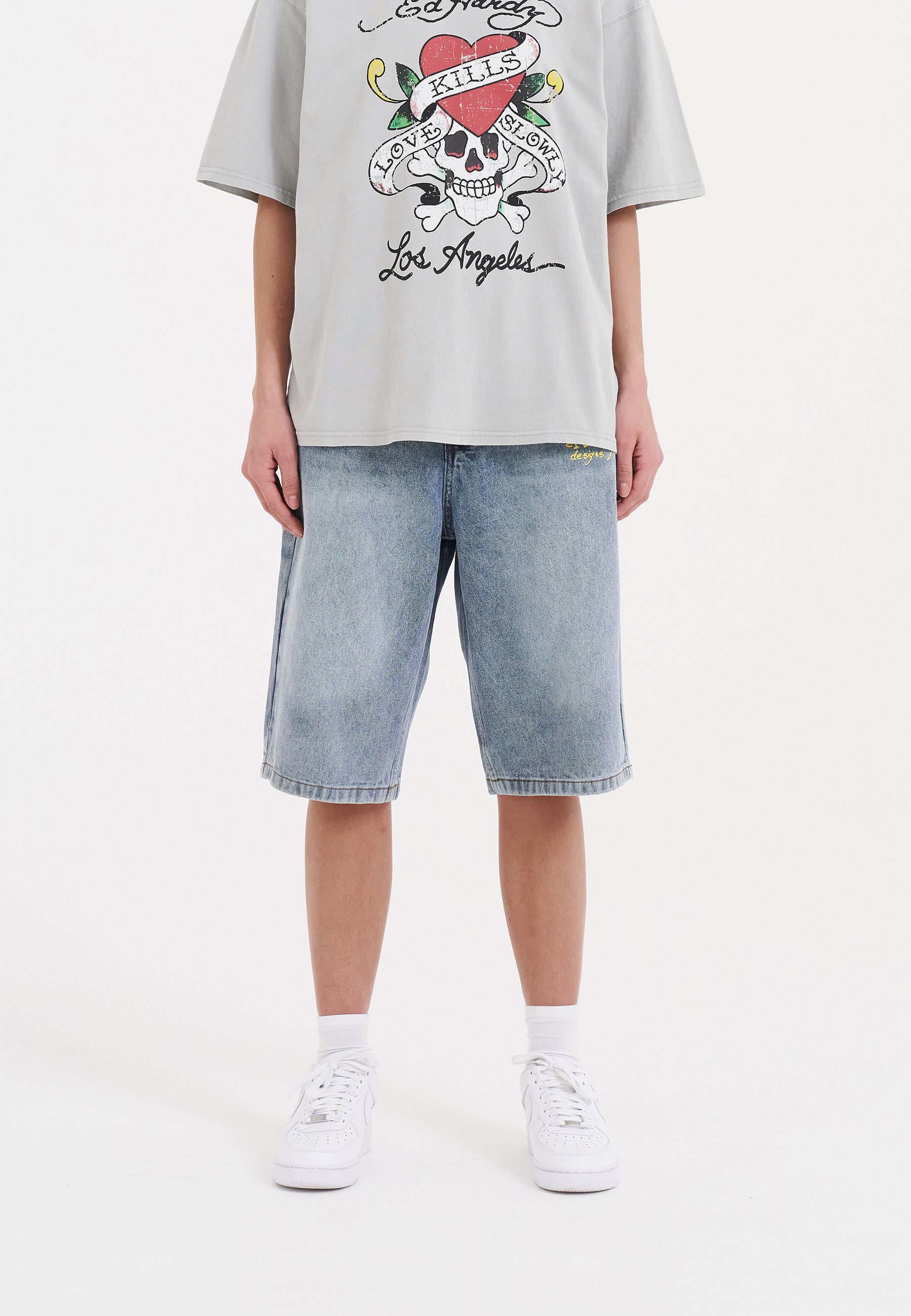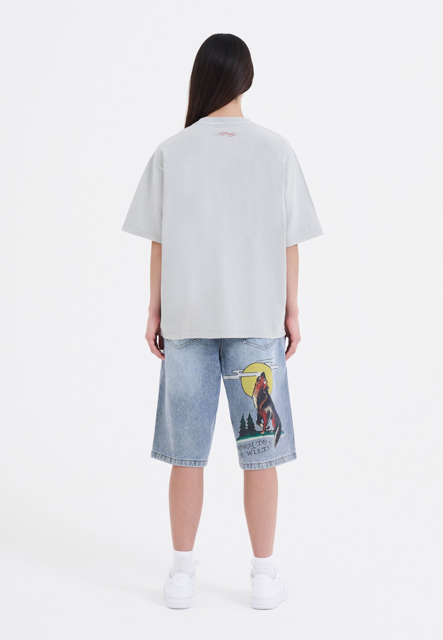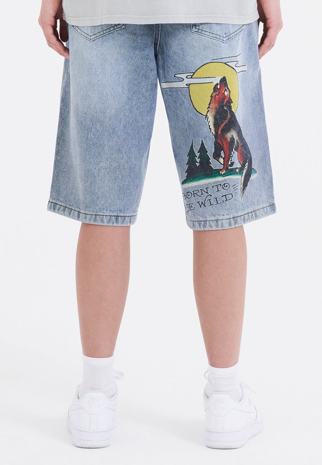 Womens Born Wild Relaxed Denim Jorts Shorts - Bleach