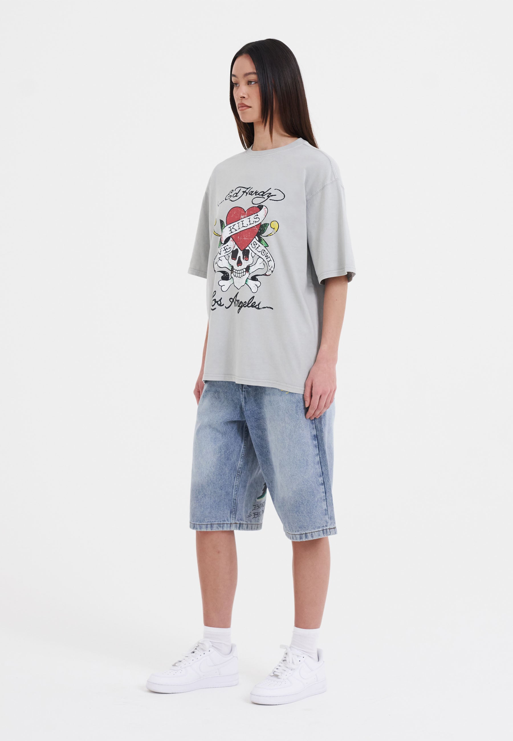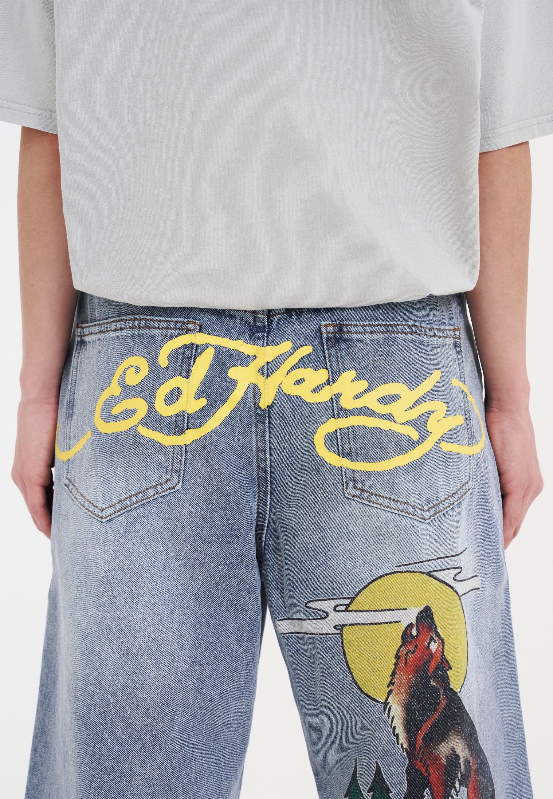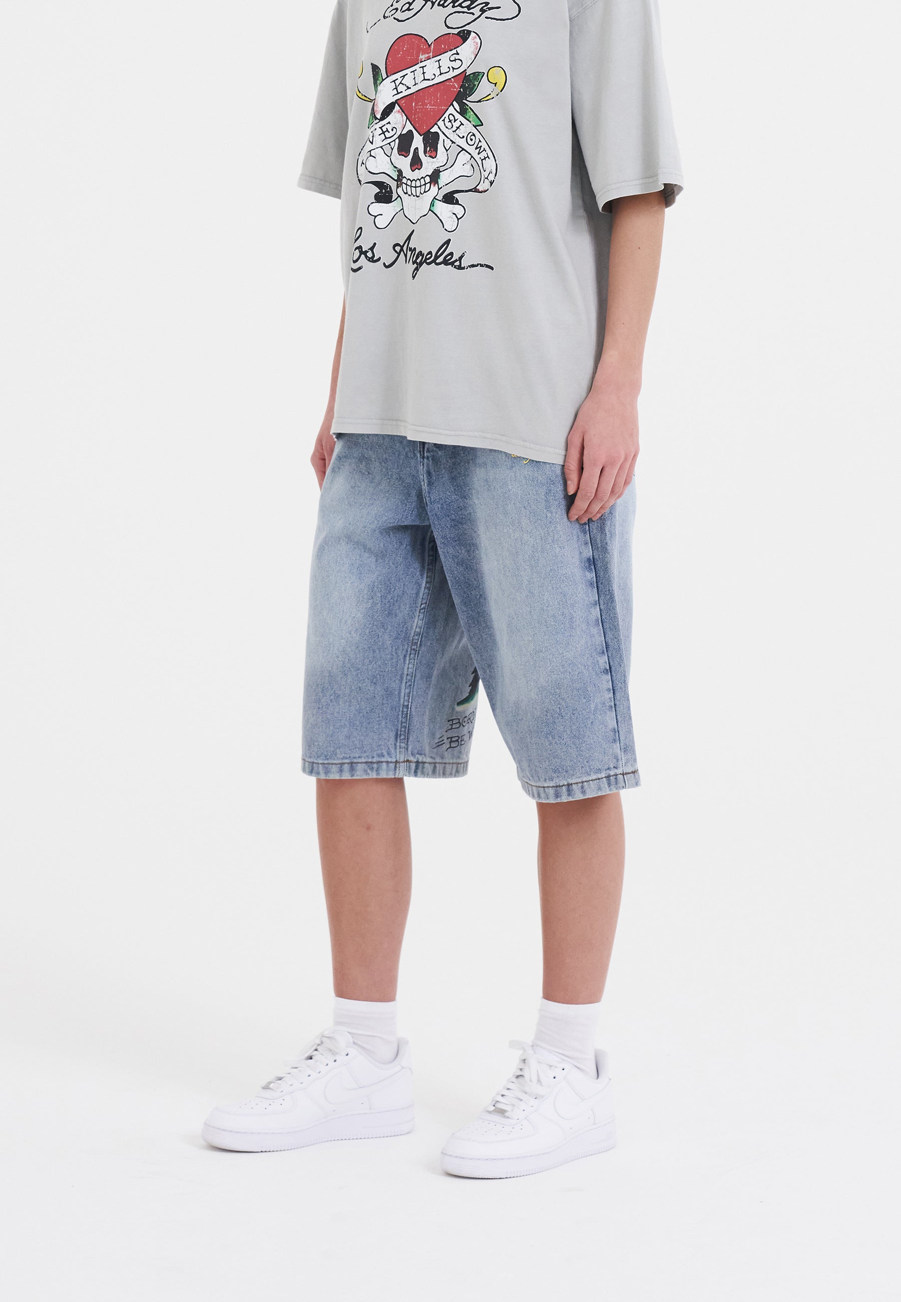 Womens Born Wild Relaxed Denim Jorts Shorts - Bleach