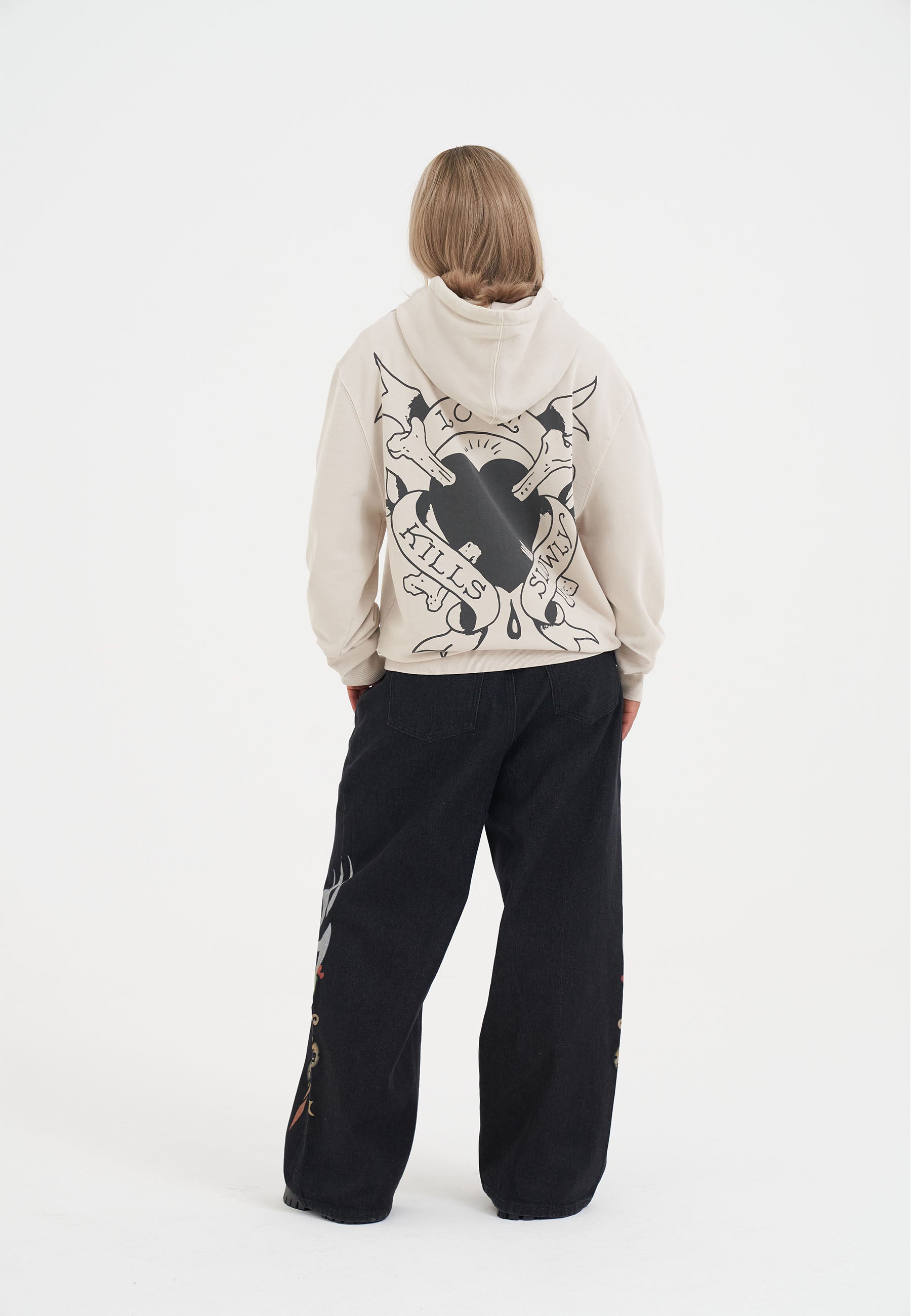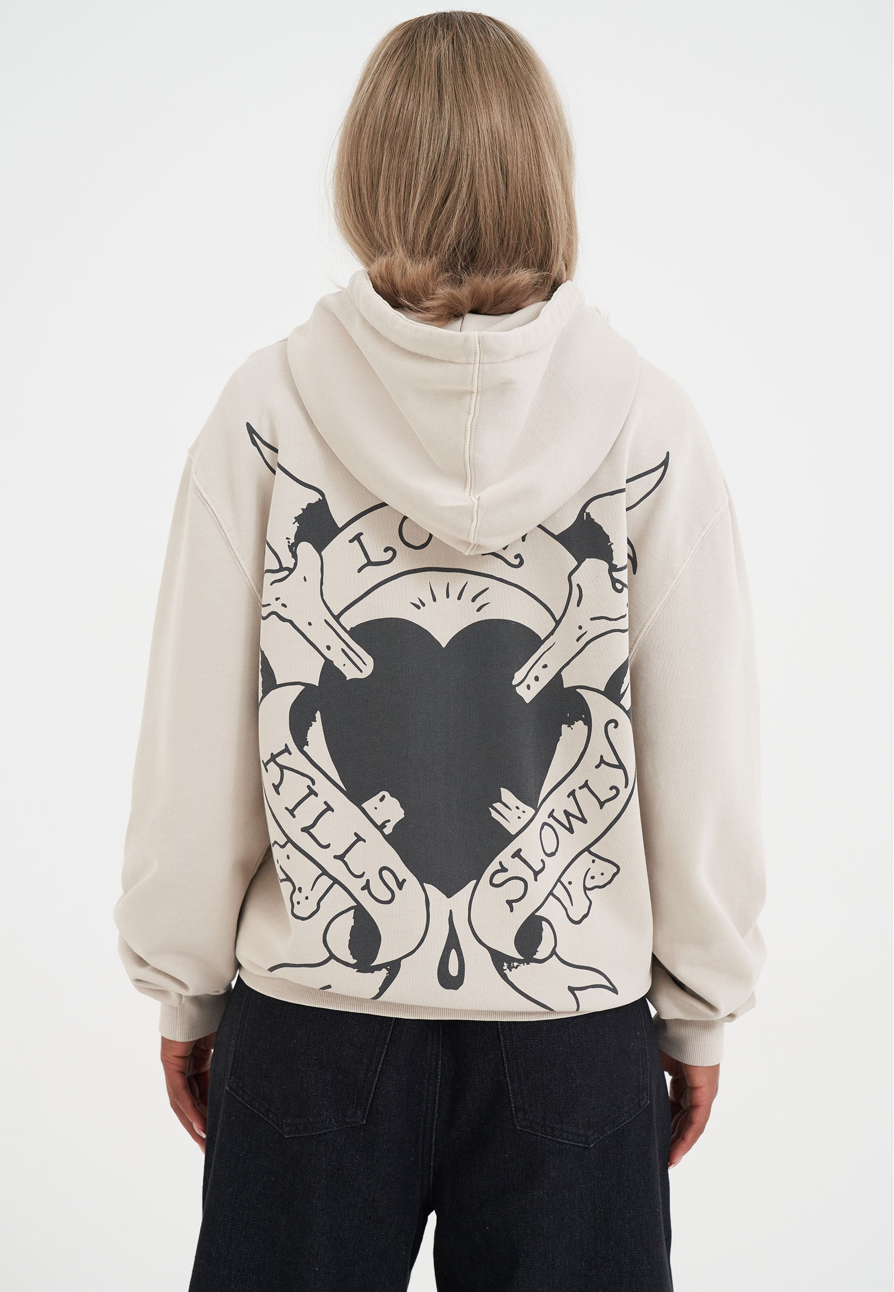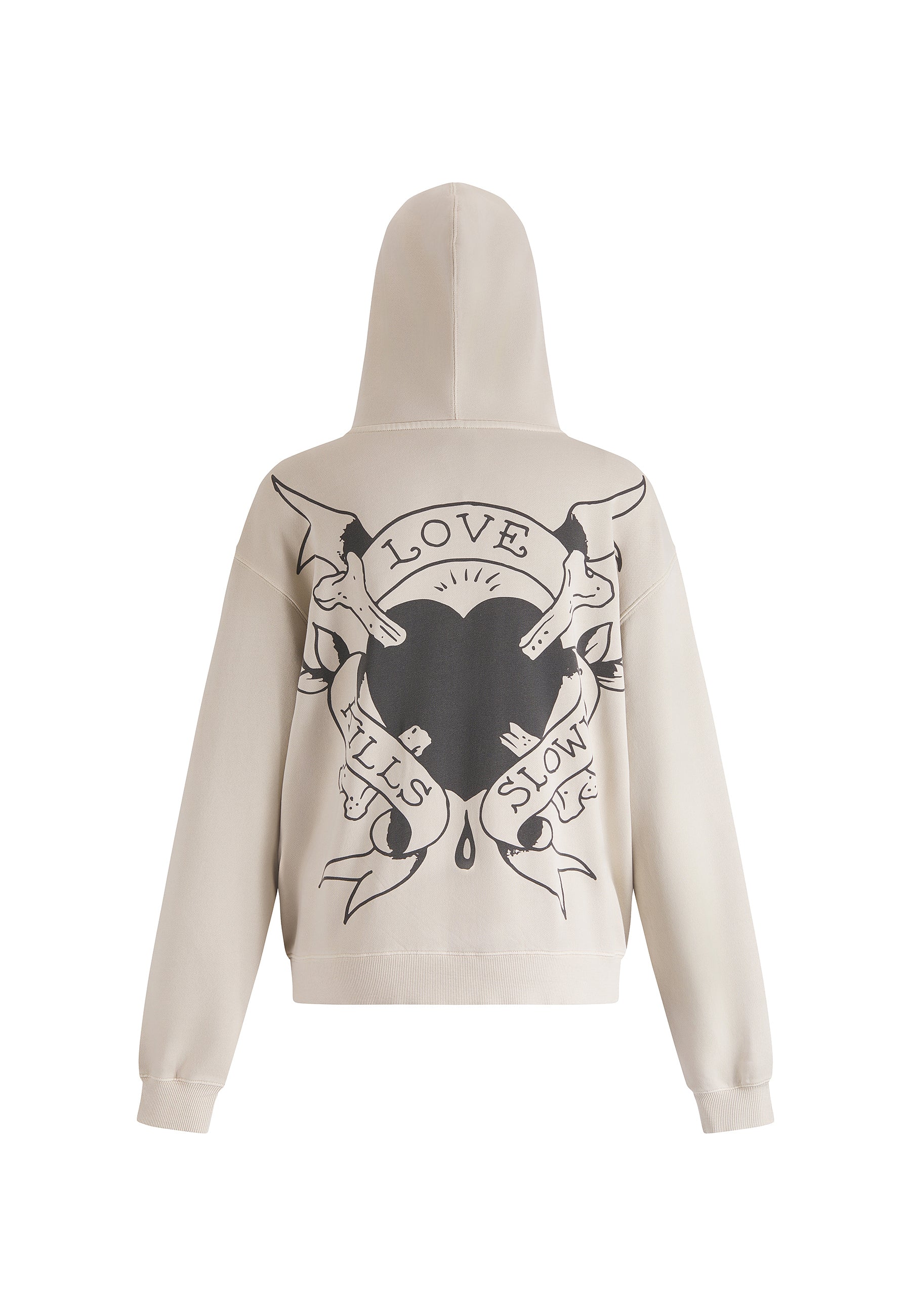 WOMENS BROKEN HEARTS AND FAIRYTALES ZIP THRU HOODIE in Ecru