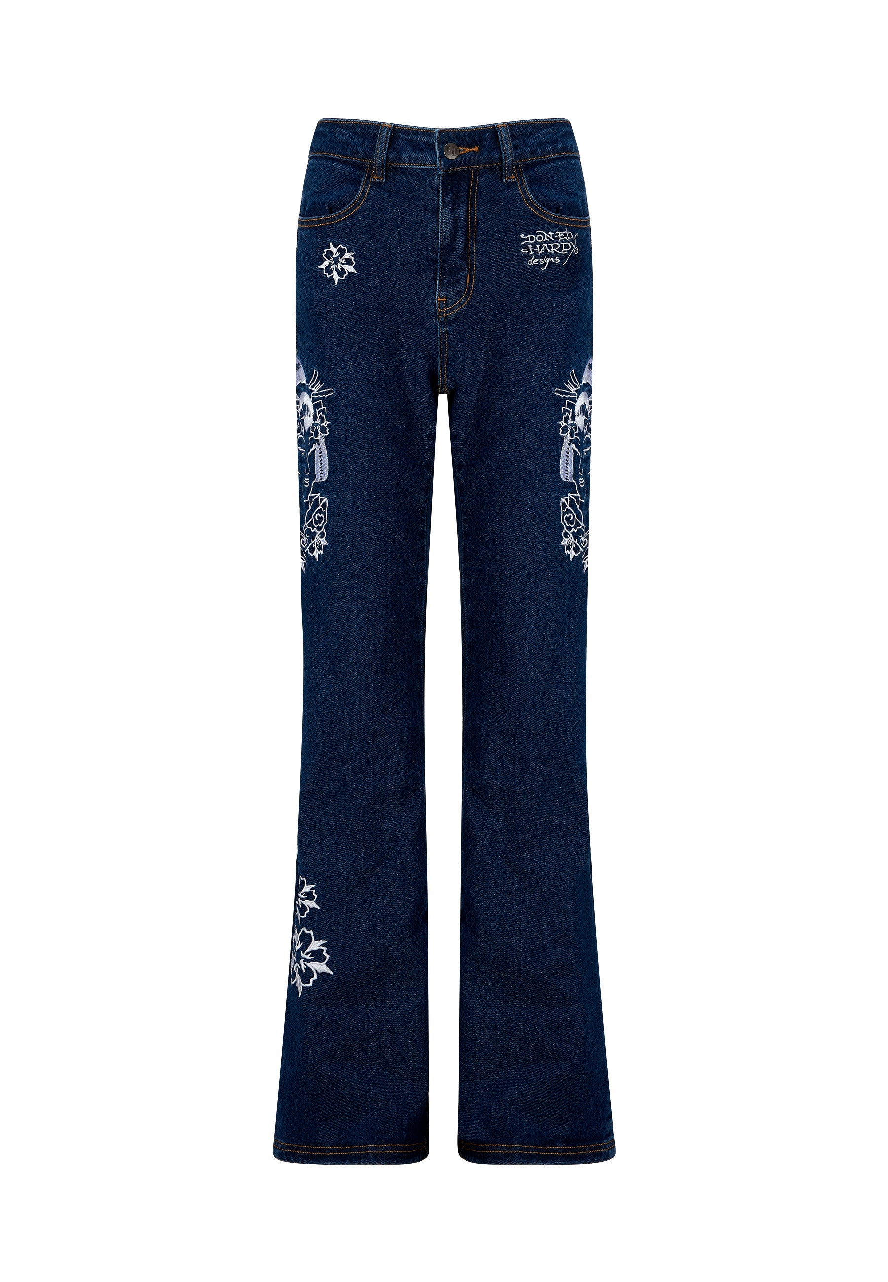 Womens Geisha Mirror Flared Denim Trousers Jeans - Indigo